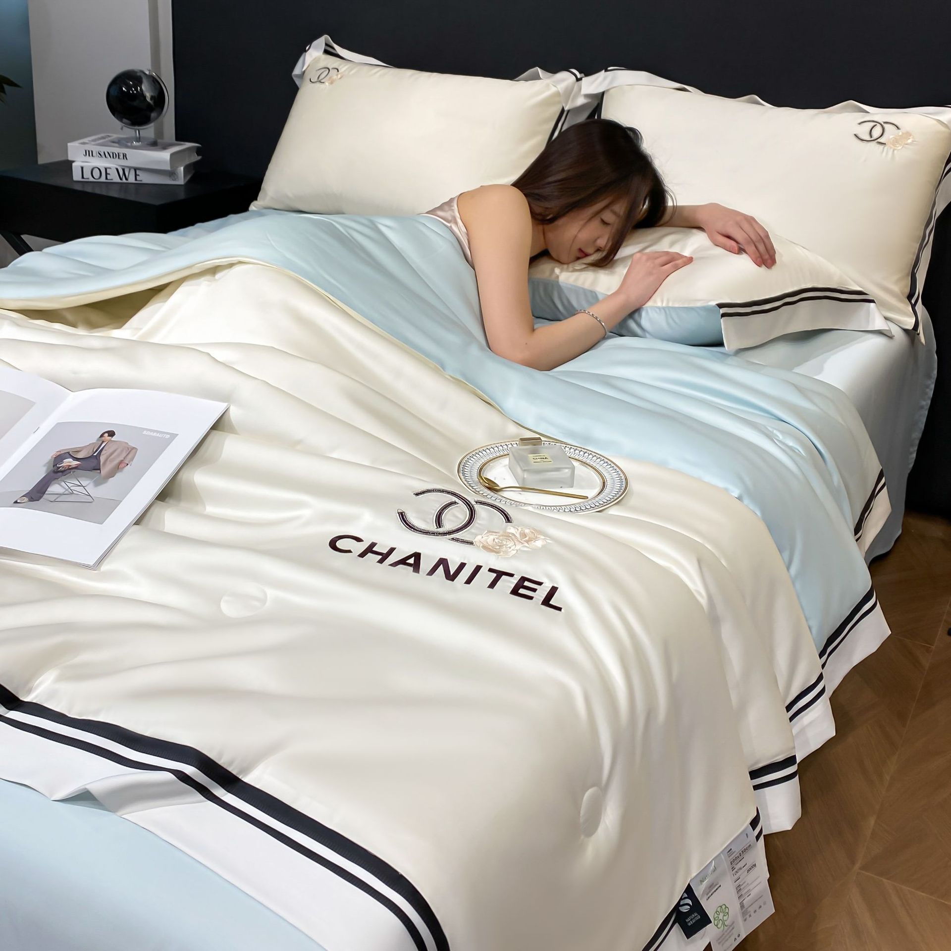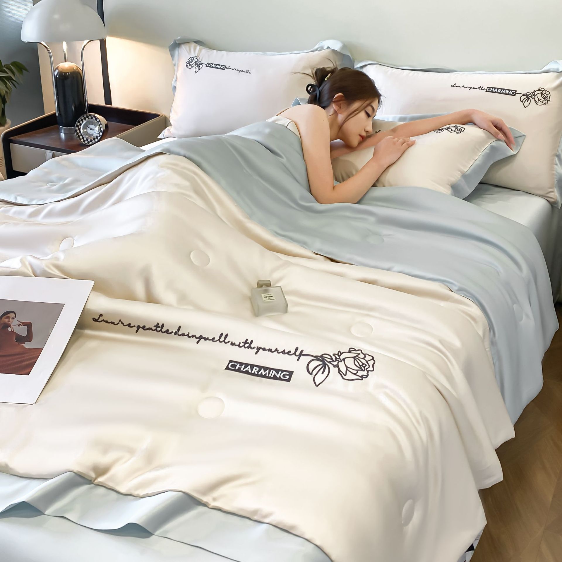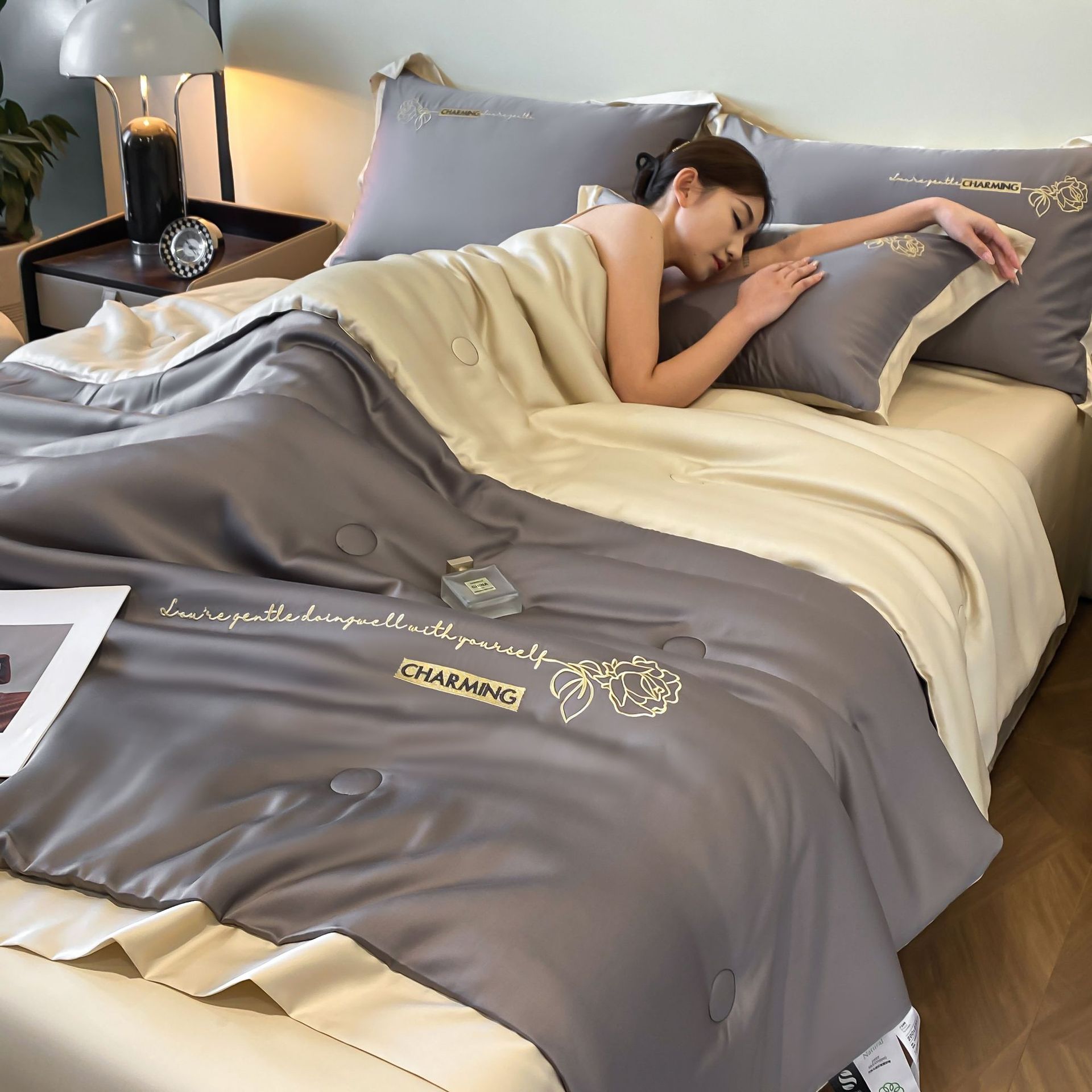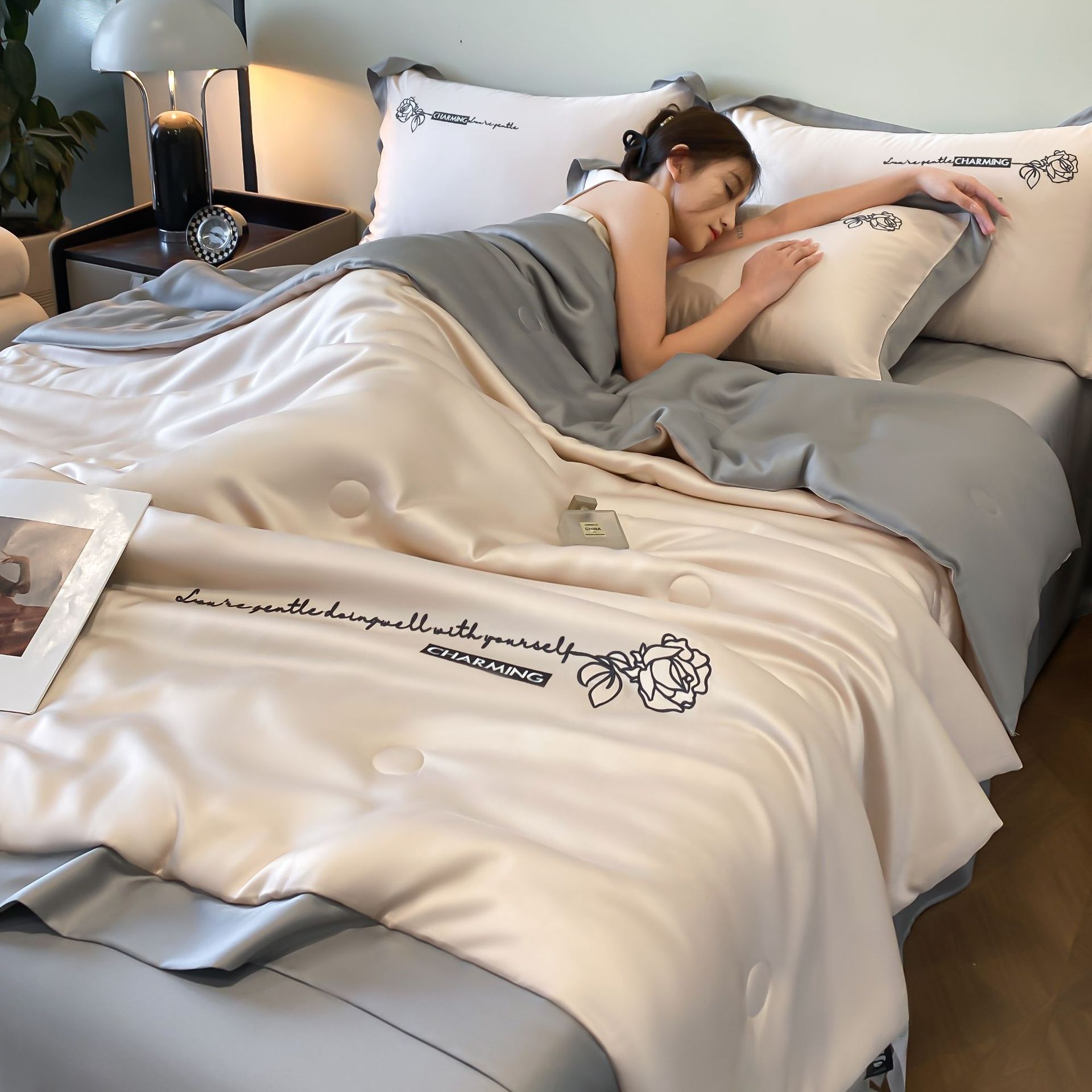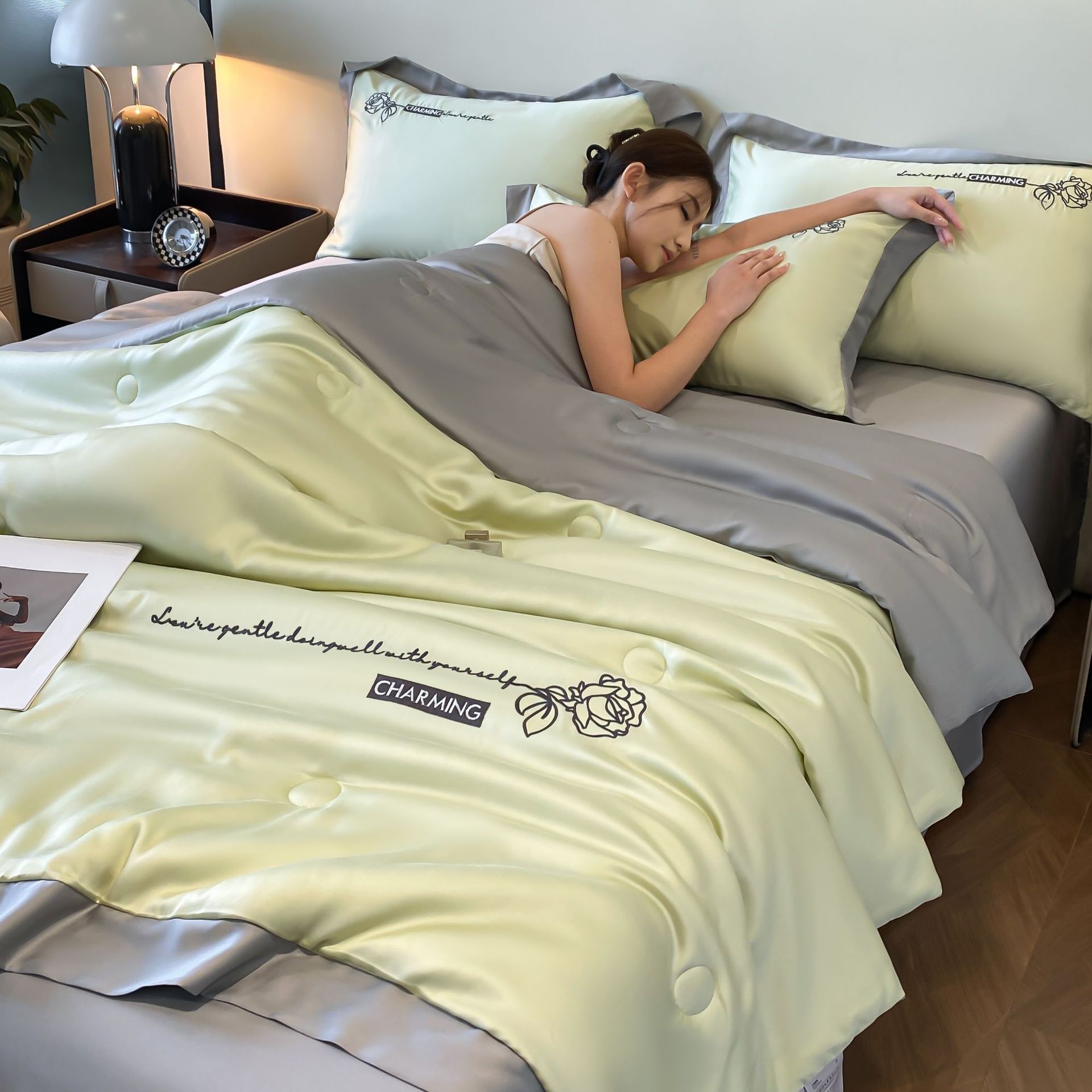 하이 엔드 라이트 럭셔리 세척 실크 자수 여름 퀼트 4 피스 세트 쿨 아이스 실크 여름 이불 에어컨 이불 얇은 이불 도매스토어 가기