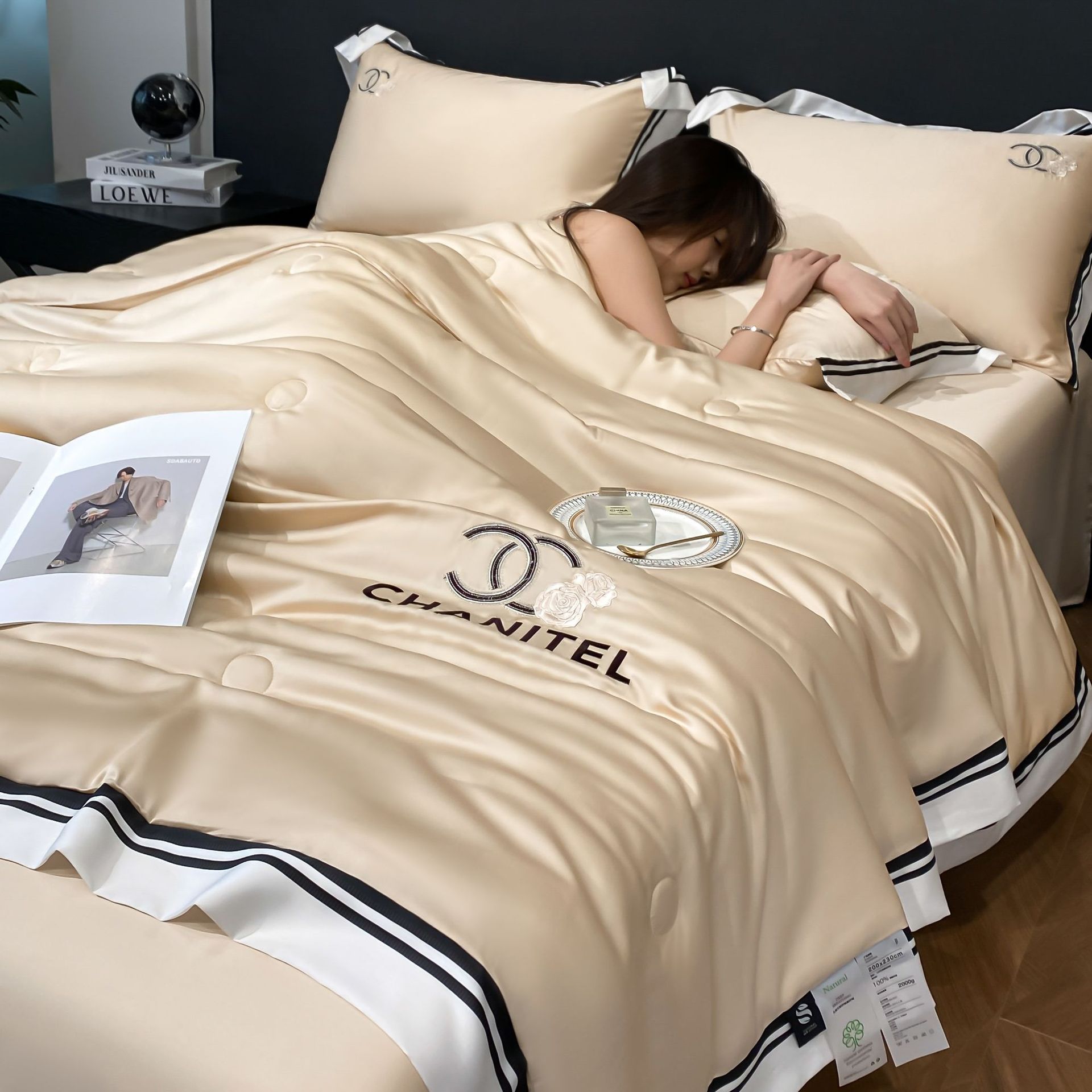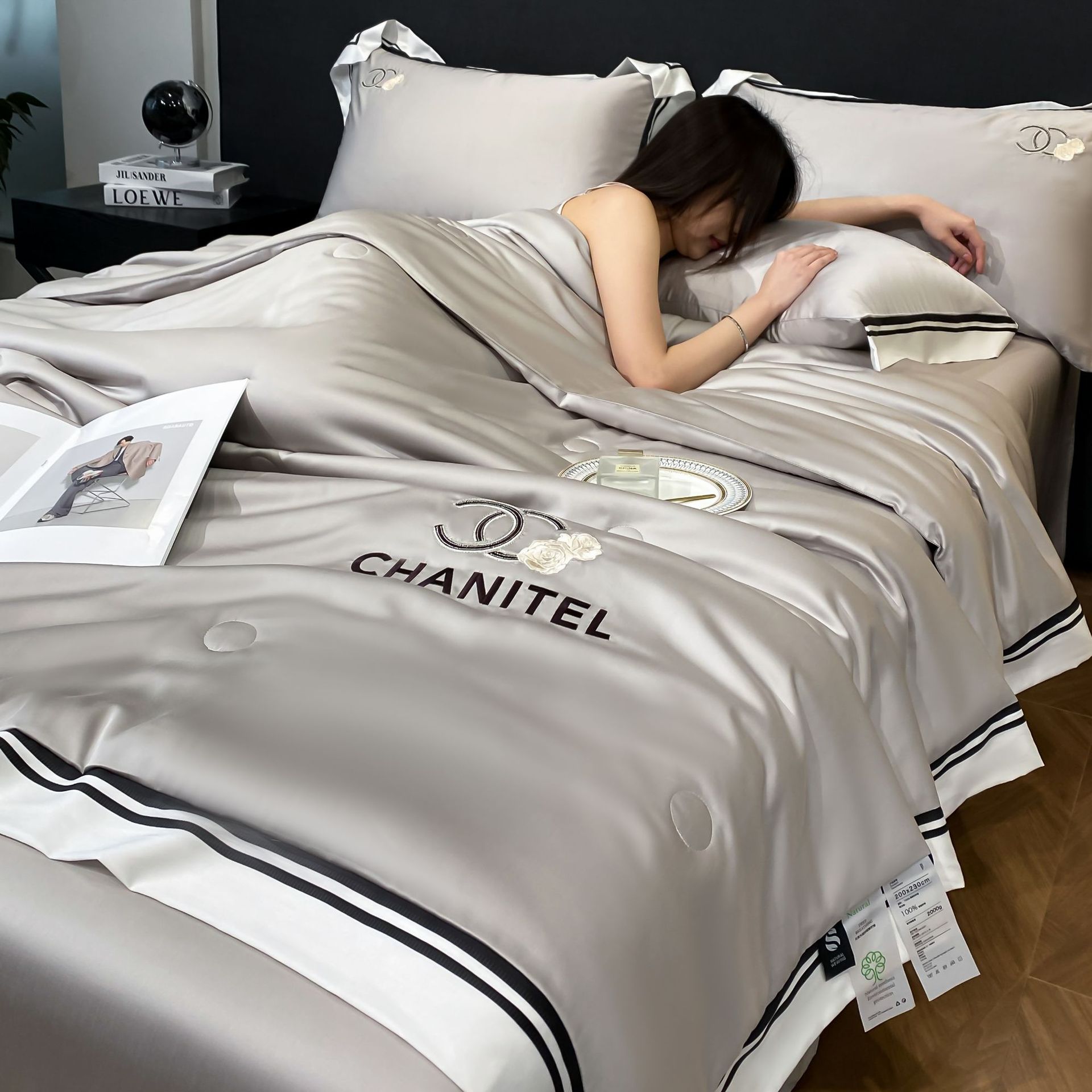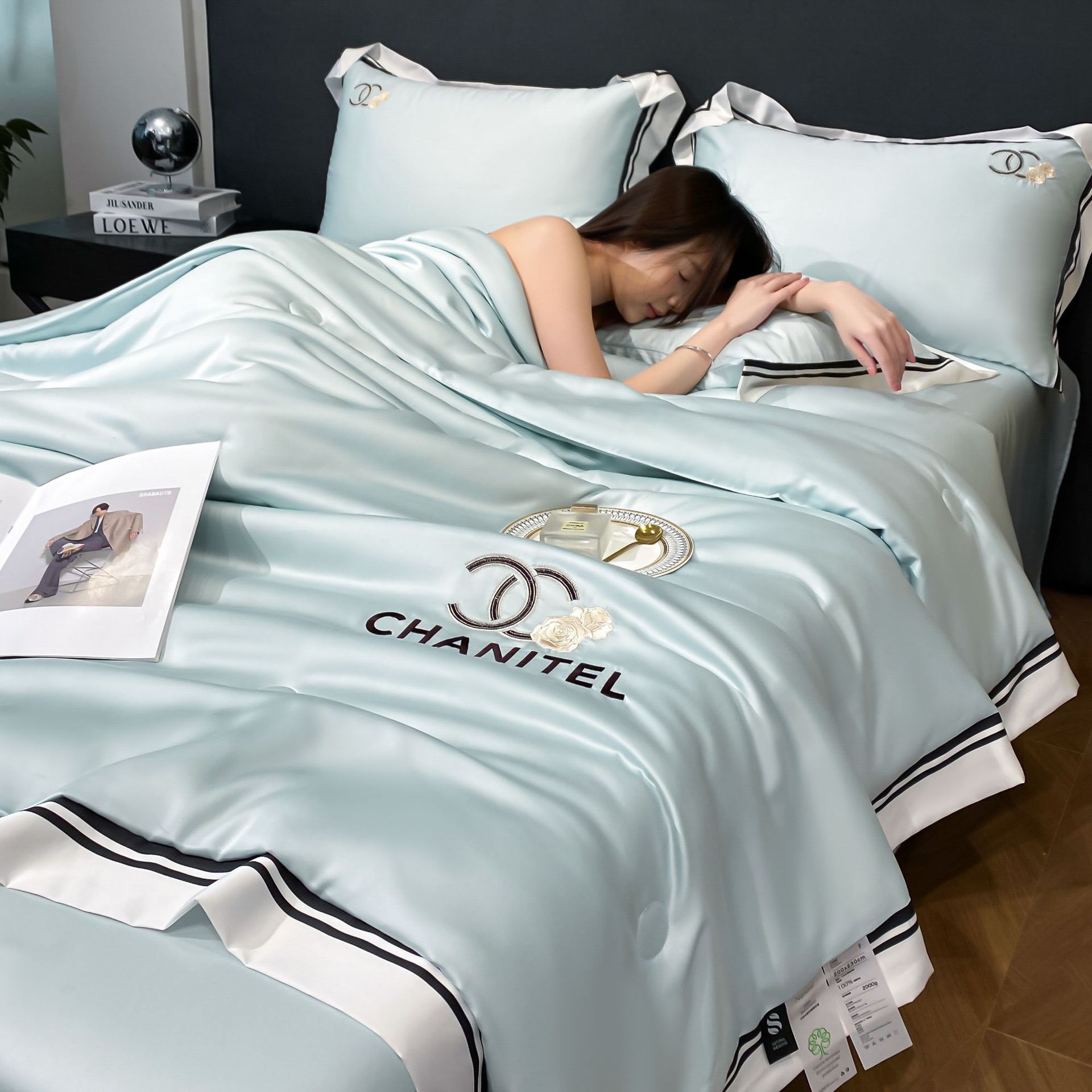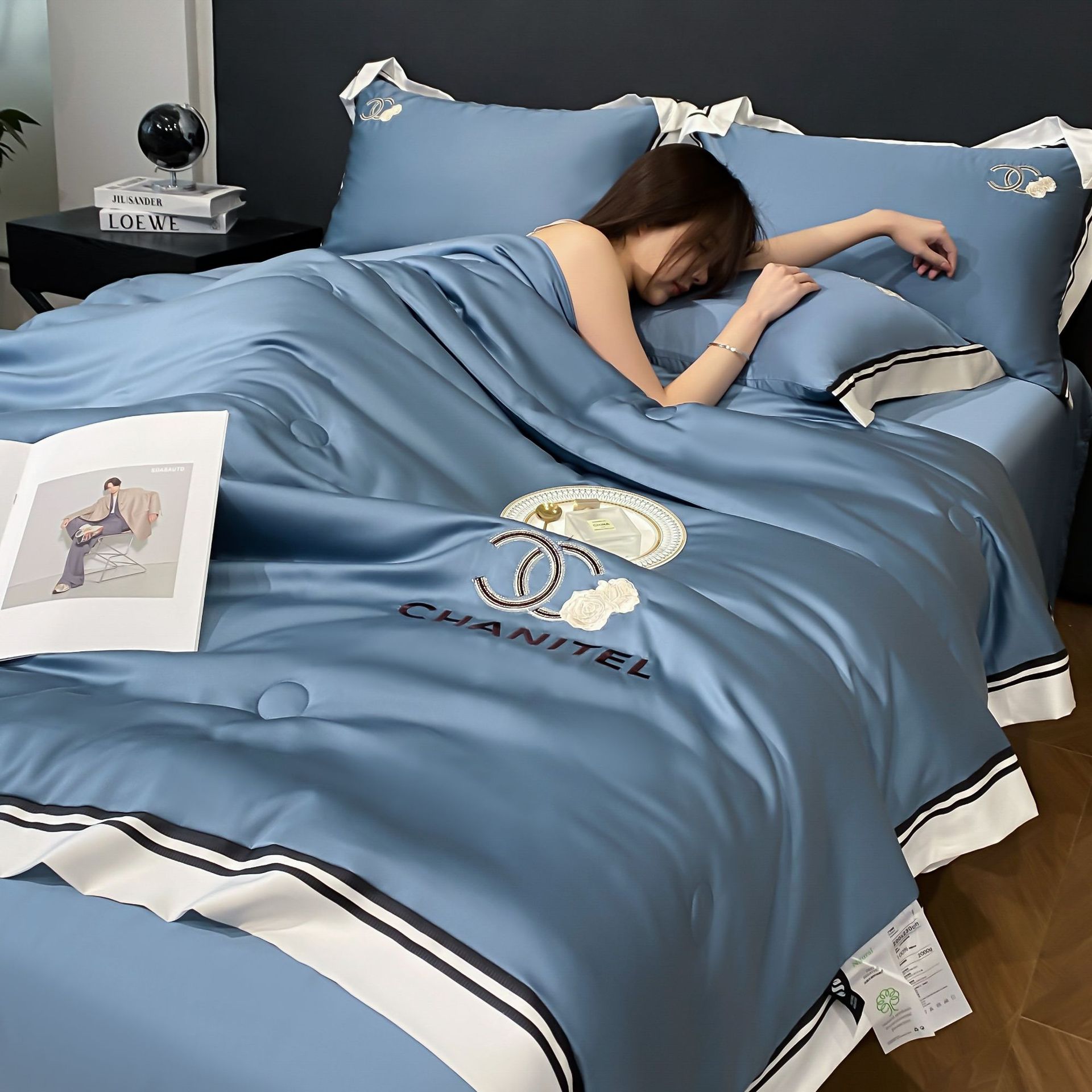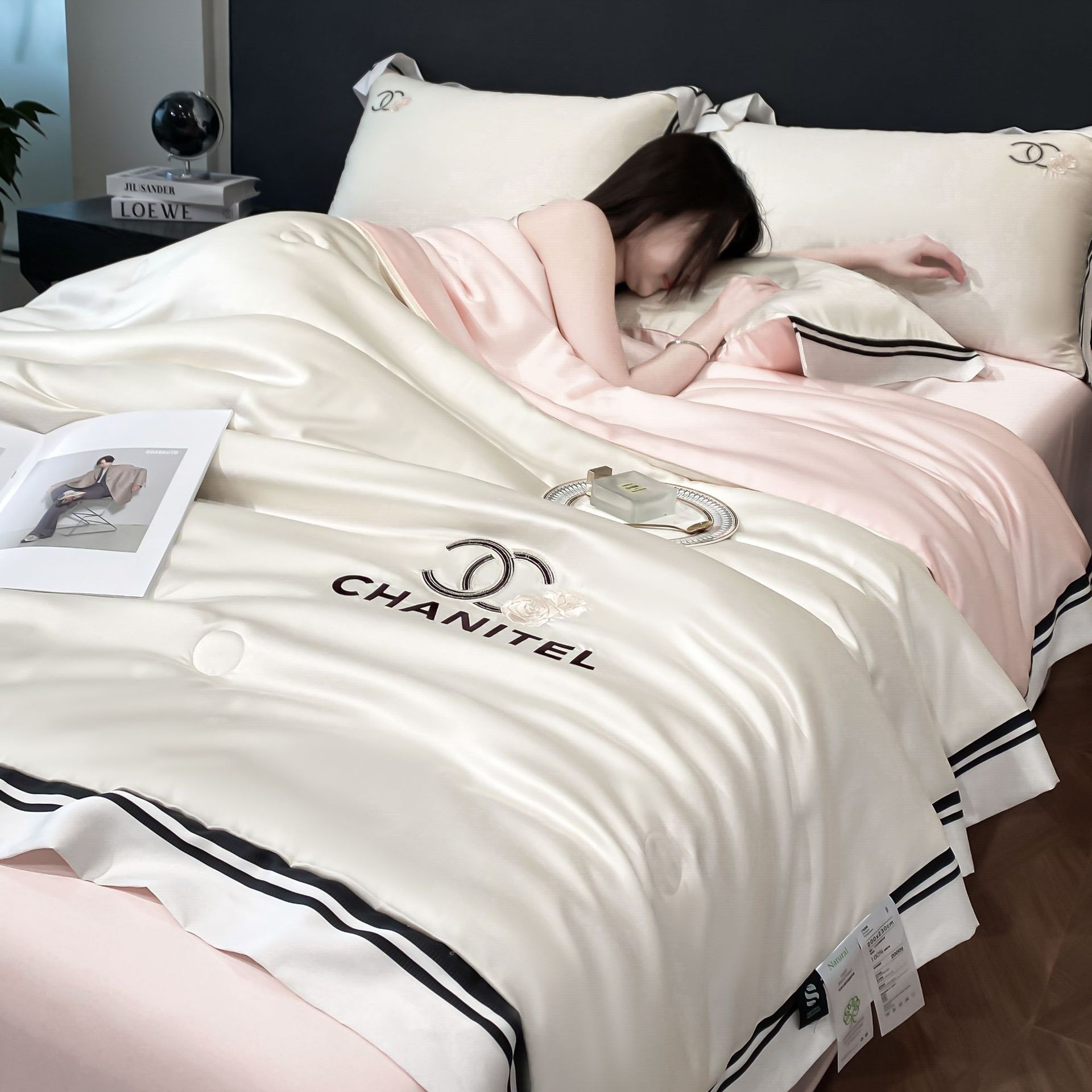하이 엔드 라이트 럭셔리 세척 실크 자수 여름 퀼트 4 피스 세트 쿨 아이스 실크 여름 이불 에어컨 이불 얇은 이불 도매스토어 가기