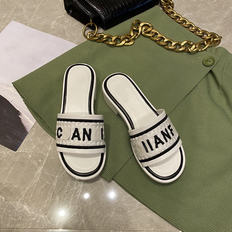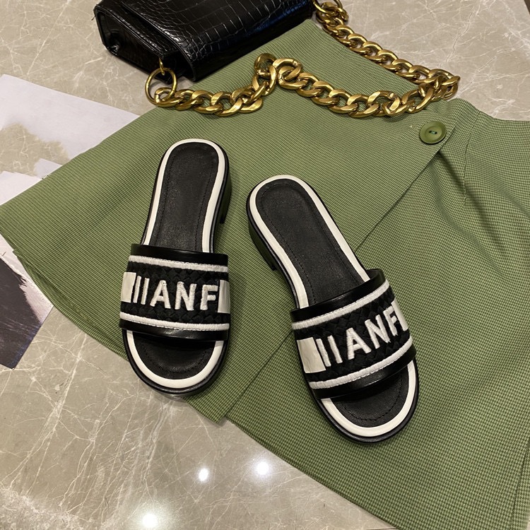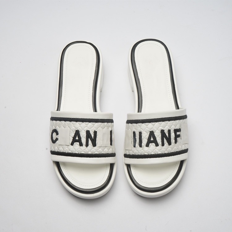 하이 버전 더블 C 작은 샤넬 스타일 캐주얼 짠 슬리퍼 여성의 2024 새 편지 수 놓은 한 단어 외부 착용 샌들