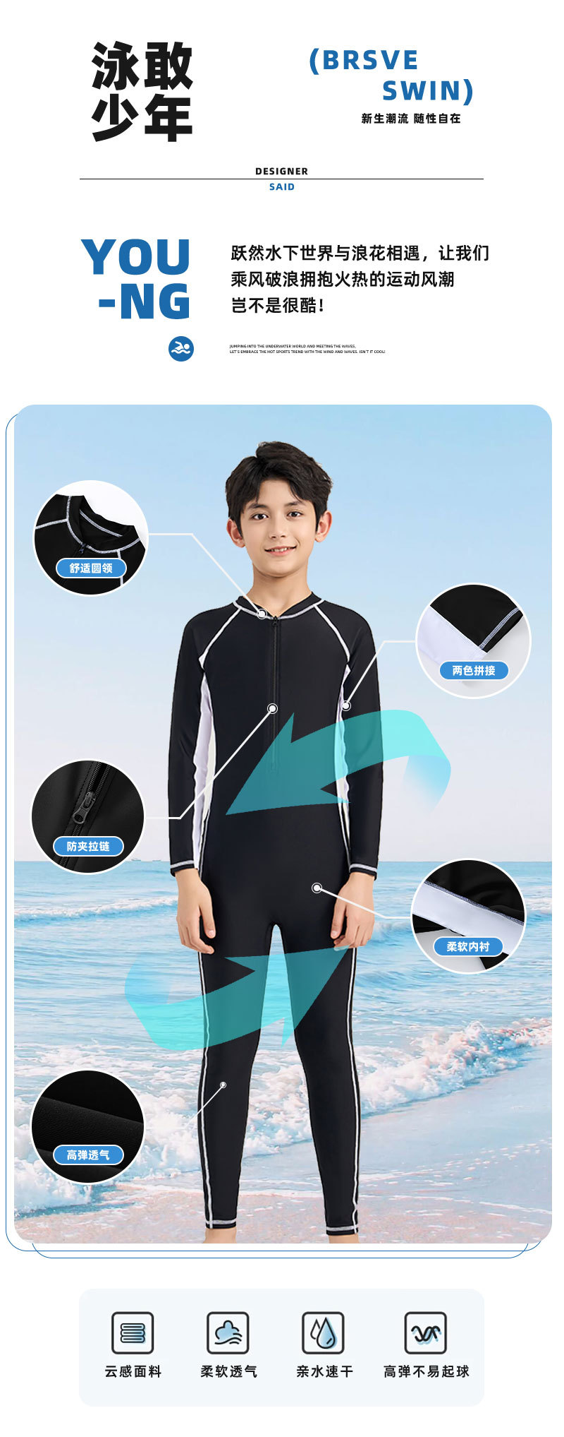새로운 어린이 수영복 소년 긴팔 원피스 중소형 어린이 여름 수영복 바지 전문 수영 의류 도매 맞춤