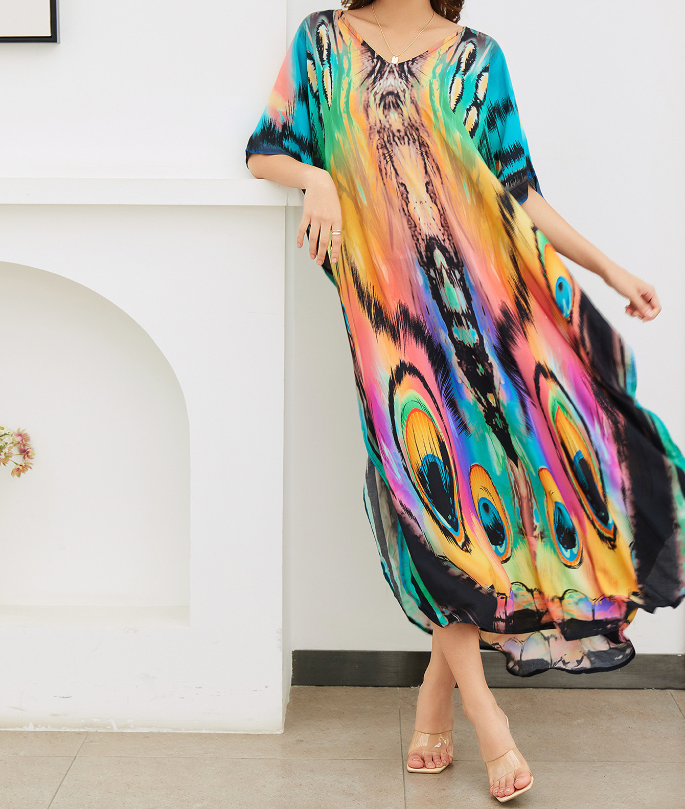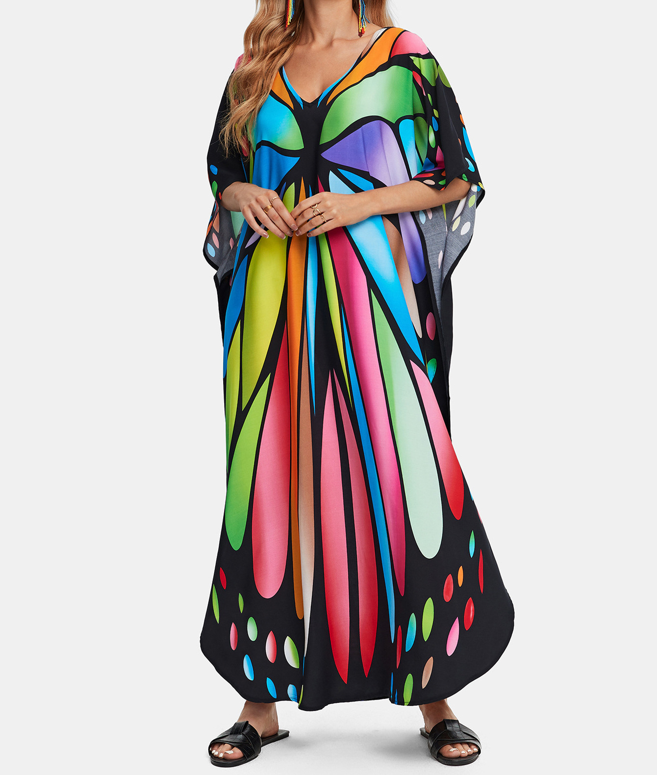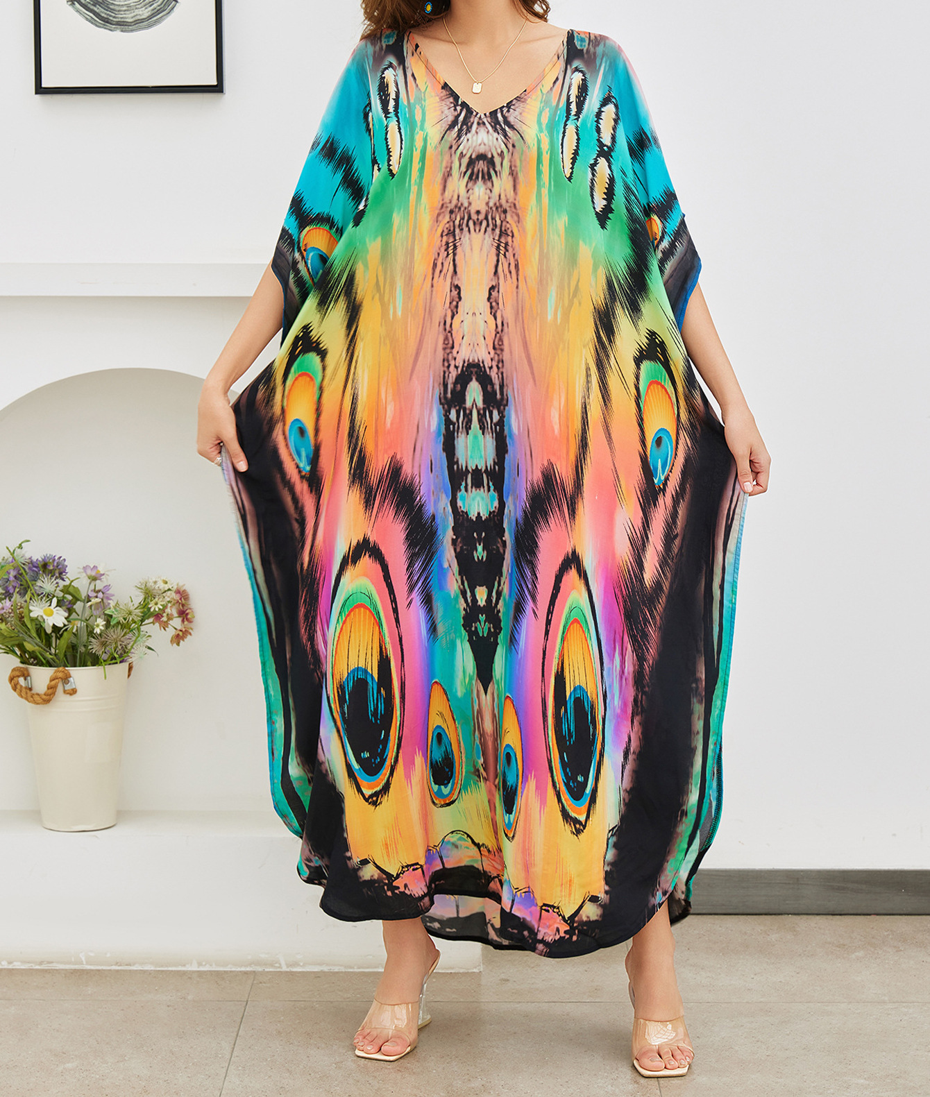 비치 블라우스 레이온 포지셔닝 나비 프린트 휴일 가운 국경 아마존