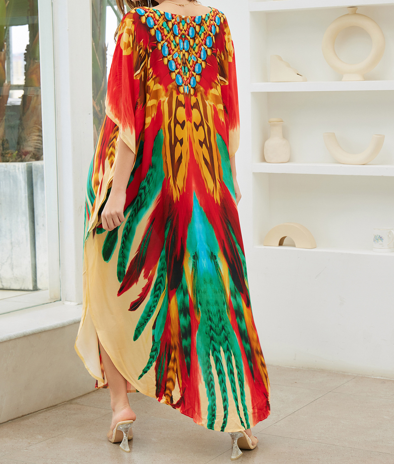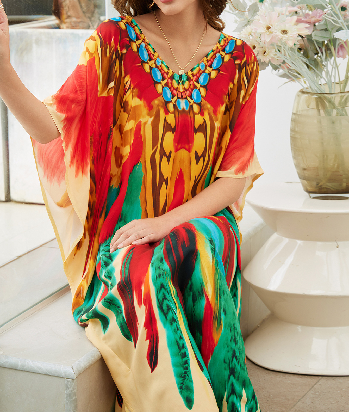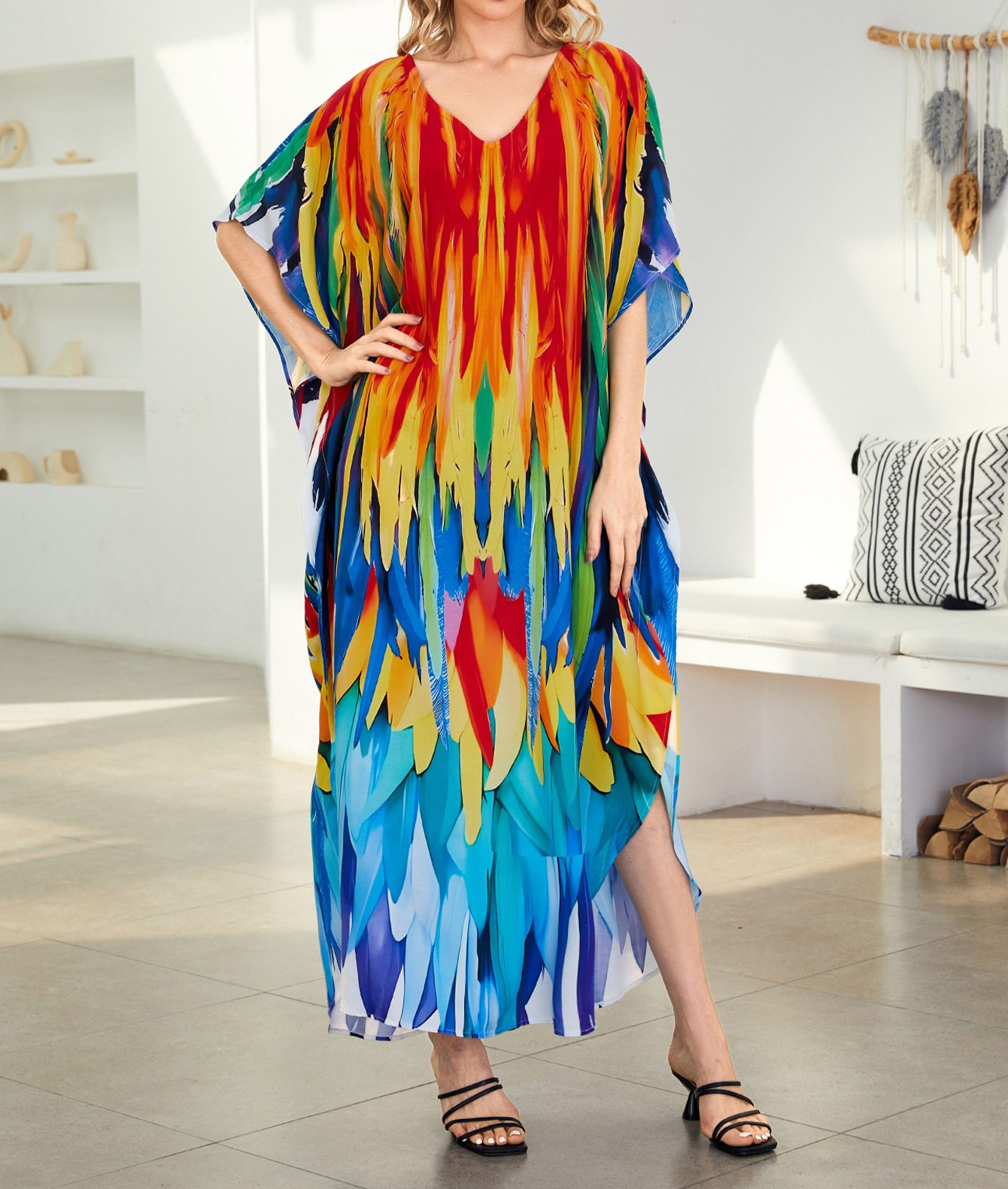 비치 블라우스 레이온 포지셔닝 나비 프린트 휴일 가운 국경 아마존