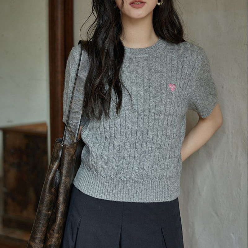 프렌치 그레이 얇은 라운드 넥 니트 티셔츠 여성용 2024 봄 새로운 반팔 그레이 스타일 트렌디 탑스토어 가기