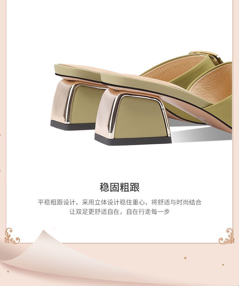 물고기 입 슬리퍼 여성의 여름 외부 착용 2024 새로운 패션 미드 힐 메탈 버클 두꺼운 힐 슬리퍼스토어 가기