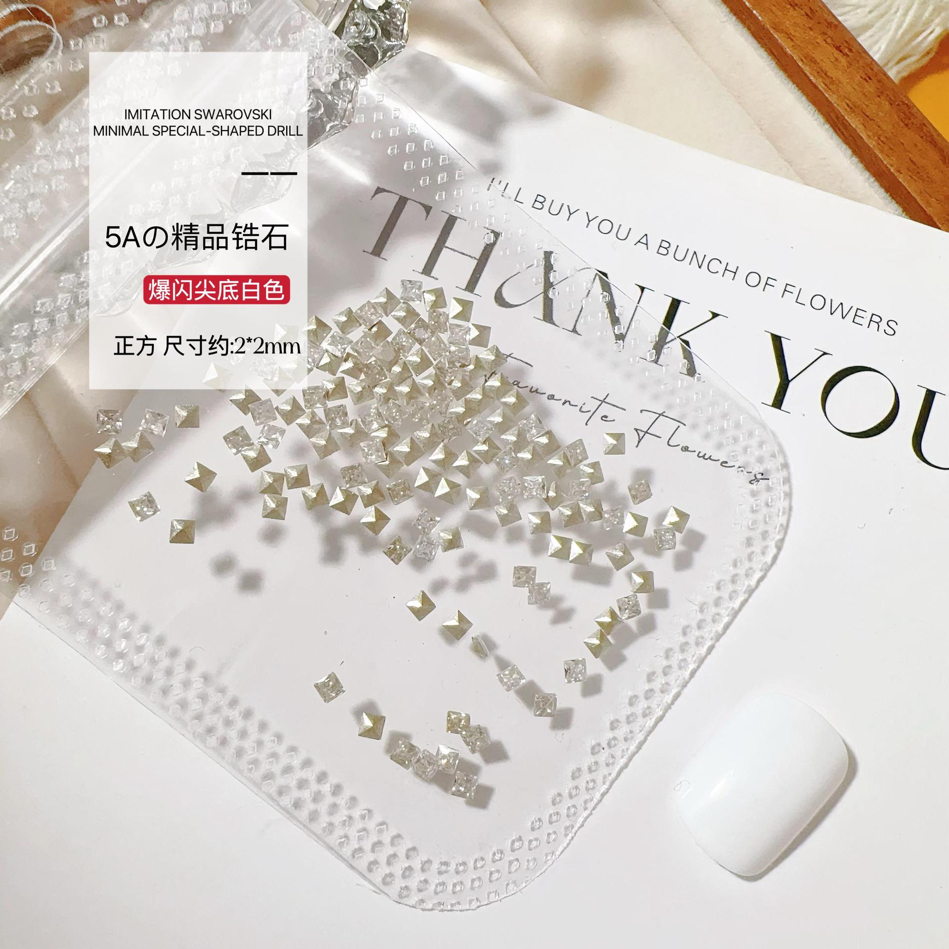 • 실버 흰색 뾰족한 바닥 지르콘 2.0mm 사각형