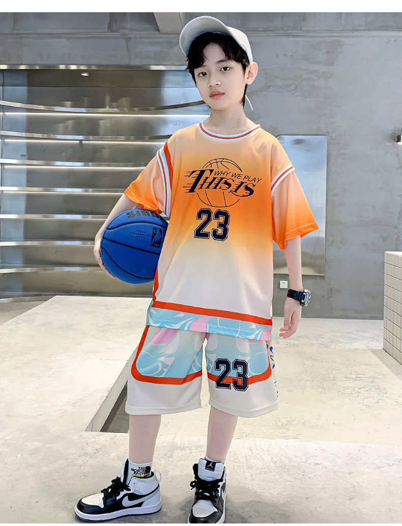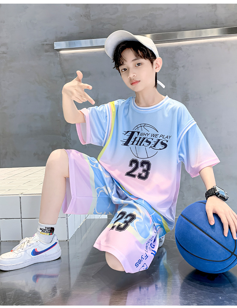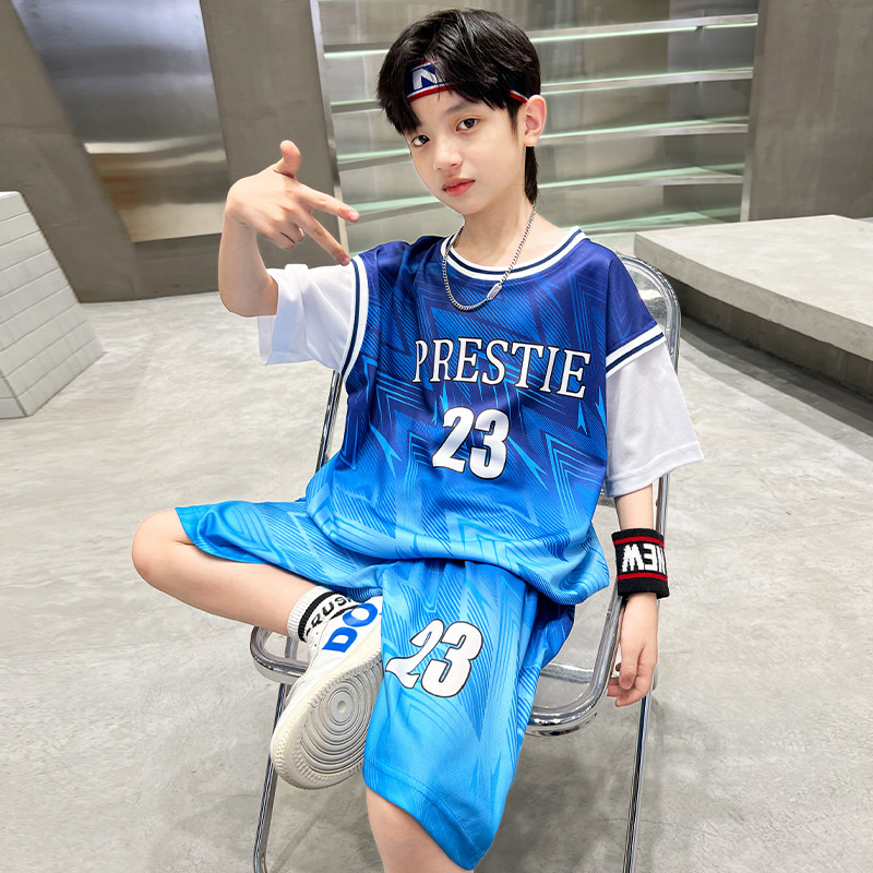 남학생 농구 세트 세트 2025 여름 얇은 중대형 어린이 스포츠 여름 옷 어린이 새 반팔 빠른 건조 옷