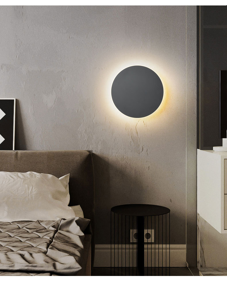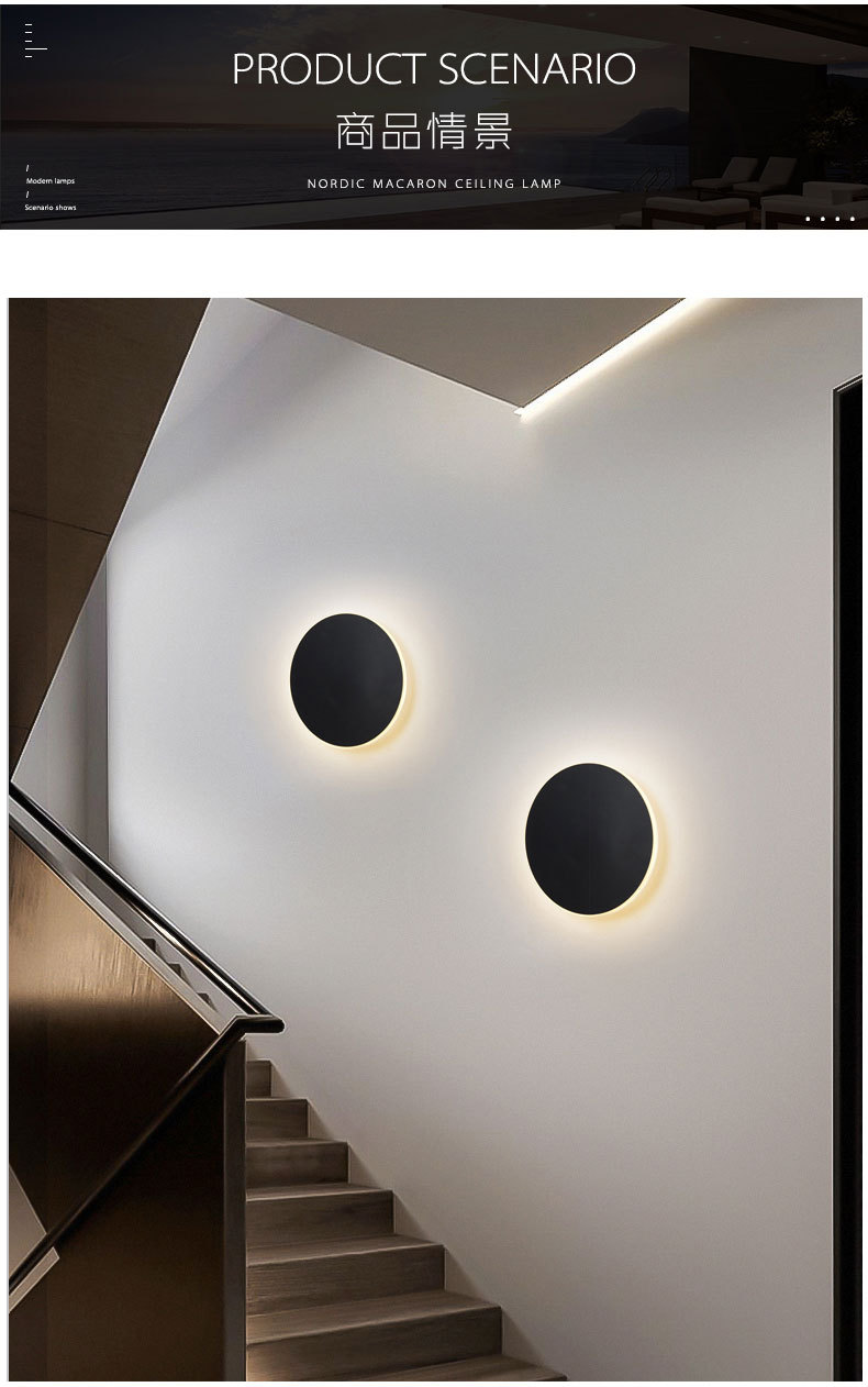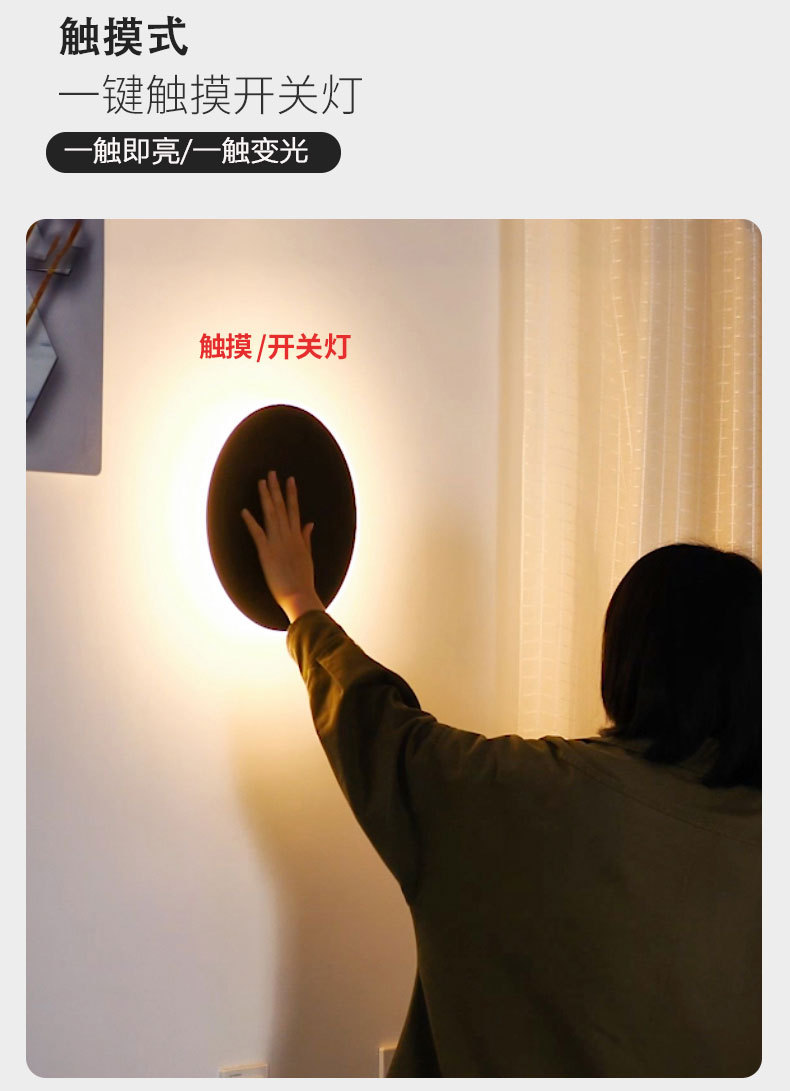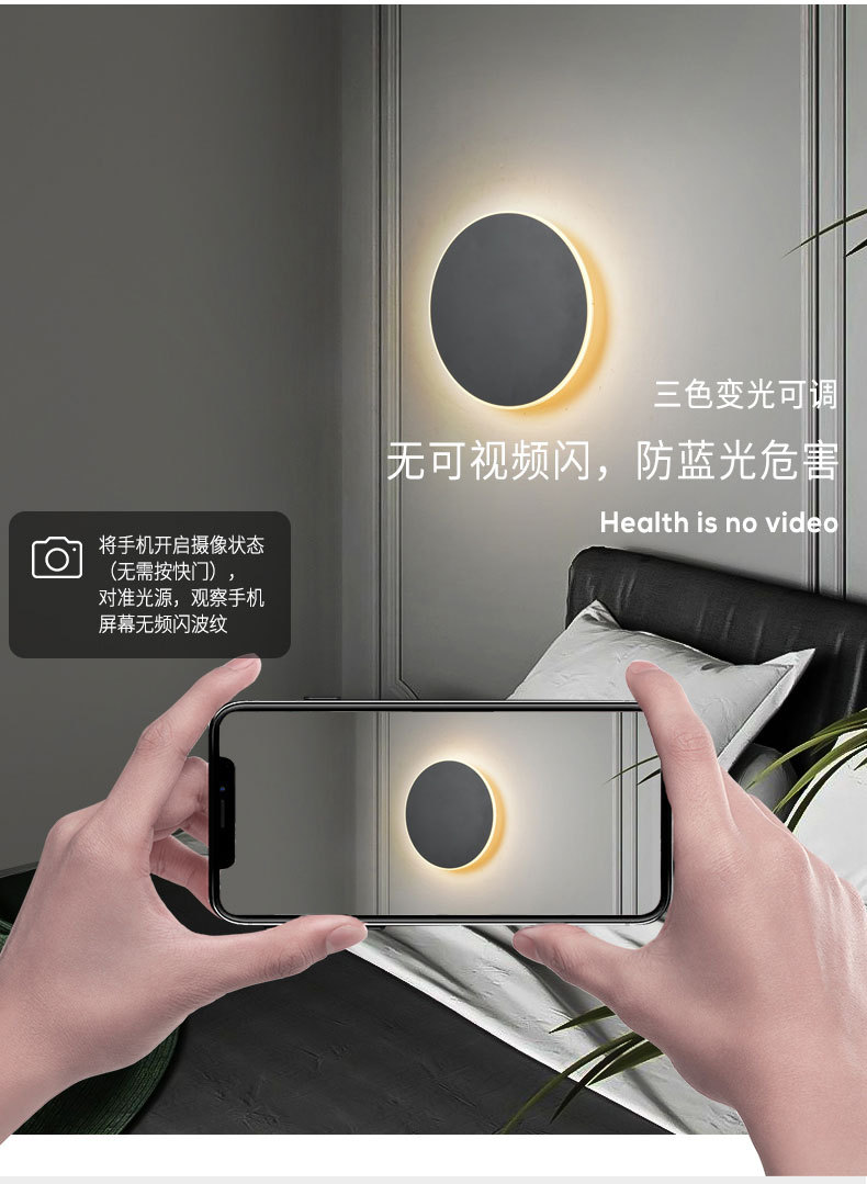 현대 미니멀 한 LED 벽 램프 침실 침대 옆 램프 모델 전시실 배경 벽 장식 나뭇결 둥근 벽 램프스토어 가기