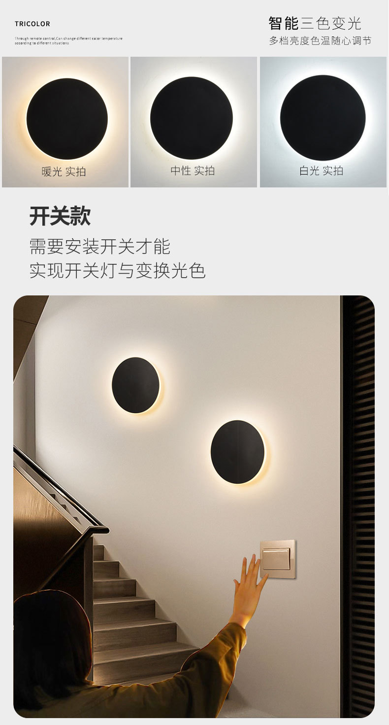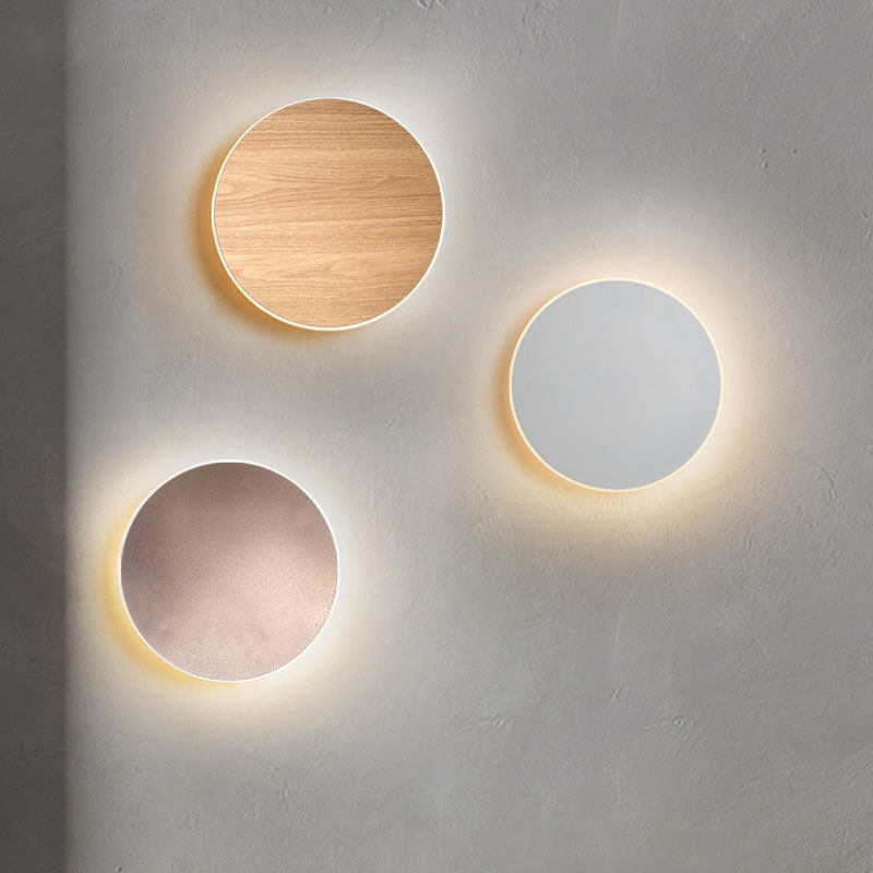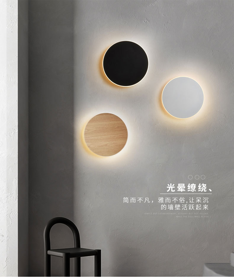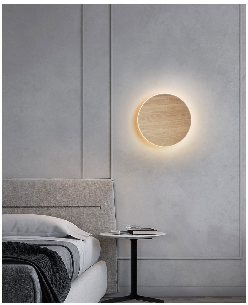 현대 미니멀 한 LED 벽 램프 침실 침대 옆 램프 모델 전시실 배경 벽 장식 나뭇결 둥근 벽 램프