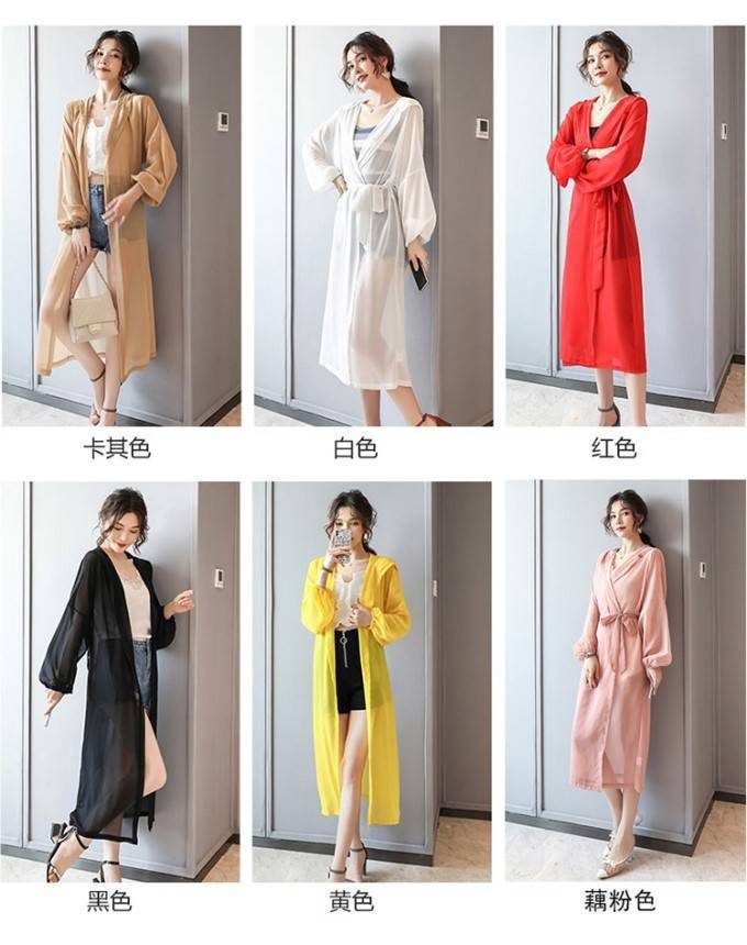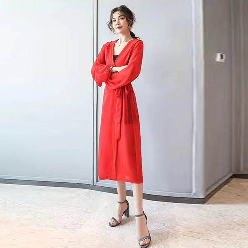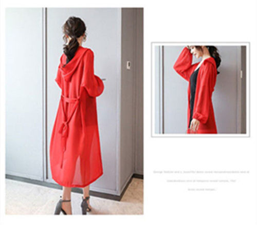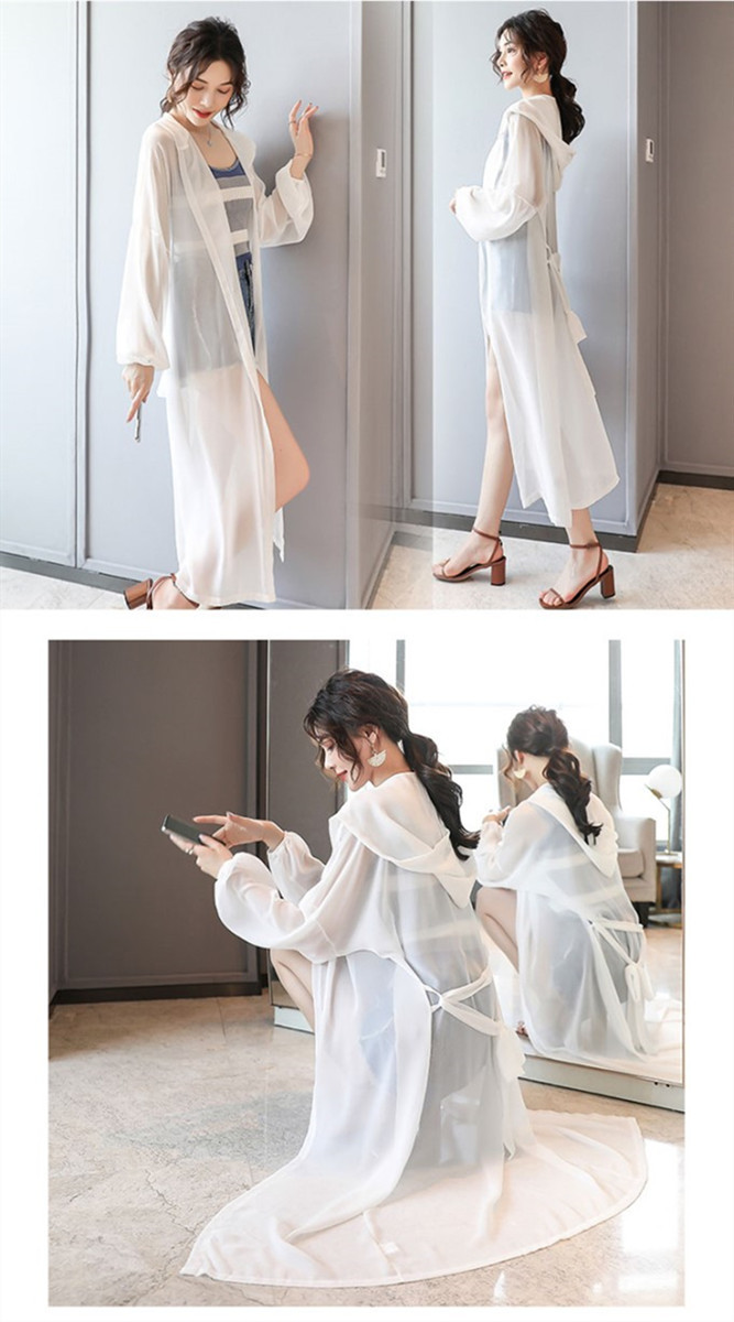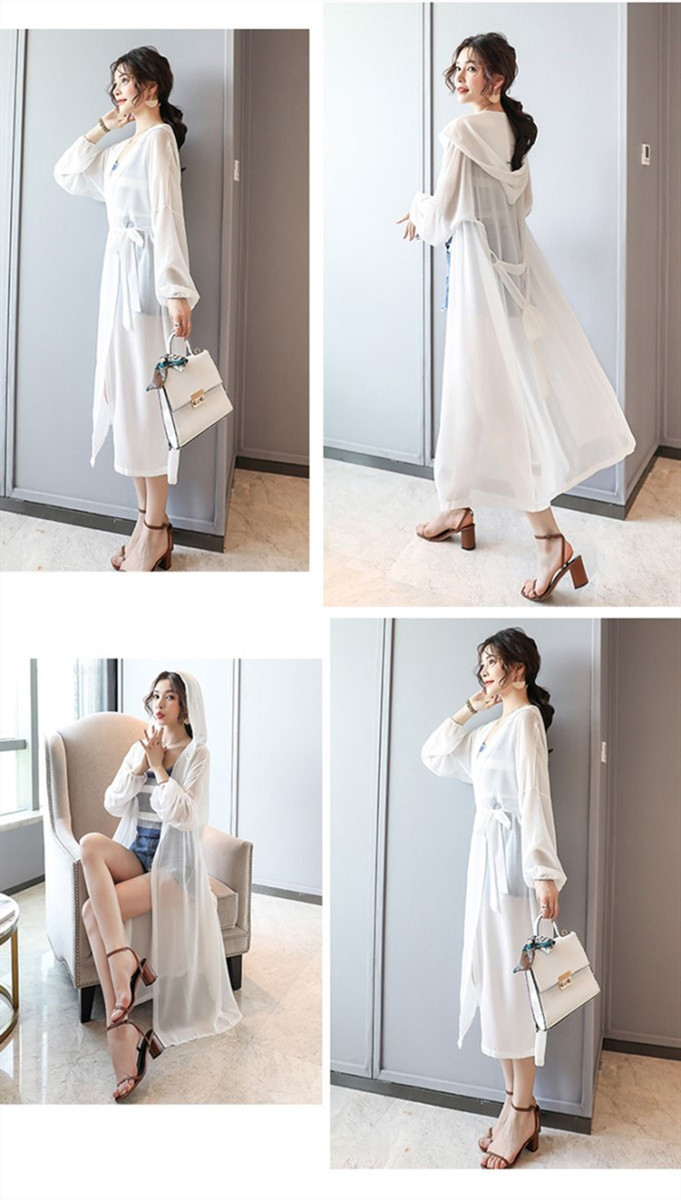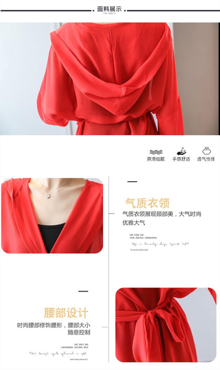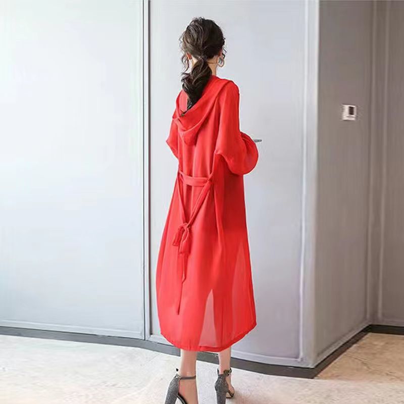 시폰 후드 썬 보호 의류 여성 중간 길이의 레이스 업 Ins 슈퍼 인기있는 솔리드 컬러 에어컨 카디건 패셔너블 숄 얇은 코트