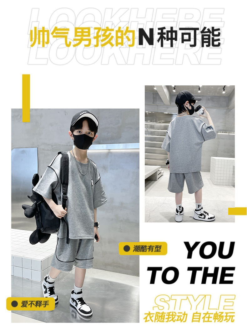 남자들의 여름 세트 2024 년 새 어린이 여름 유행 반팔 소년의 멋진 스포츠 옷스토어 가기