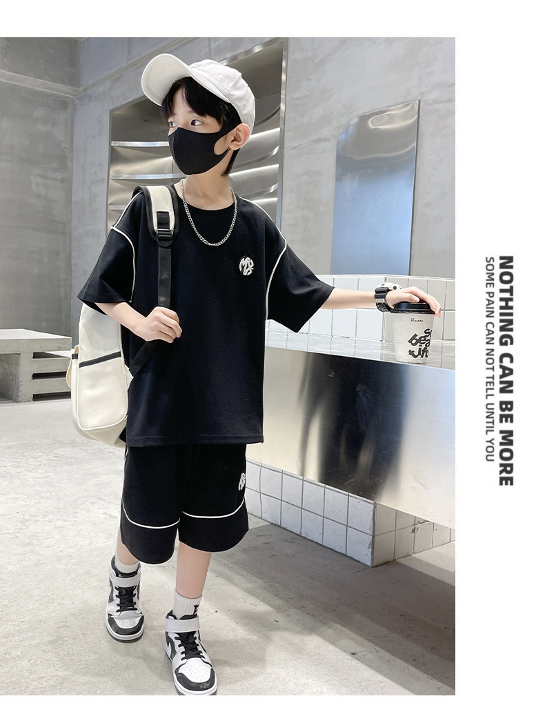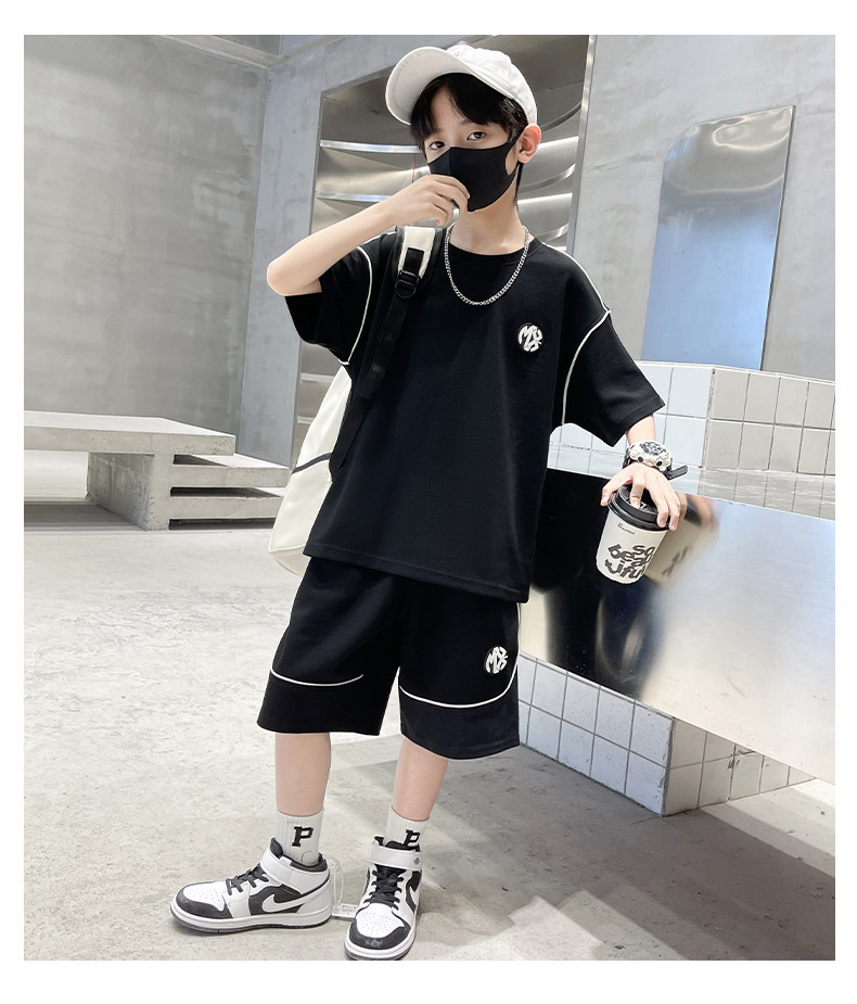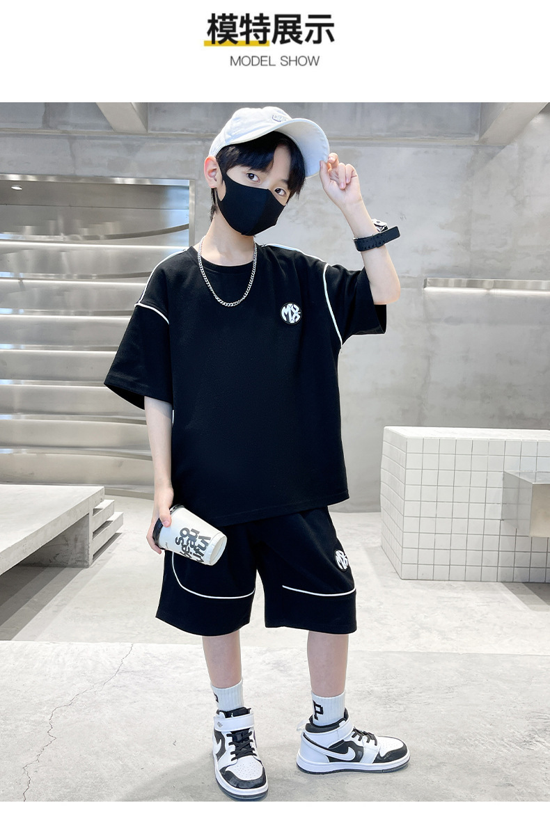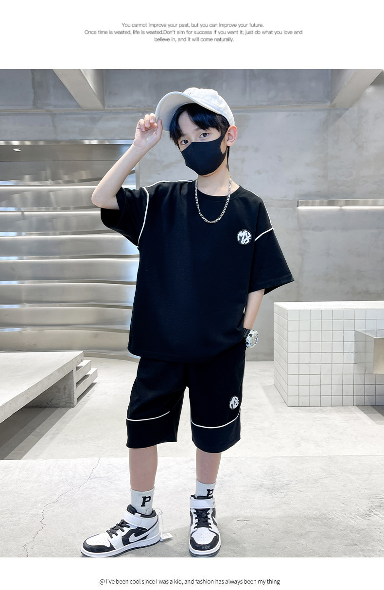 남자들의 여름 세트 2024 년 새 어린이 여름 유행 반팔 소년의 멋진 스포츠 옷