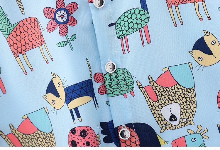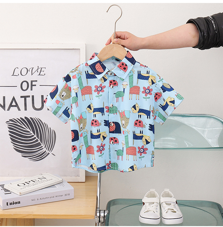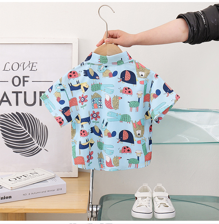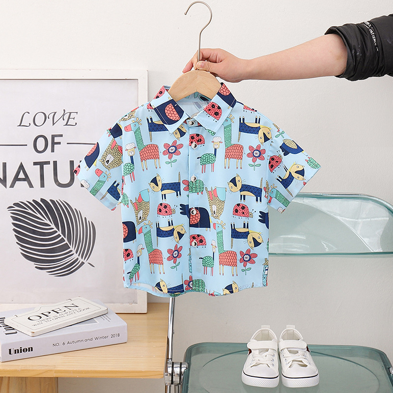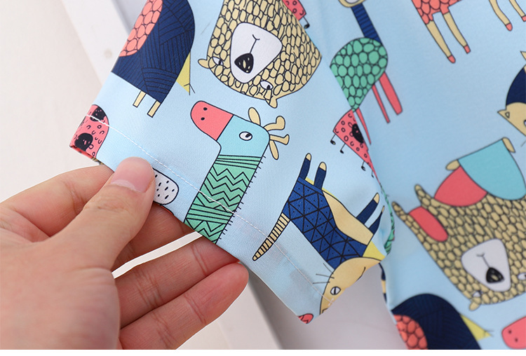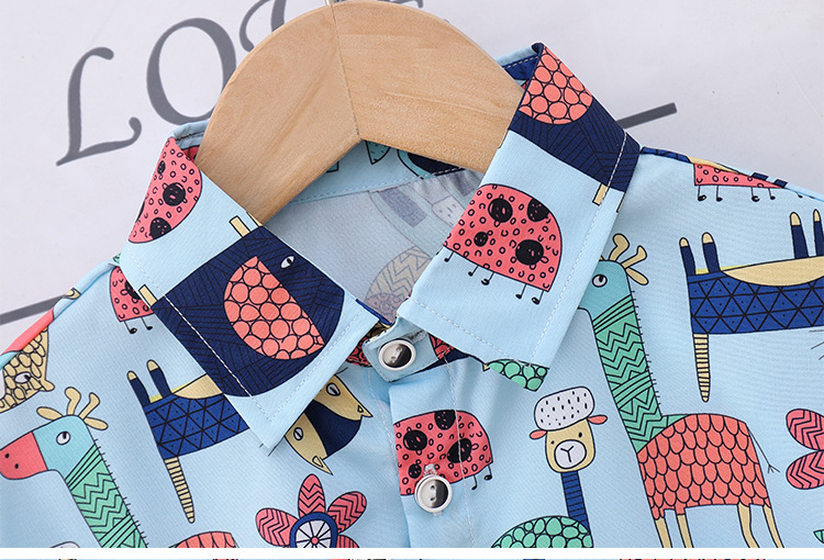 아동 의류 블루 동물 프린트 소년 반팔 셔츠 새로운 홍콩 스타일 캐주얼 셔츠 반바지 아동복 여름 의류스토어 가기