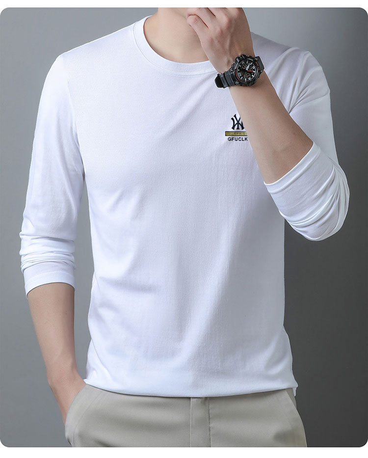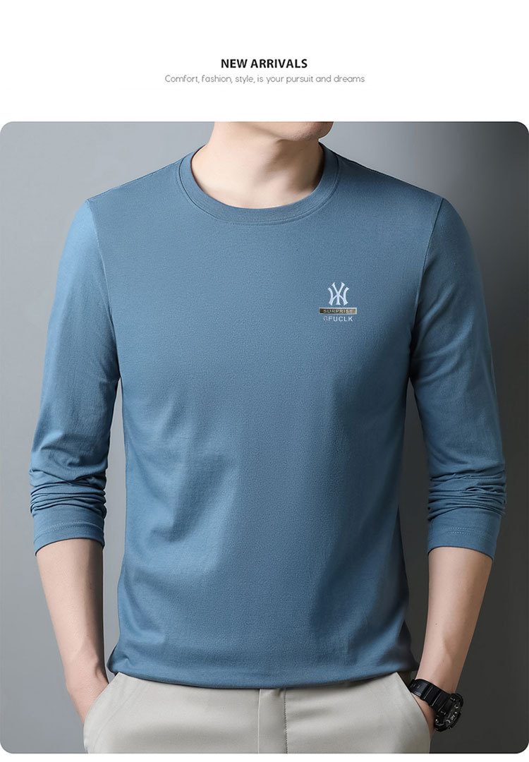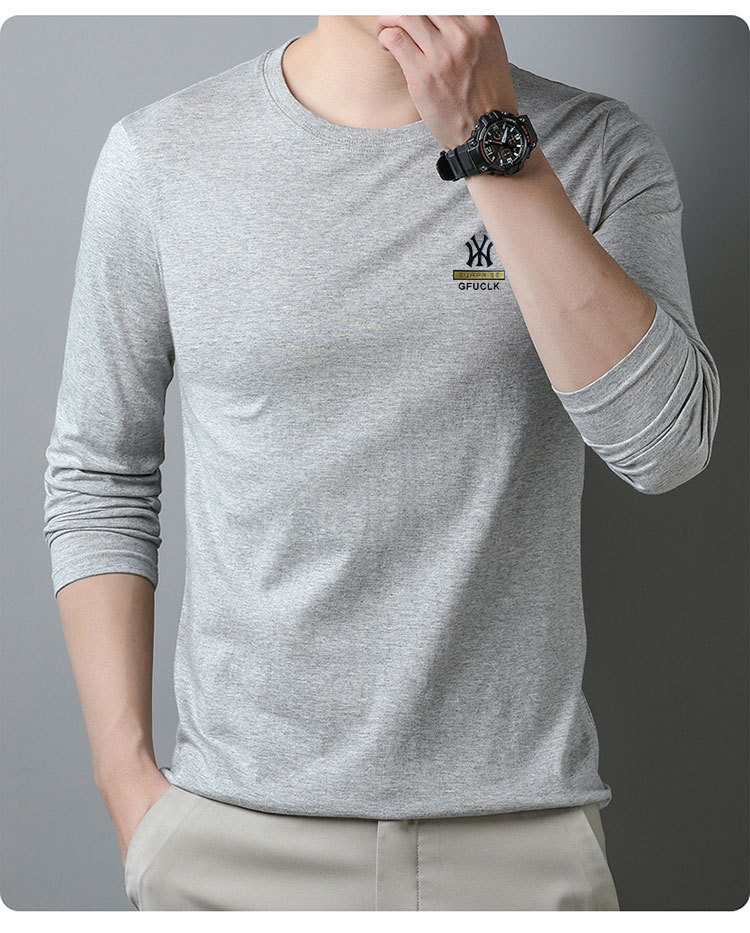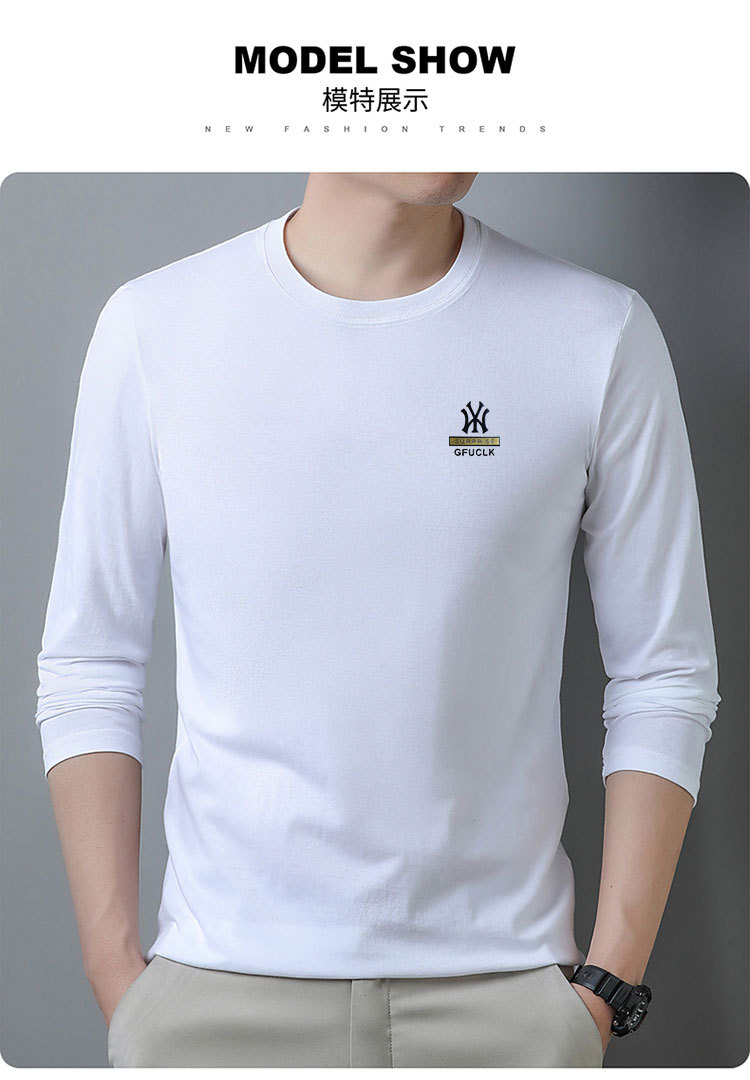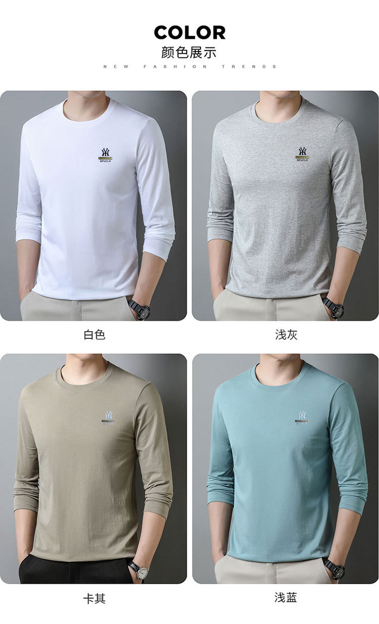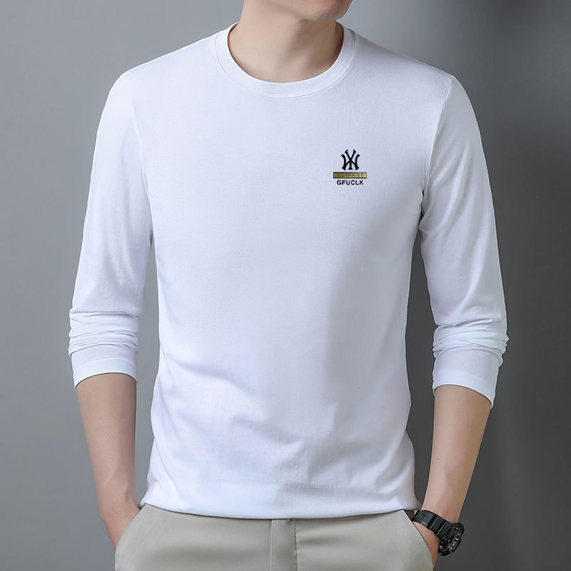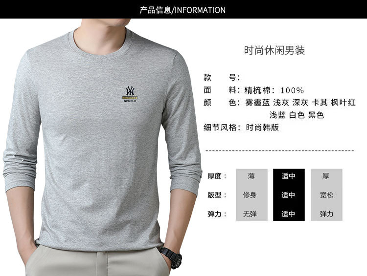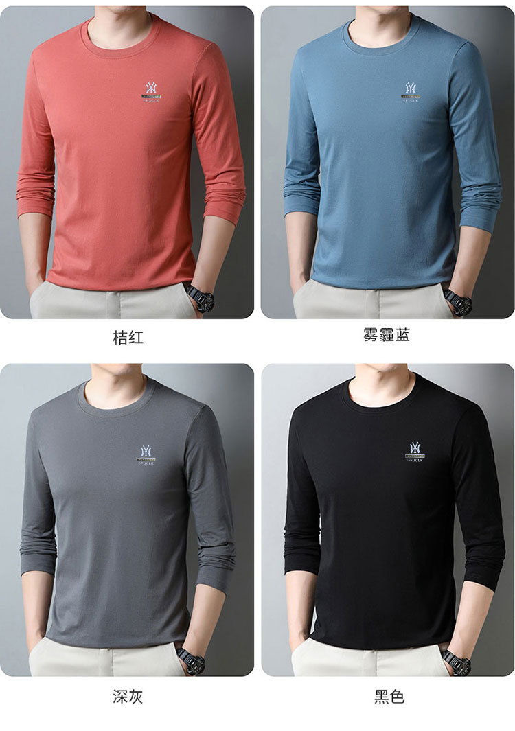 100 면 남성 긴팔 티셔츠 여름 간단한 캐주얼 라운드 넥 얇은 인쇄면 티셔츠 젊은 남성