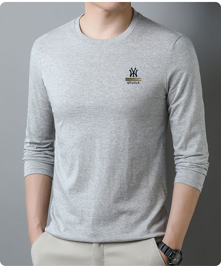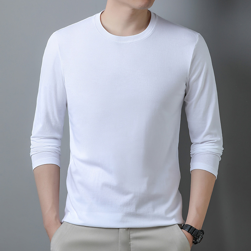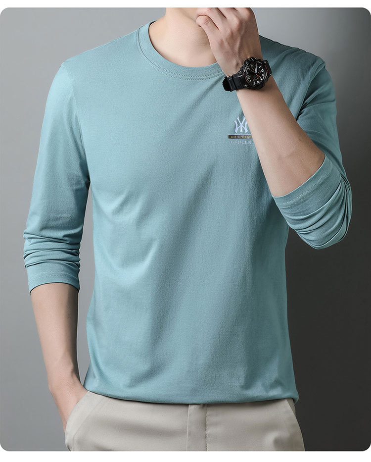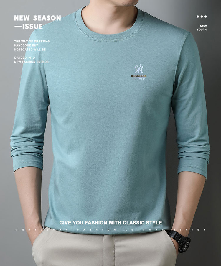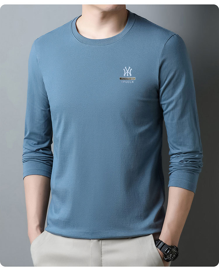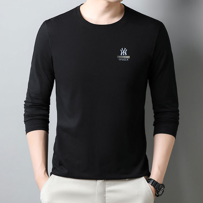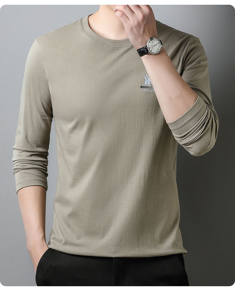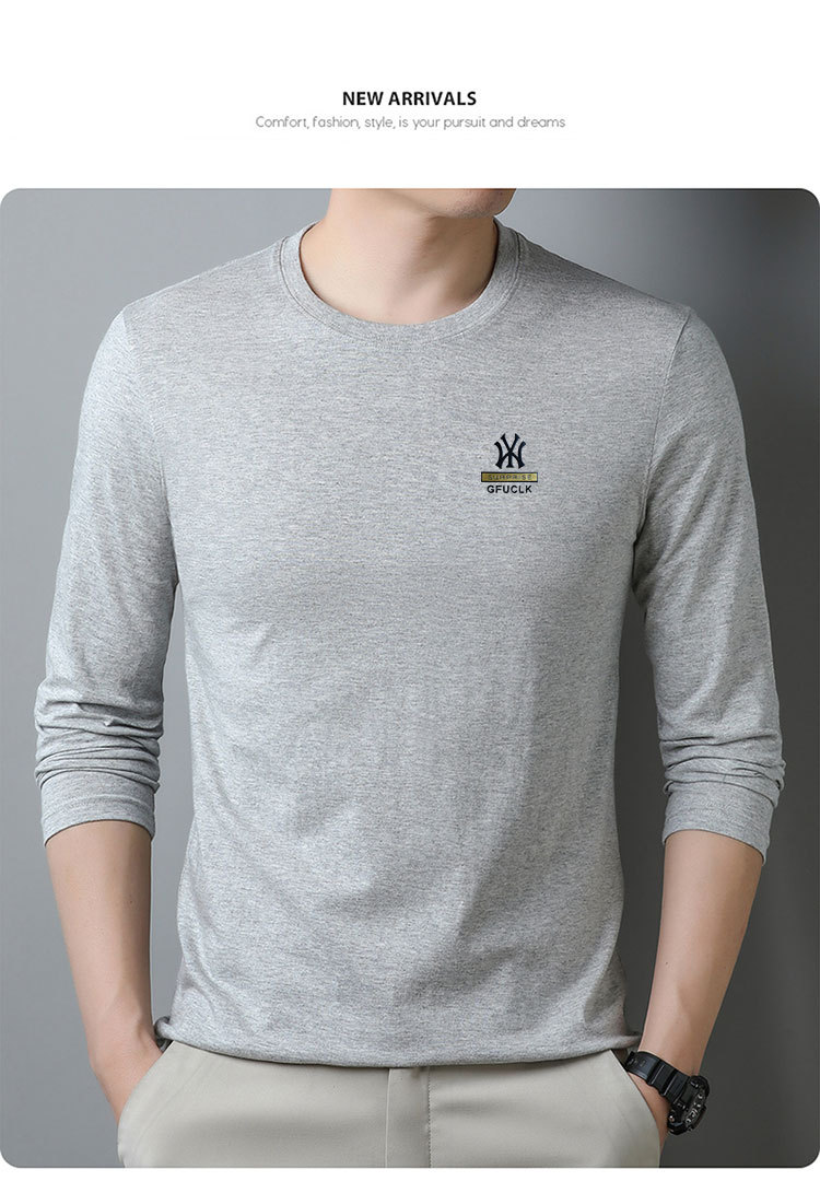 100 면 남성 긴팔 티셔츠 여름 간단한 캐주얼 라운드 넥 얇은 인쇄면 티셔츠 젊은 남성