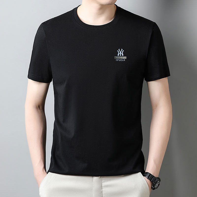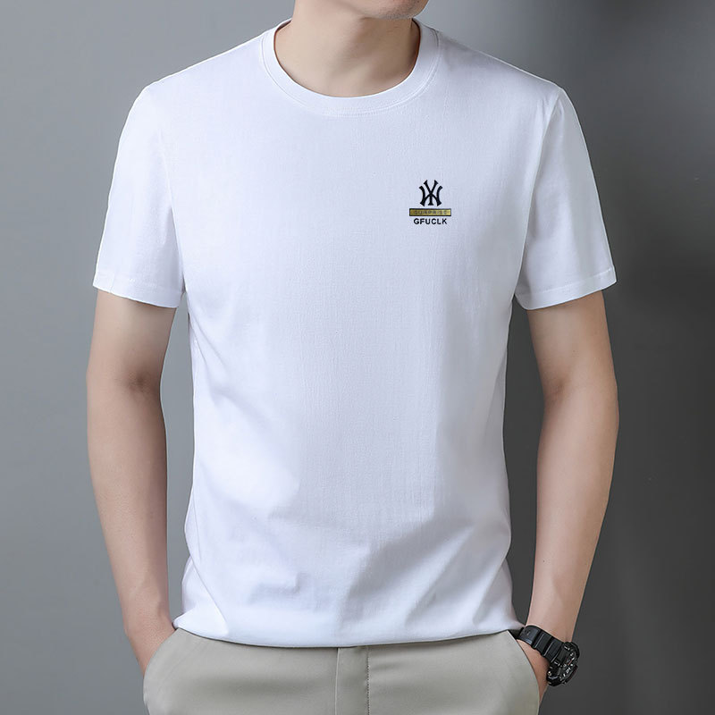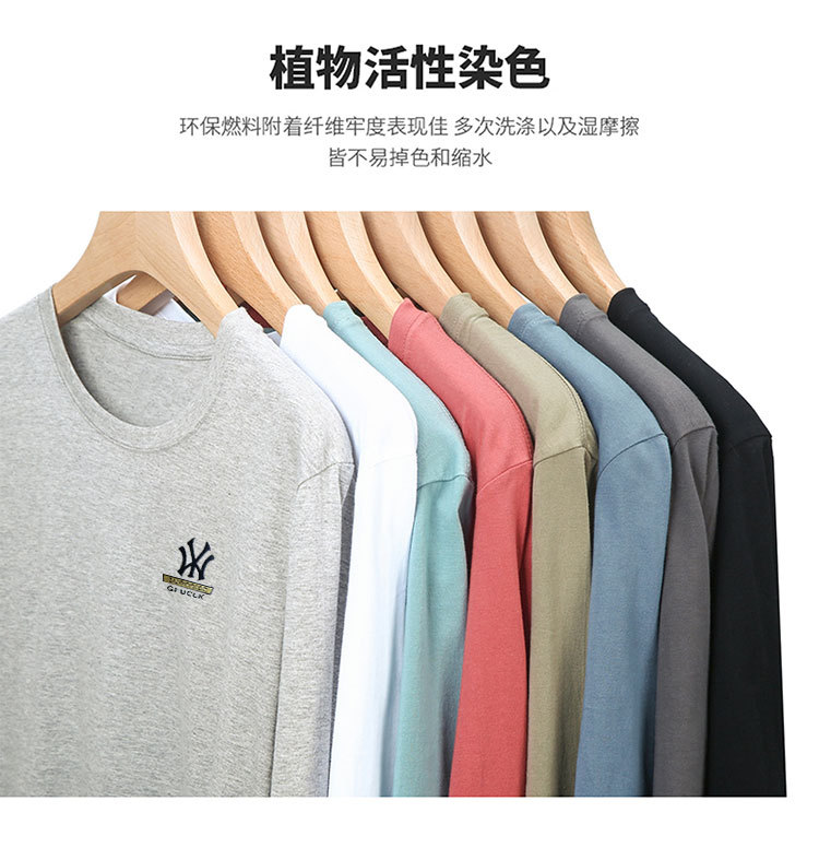 100 면 남성 긴팔 티셔츠 여름 간단한 캐주얼 라운드 넥 얇은 인쇄면 티셔츠 젊은 남성스토어 가기