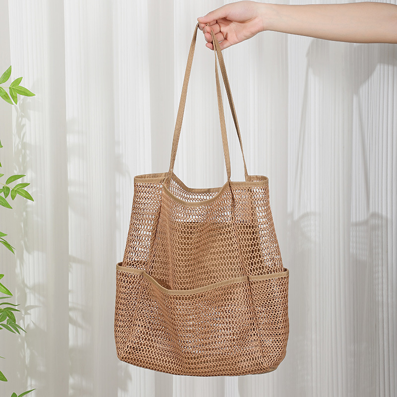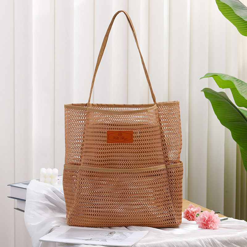 비치백 아마존 메쉬 숄더 토트 백 남성용 및 여성용 외출 휴대용 세면 용품 수영 의류 보관 가방