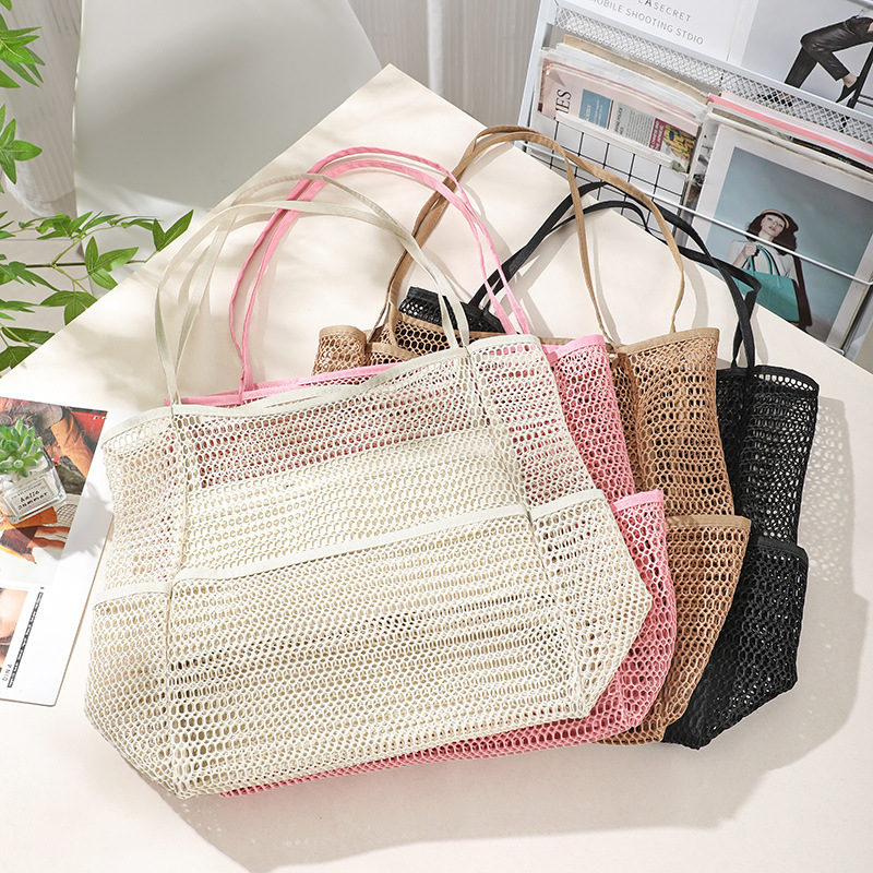 비치백 아마존 메쉬 숄더 토트 백 남성용 및 여성용 외출 휴대용 세면 용품 수영 의류 보관 가방스토어 가기