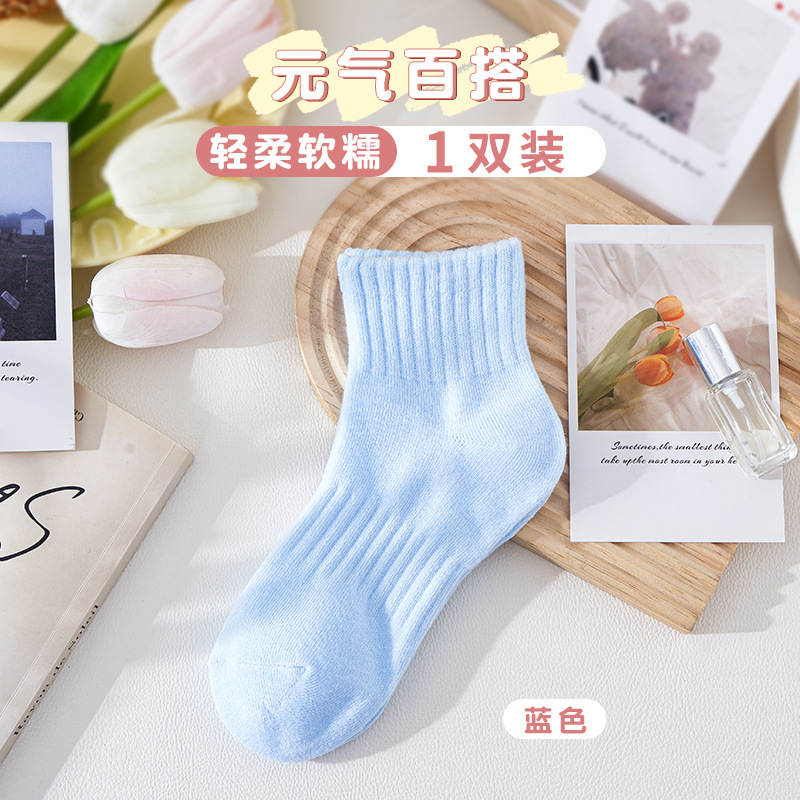 양말 여성의 짧은 양말 봄과 가을 중반 배럴 방취제 땀 흡수성 여름 단색 스포츠 면 양말 여성의 짧은 통 양말