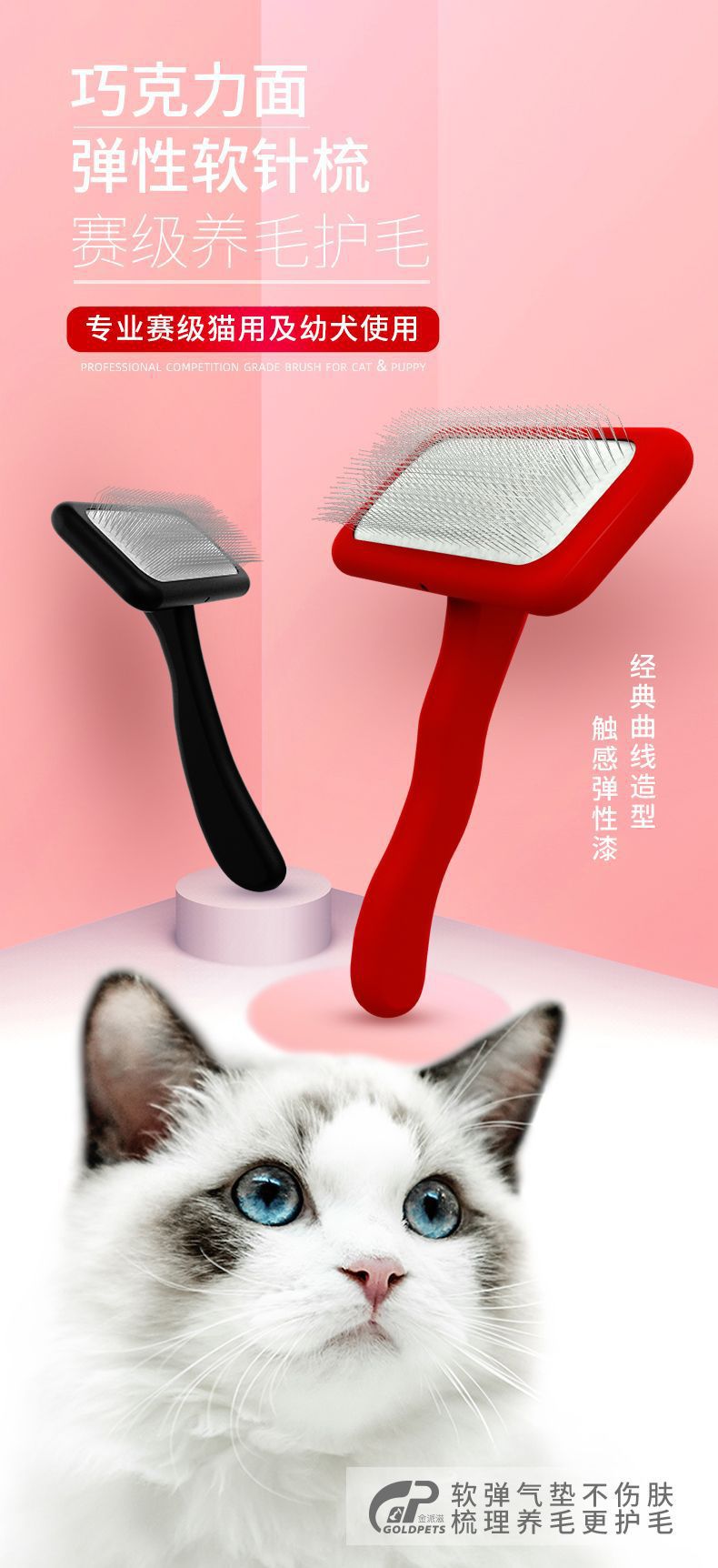 진 파지 골드펫 애완 동물 빗 고양이 빗 미용실 터치 페인트 애완 동물 머리 제거 빗 공기 쿠션 바늘 빗
