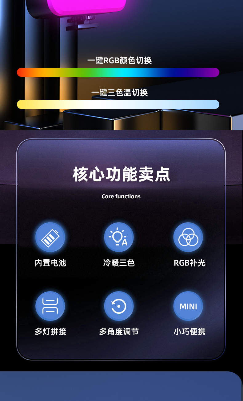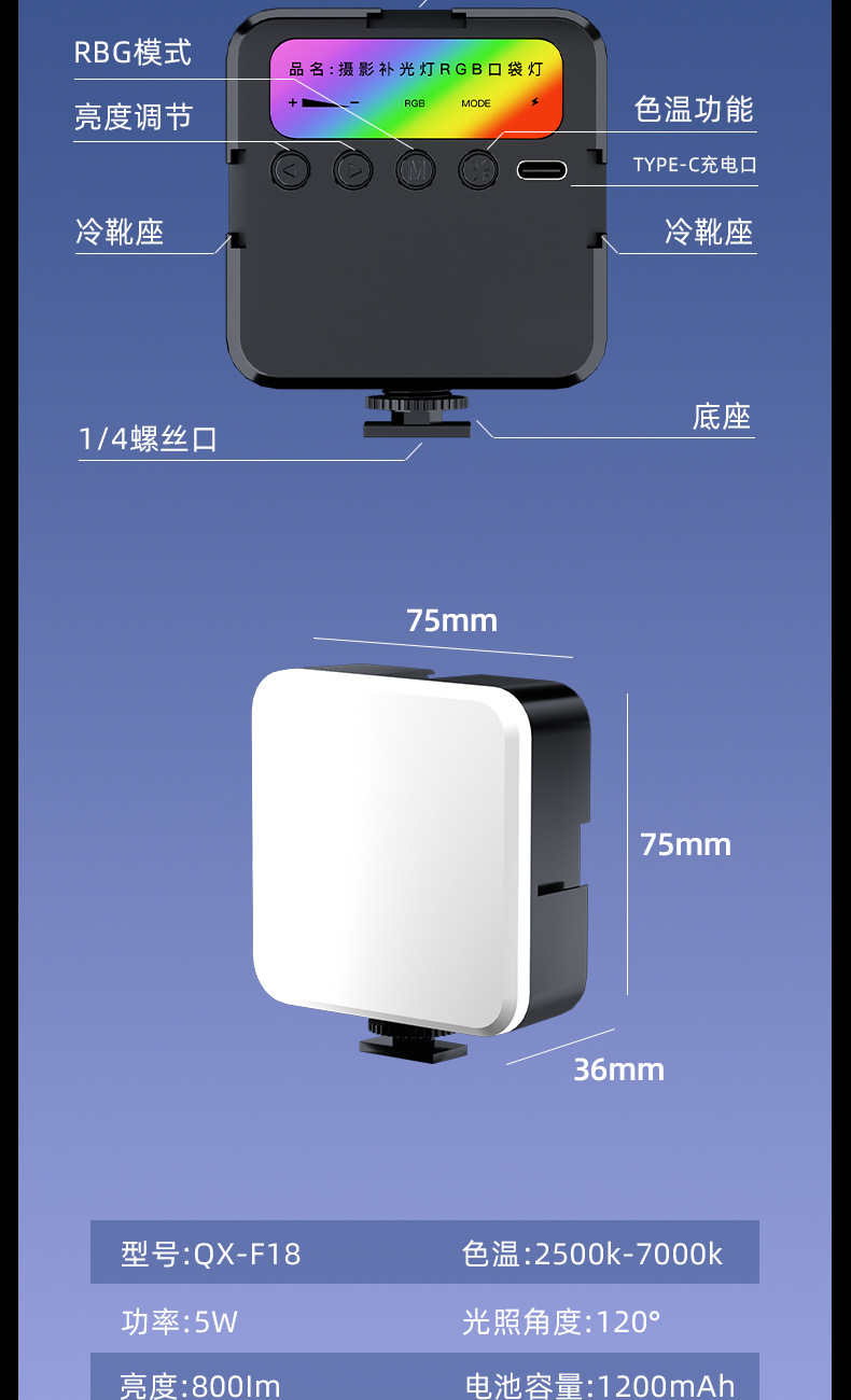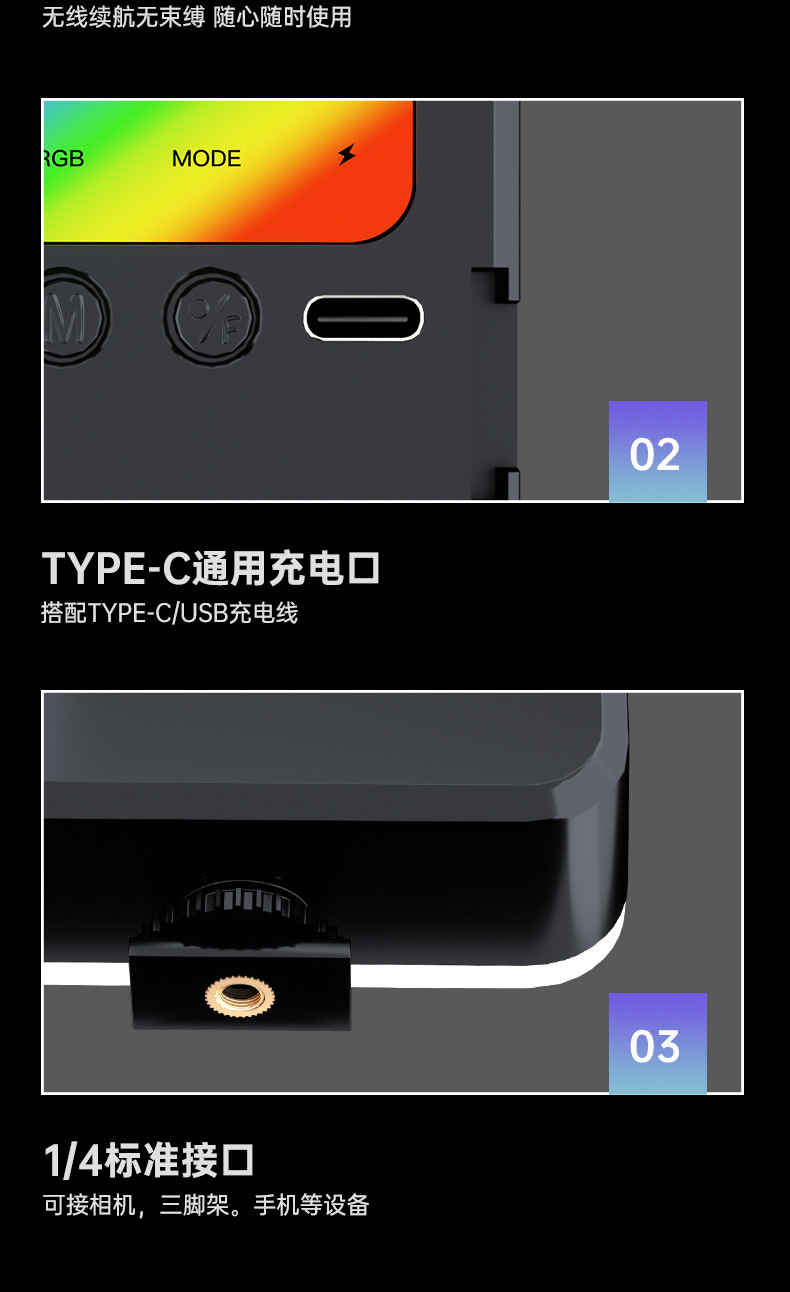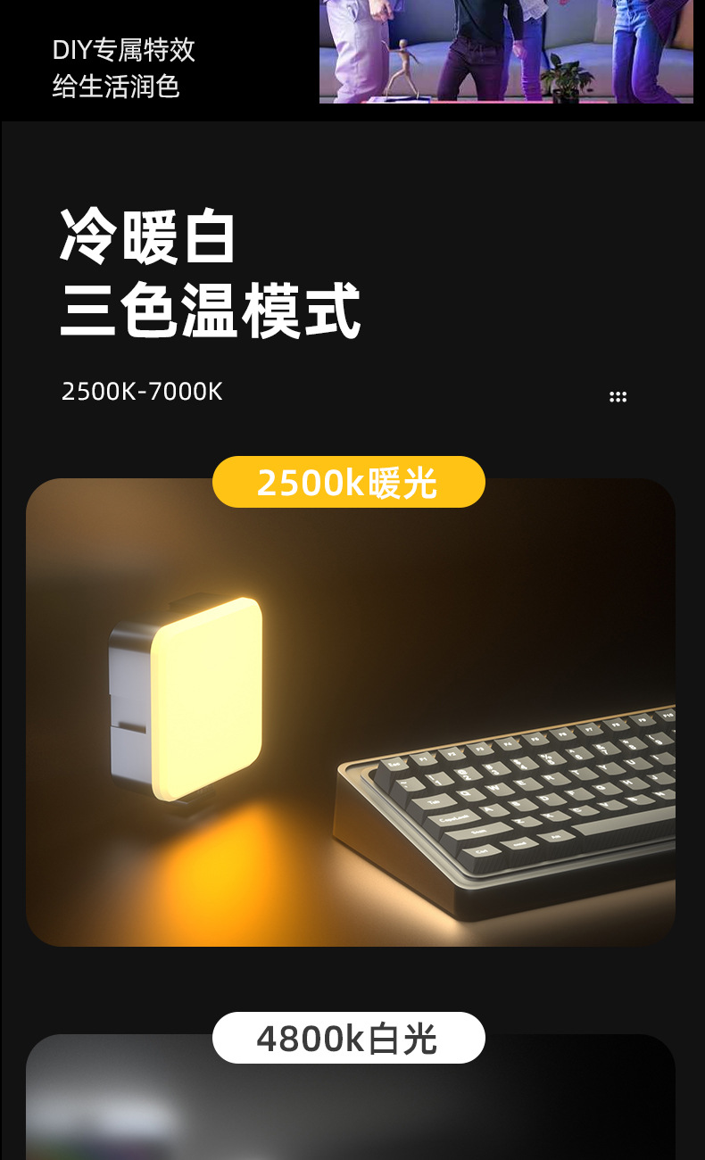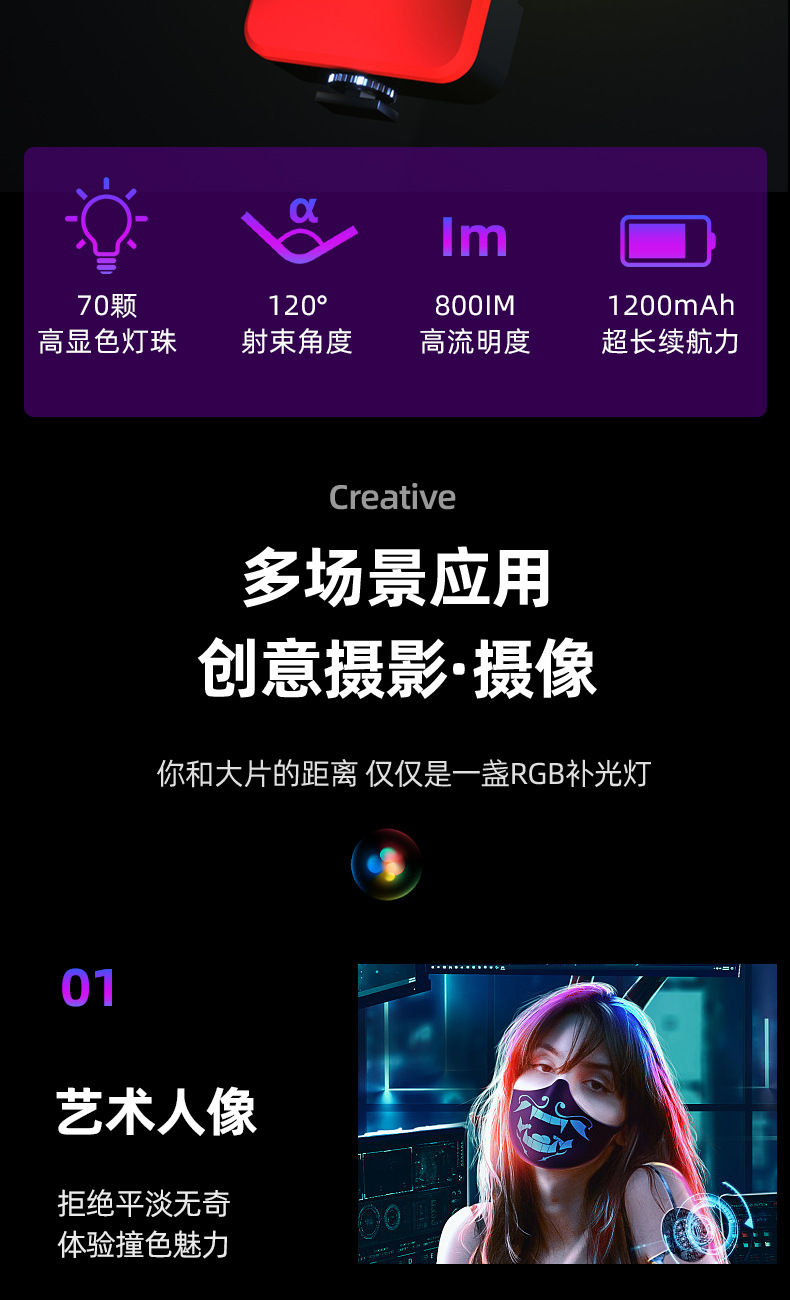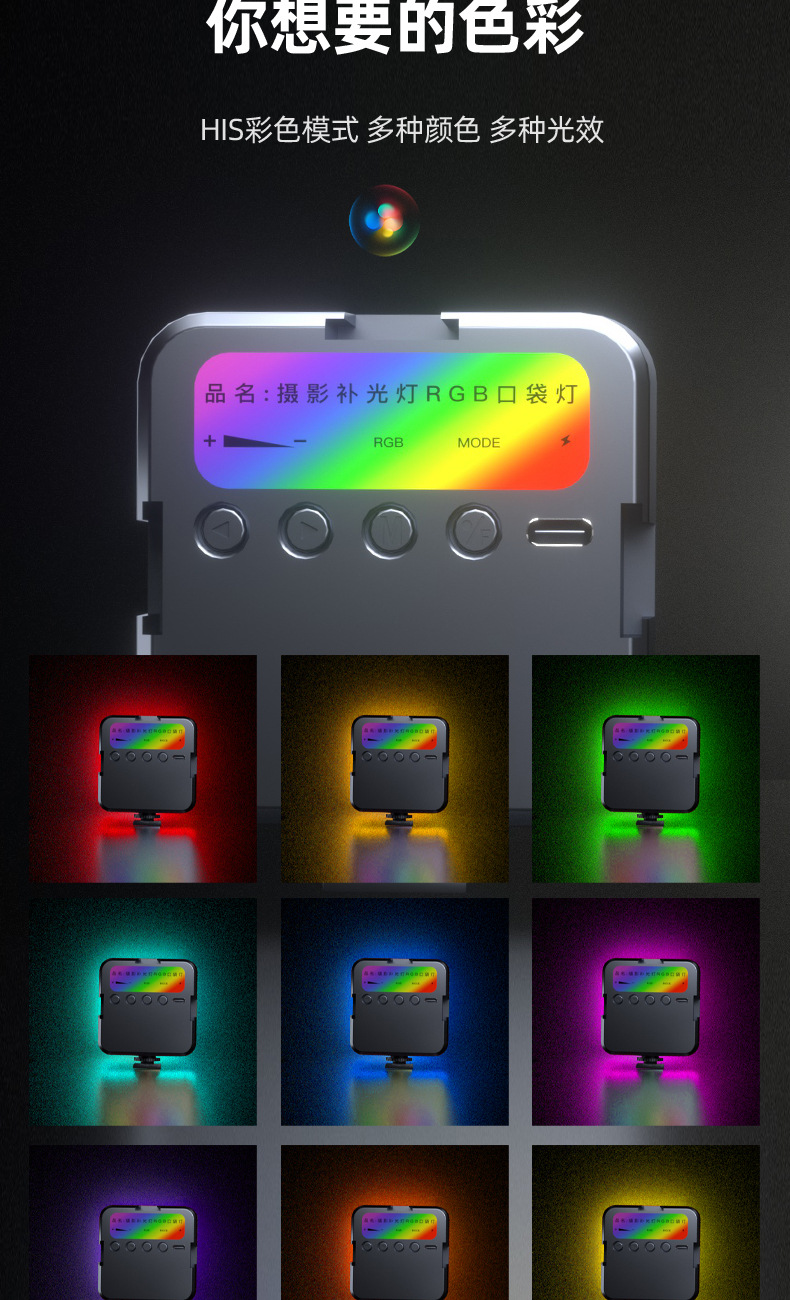 Led 채우기 빛 RGB 풀 컬러 핸드 카메라 사진 포켓 조명 휴대용 vlog 두부 빛 디밍 가능