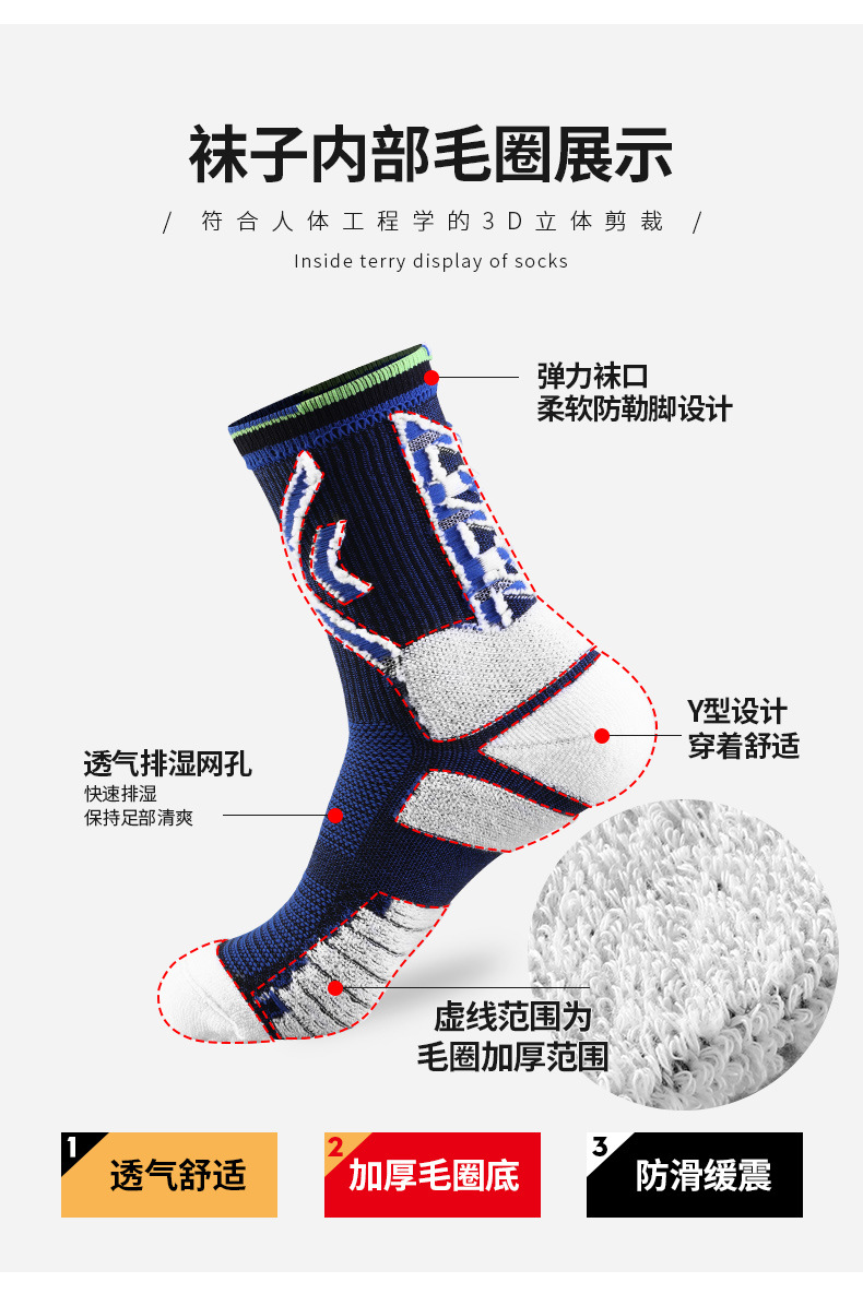 야외 스포츠 양말, 두꺼운 수건 바닥 등산 하이킹 양말, 땀 흡수성 긴 스포츠 러닝 양말, 제조업체 직접 승인스토어 가기