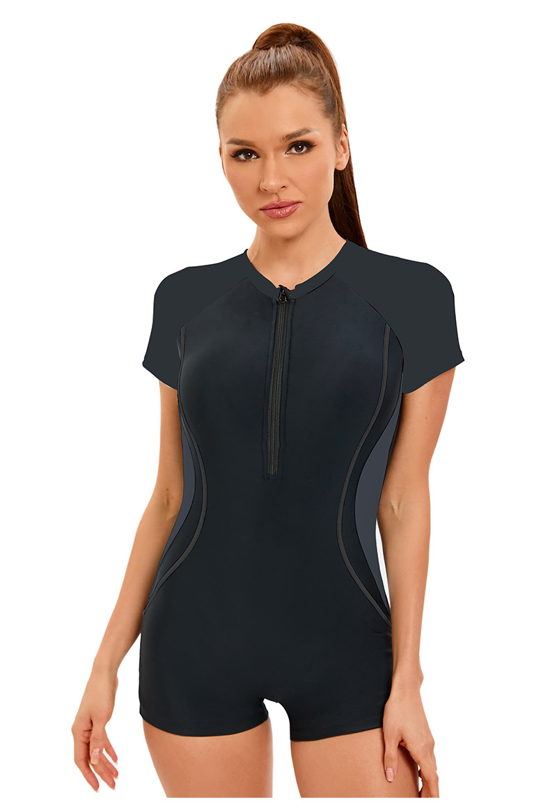 2024 유럽과 미국의 새로운 섹시 타이트 컬러 원피스 스포츠 수영복 여성 대외 무역 보수 복서 반팔 수영복