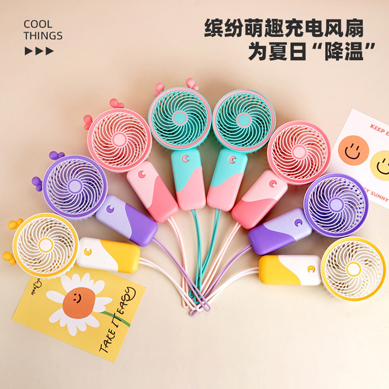 다채로운 사랑스러운 여름 충전 팬 여름 냉각 3 단 조정 USB 케이블 충전 휴대용 끈 전기 팬 공장스토어 가기