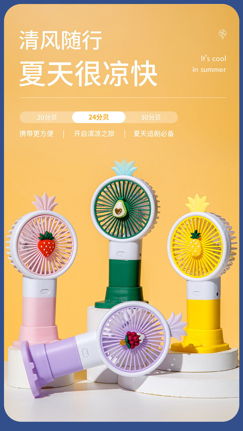 국경 간 대외 무역 뜨거운 판매 USB 충전 스탠드 과일 만화 작은 팬 휴대용 데스크탑 전기 팬 공장스토어 가기