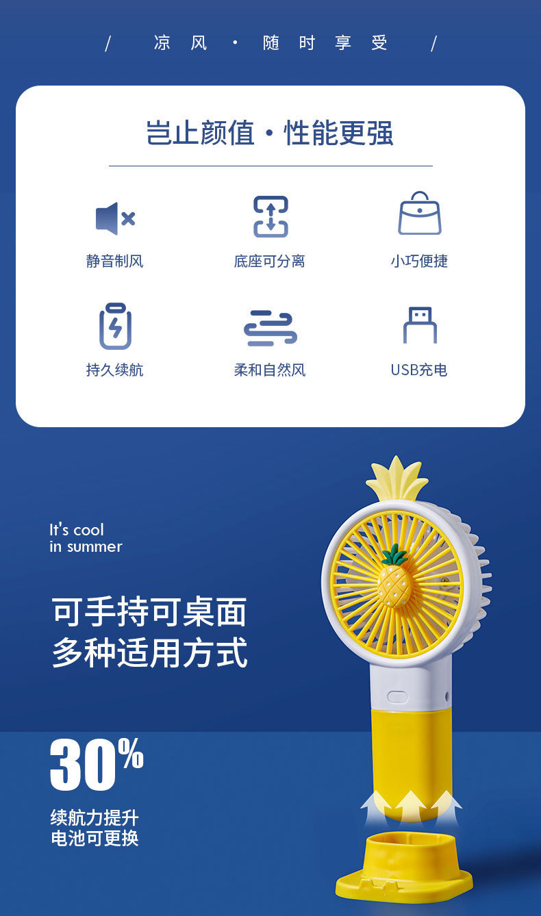 국경 간 대외 무역 뜨거운 판매 USB 충전 스탠드 과일 만화 작은 팬 휴대용 데스크탑 전기 팬 공장