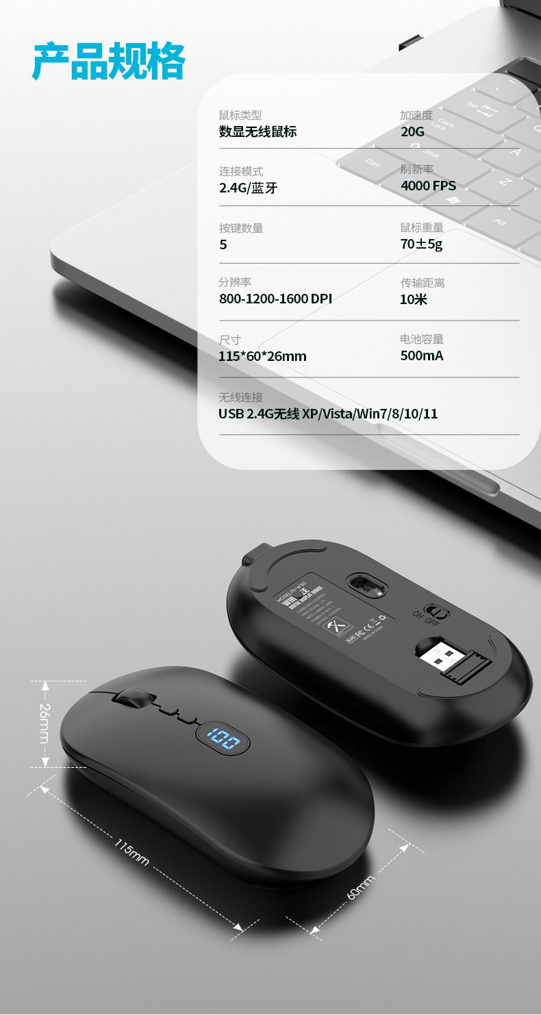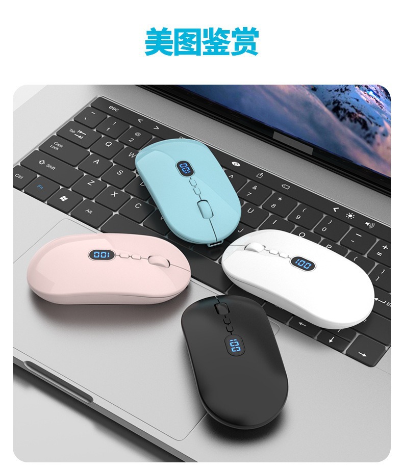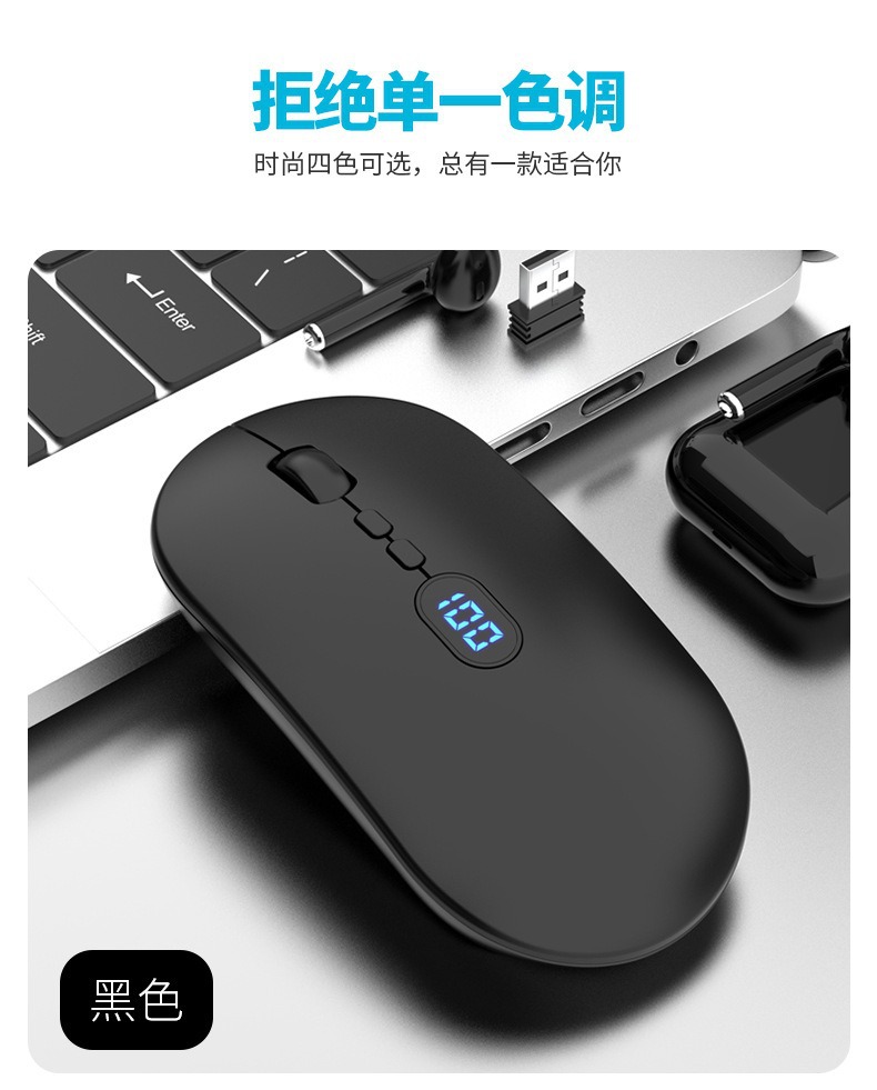 국경을 넘는 신형 배터리 잔량 표시 개인 맞춤형 USB 무소음 무선 블루투스 마우스, 긴 배터리 수명 충전식 무선 마우스