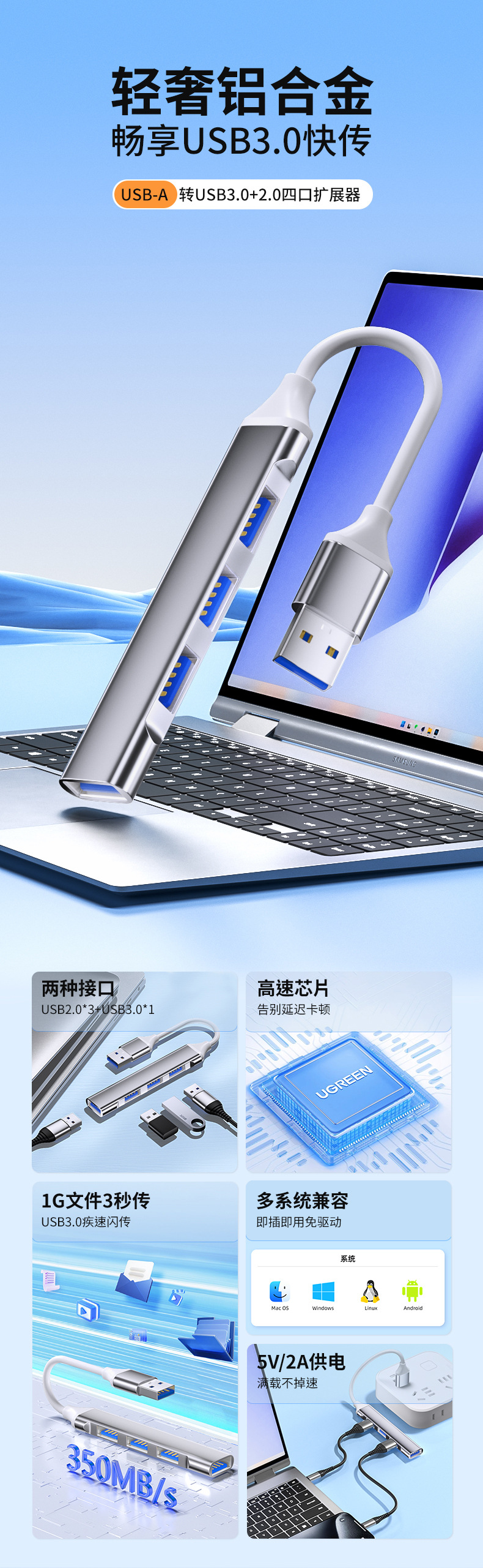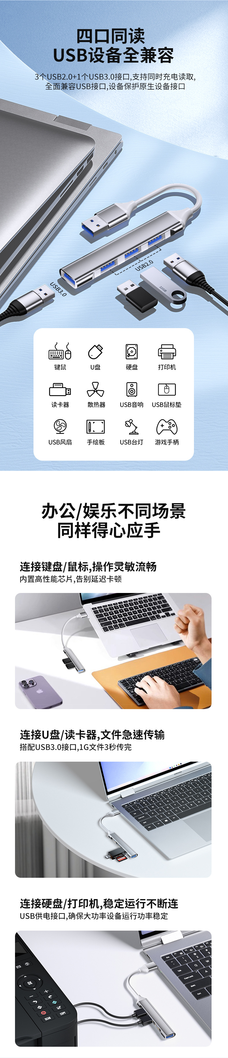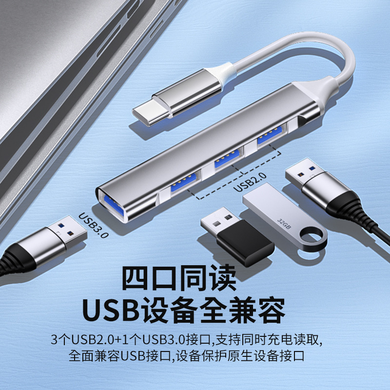 국경 간 USB 익스텐더 HUB 확장 독 Typec3.0 4 대 1 컴퓨터 다기능 스플리터 컨버터스토어 가기