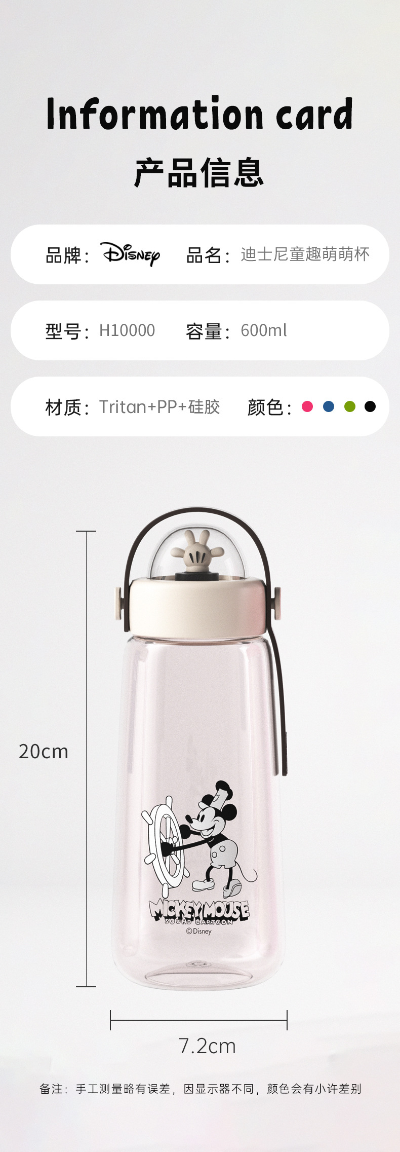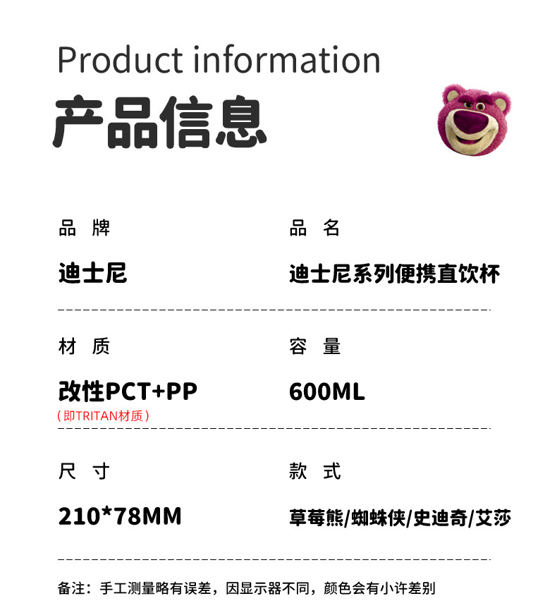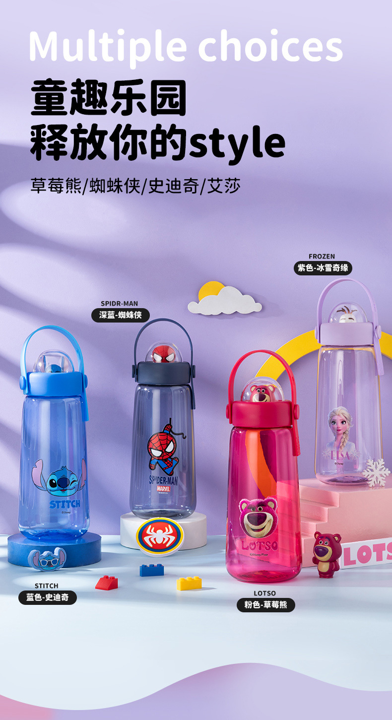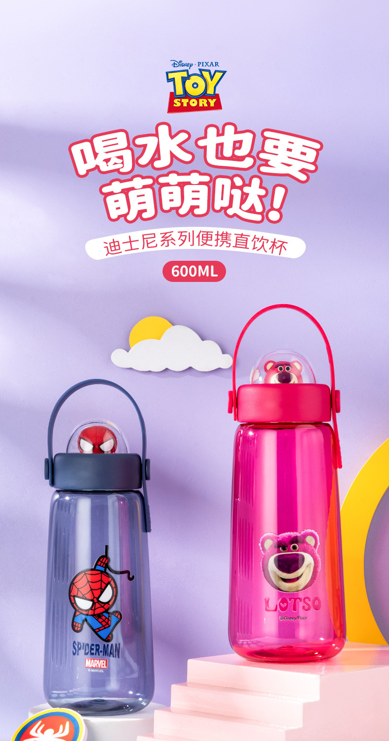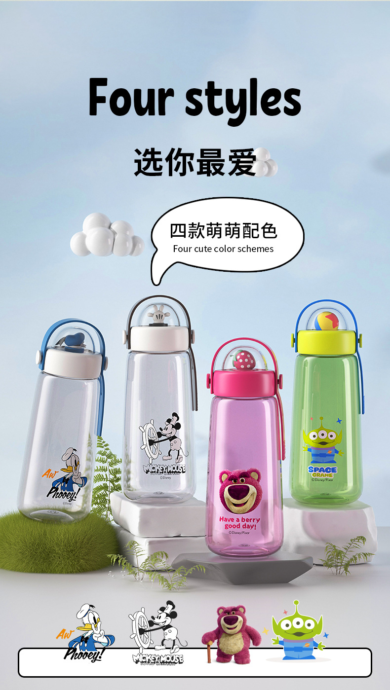 디즈니 어린이 물 컵 트리탄 높은 색상 가치 대용량 학생 스포츠 물병 귀여운 여름 플라스틱 컵