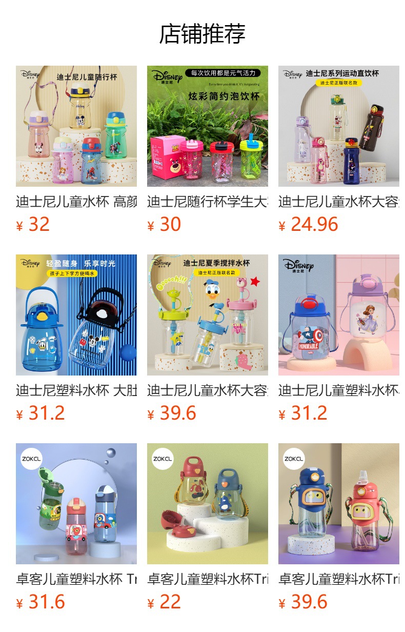 디즈니 어린이 물 컵 트리탄 높은 색상 가치 대용량 학생 스포츠 물병 귀여운 여름 플라스틱 컵스토어 가기