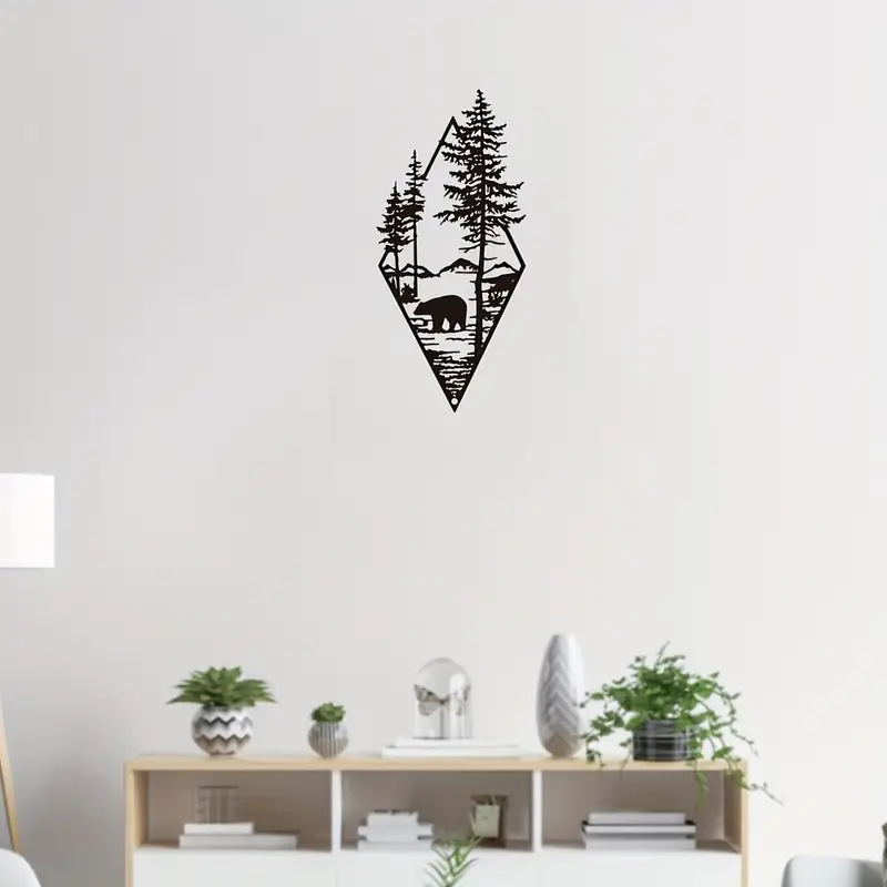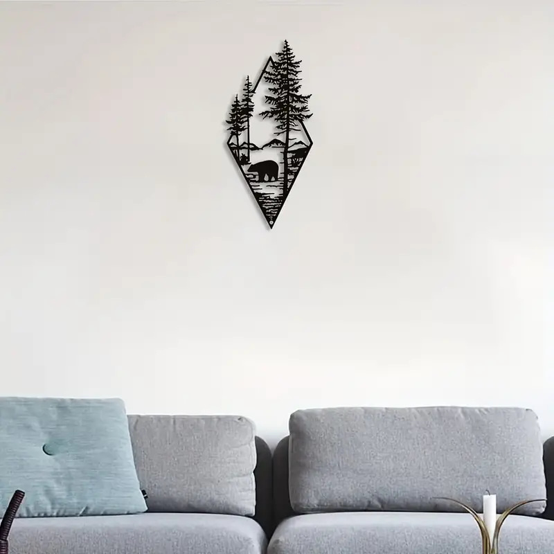 국경 곰 벽 예술, 풍경과 곰 금속 벽 예술 장식 홈 장식, 금속 벽 예술