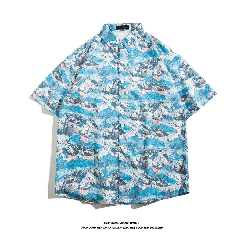 하와이 비치 셔츠 남자 반팔 여름 산야 해변 휴가 남자 타이 스타일 레트로 홍콩 스타일 꽃 셔츠스토어 가기