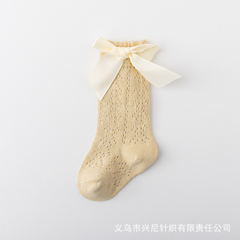 2024 아기 양말 스페인 아기 큰 활 원피스 소녀 학생 공주 양말 얇은 긴 튜브 느슨한 양말
