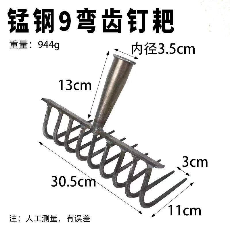 농업 토지 회전 느슨한 강철 갈퀴 야채 정원 위드를위한 다기능 9 개 큰 네일 레이크 마무리 9 개 이빨 벤드 레이크