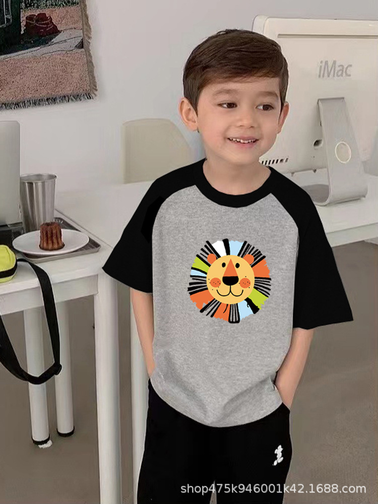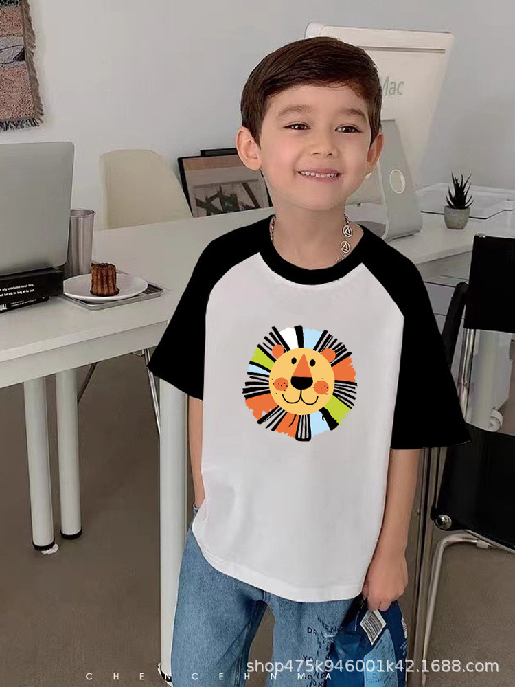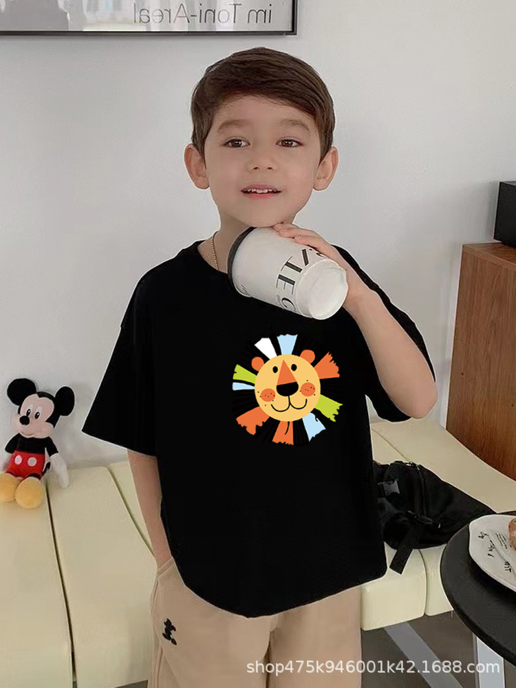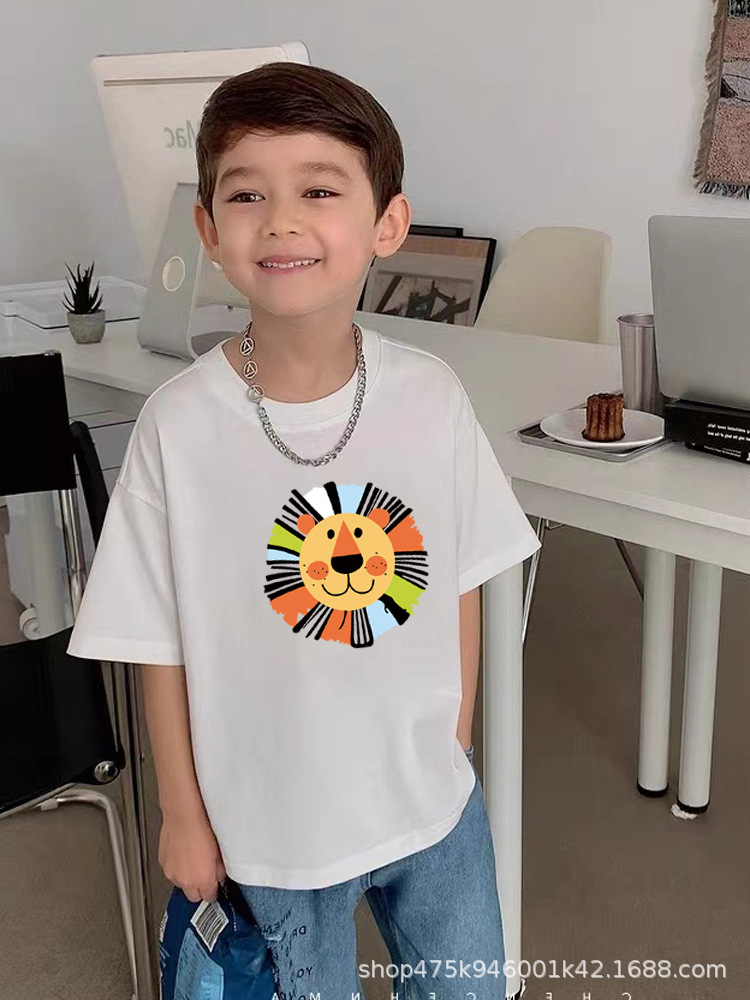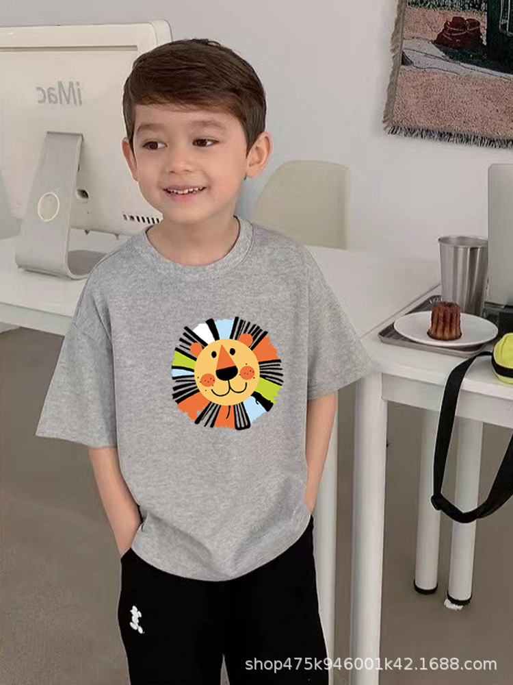 남자와 여자를위한 도매 국경 간 어린이 잘 생긴 면화 반팔 최고 여름 의류 얇은 외국 스타일의 둥근 목 티셔츠 느슨한 피팅