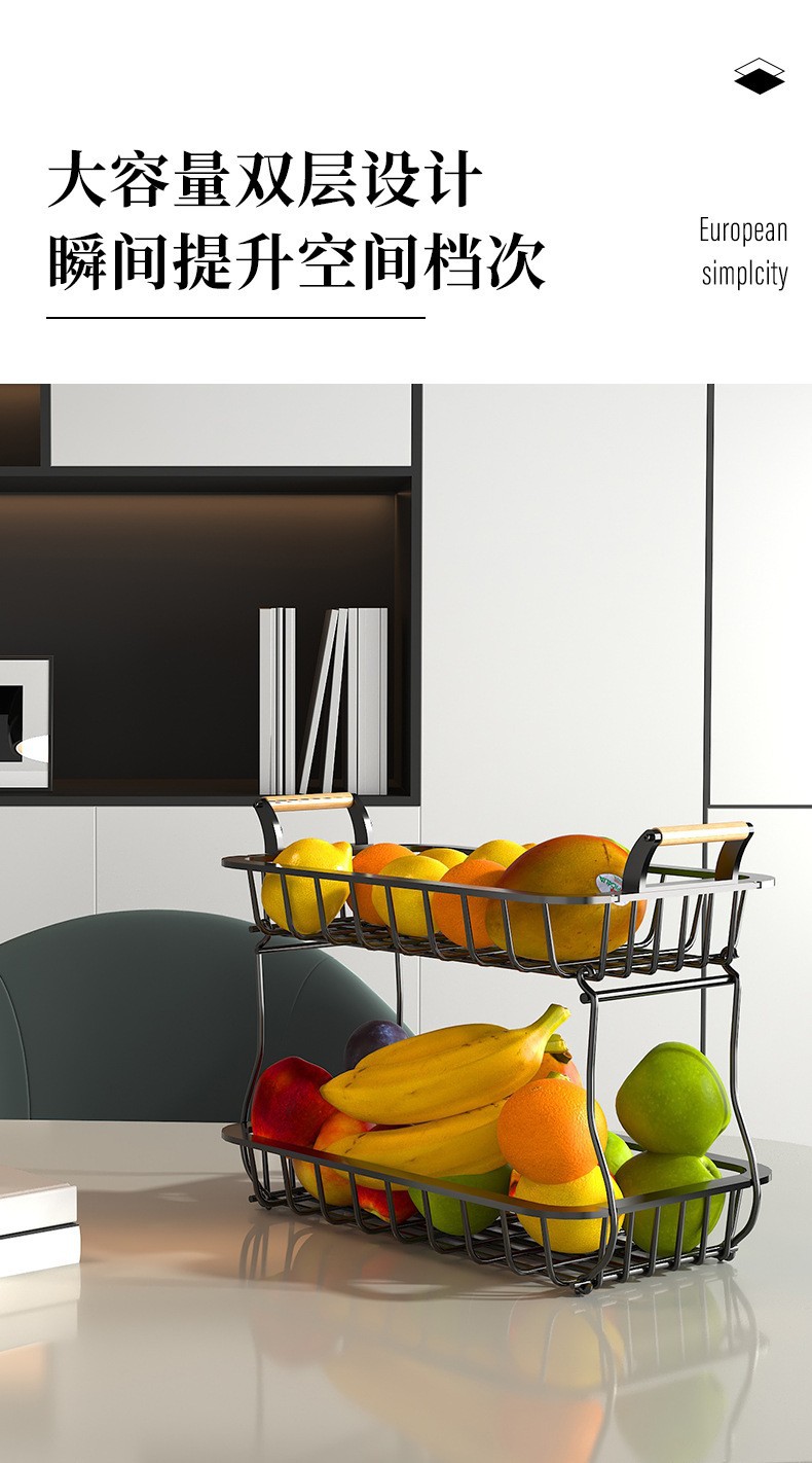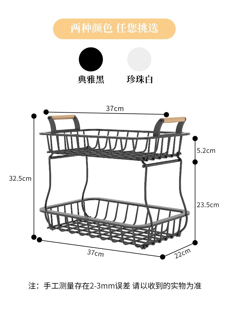 나무 손잡이가있는 Amazon 크리 에이 티브 과일 바구니 랙 주방 보관 랙 이동식 조미료 랙 더블 레이어 바구니