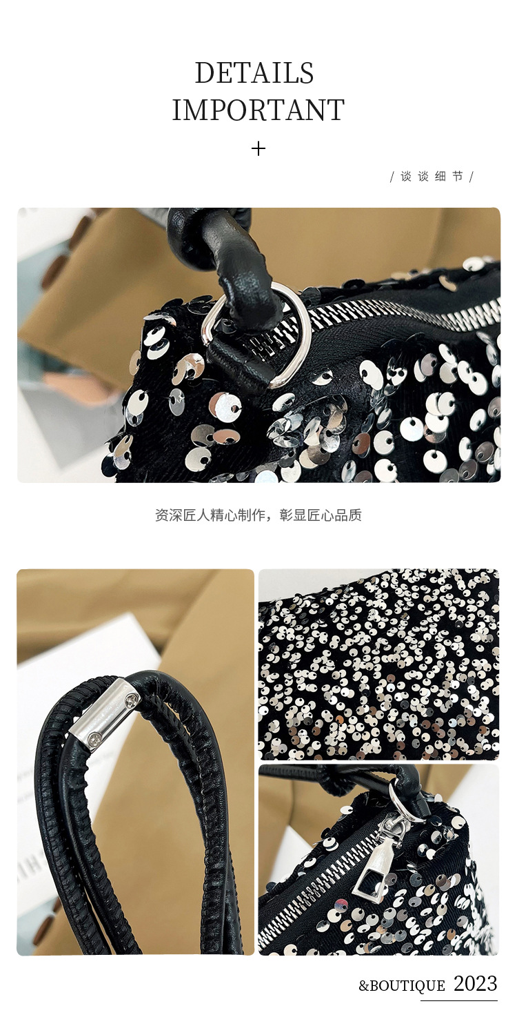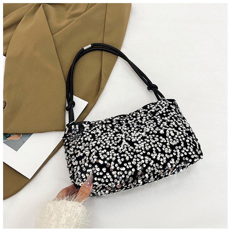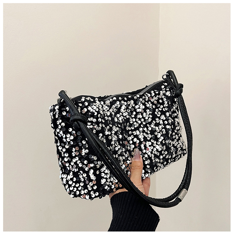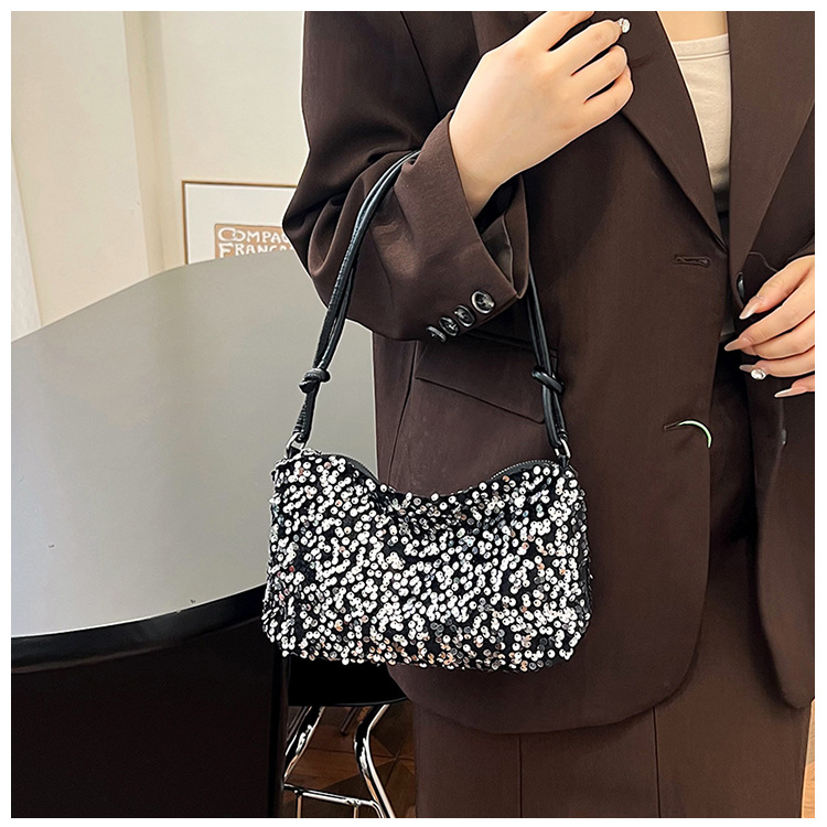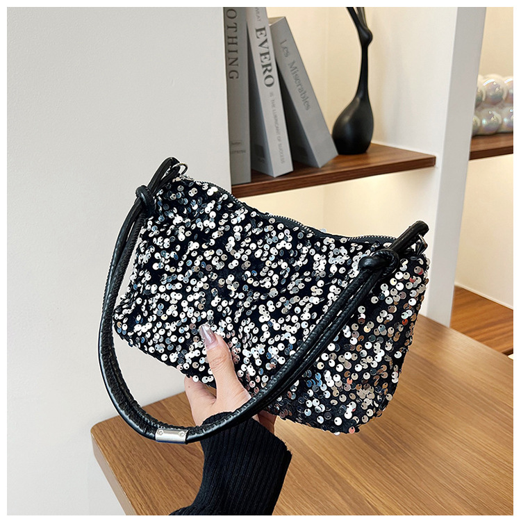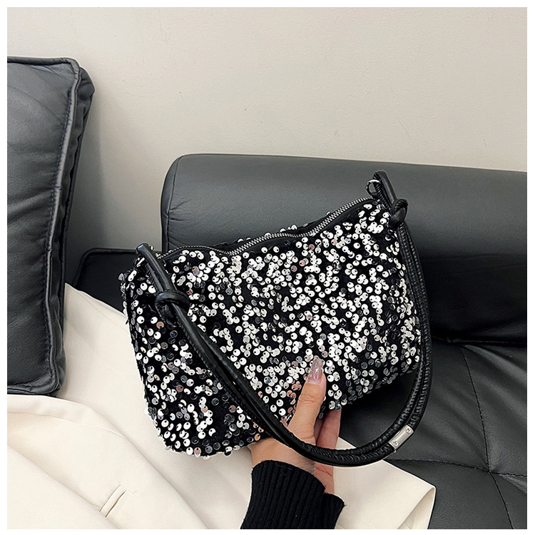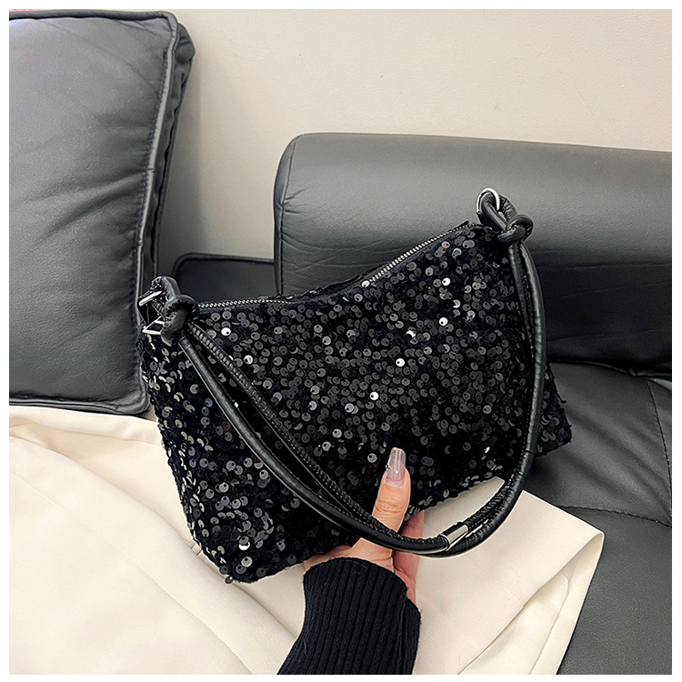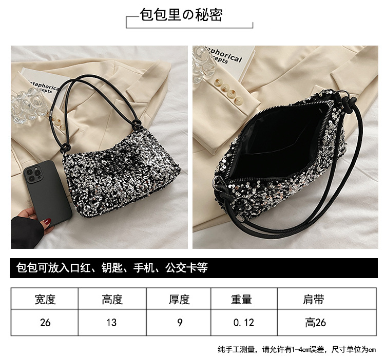 2023 여름 신상 퀄리티 좋은 캐주얼하고 세련된 스팽글 숄더백, 개성있는 인스 스타일 심플 크로스백, 대용량 바게트백스토어 가기