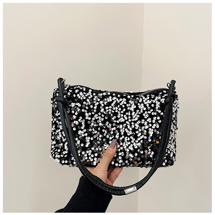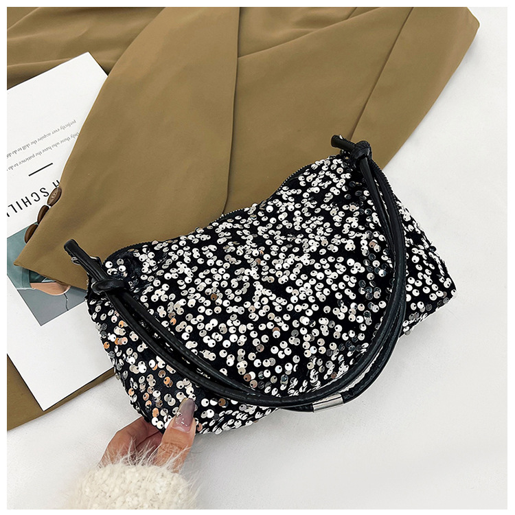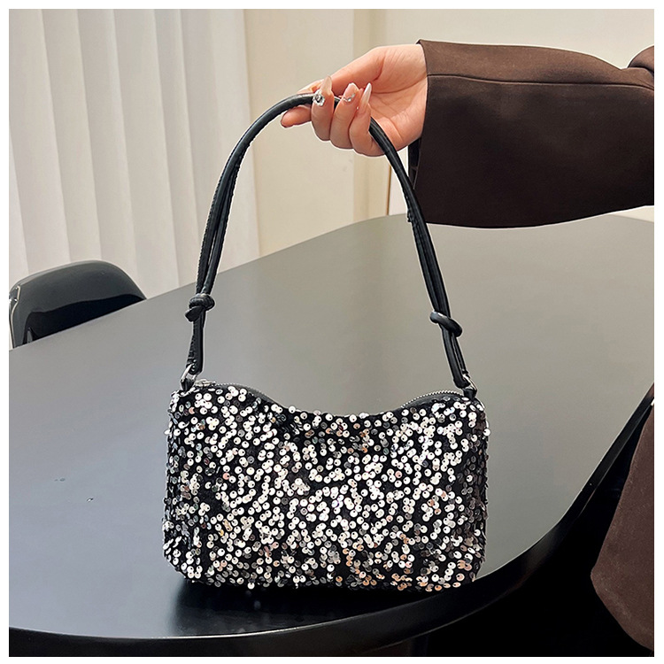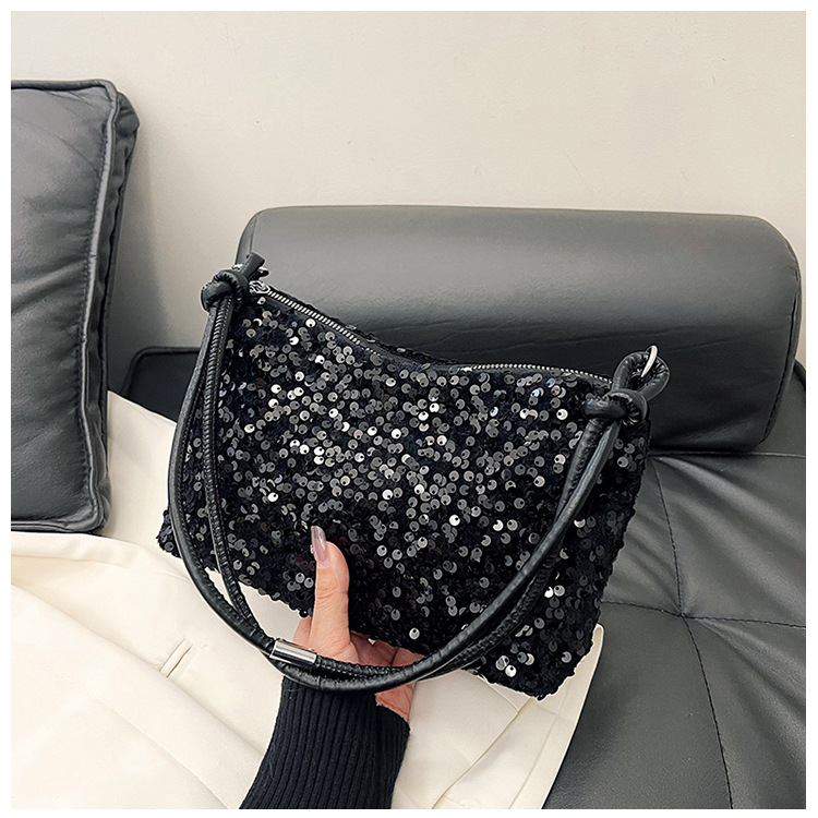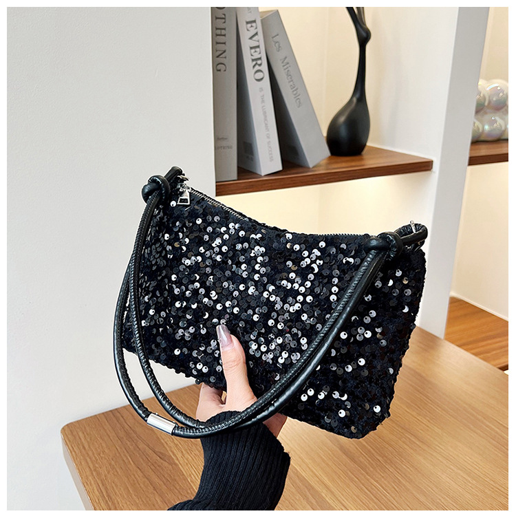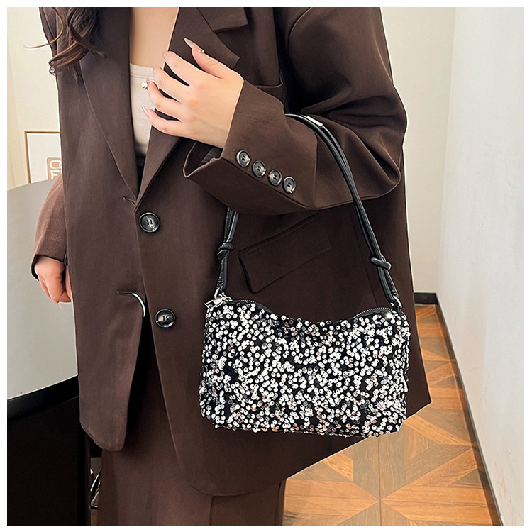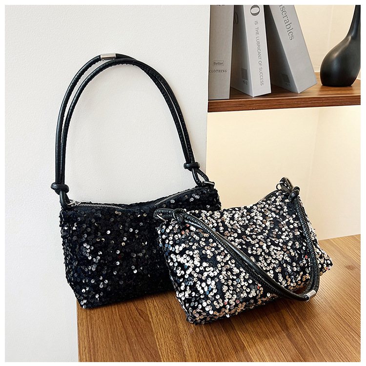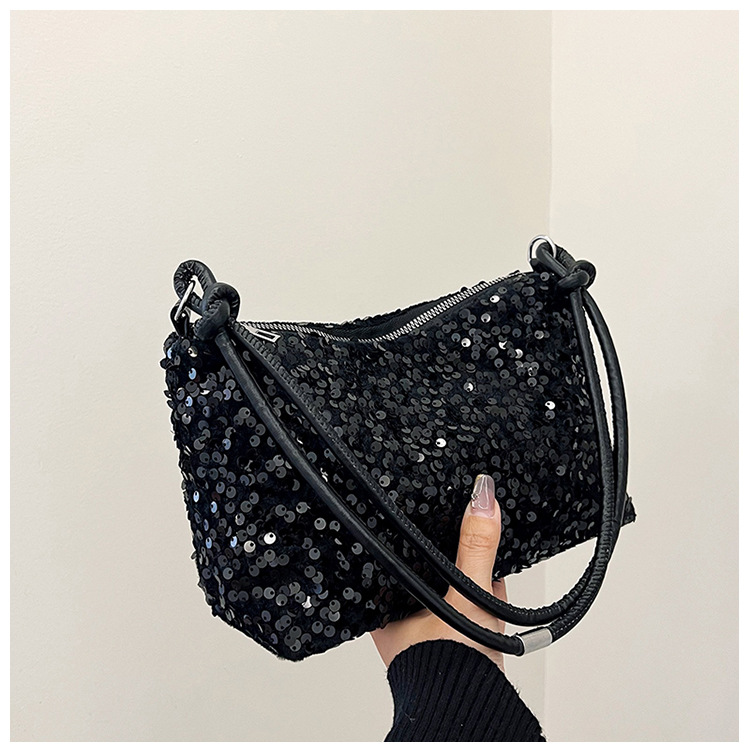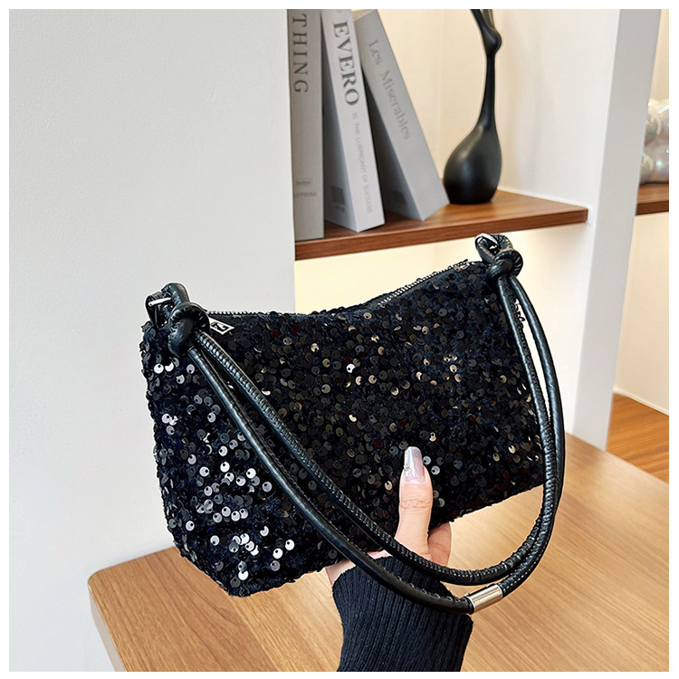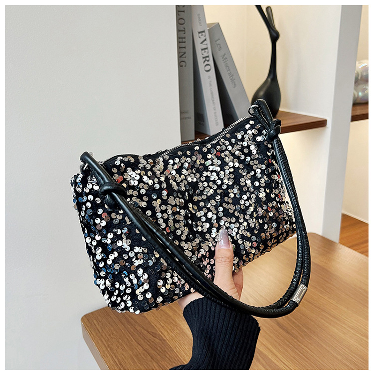 2023 여름 신상 퀄리티 좋은 캐주얼하고 세련된 스팽글 숄더백, 개성있는 인스 스타일 심플 크로스백, 대용량 바게트백스토어 가기