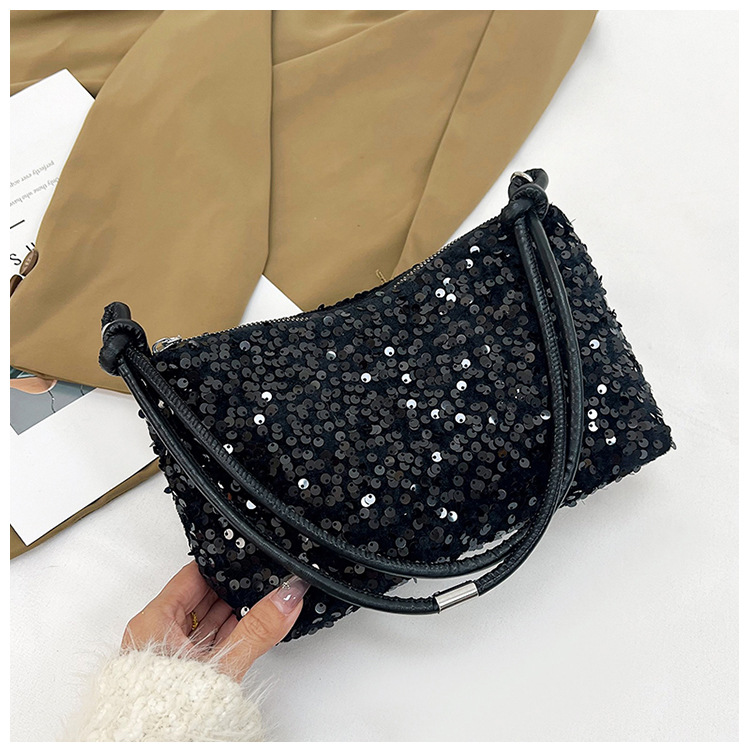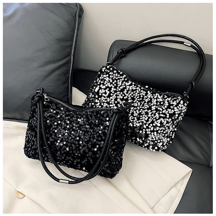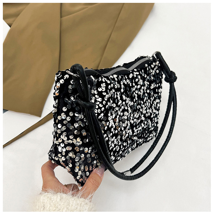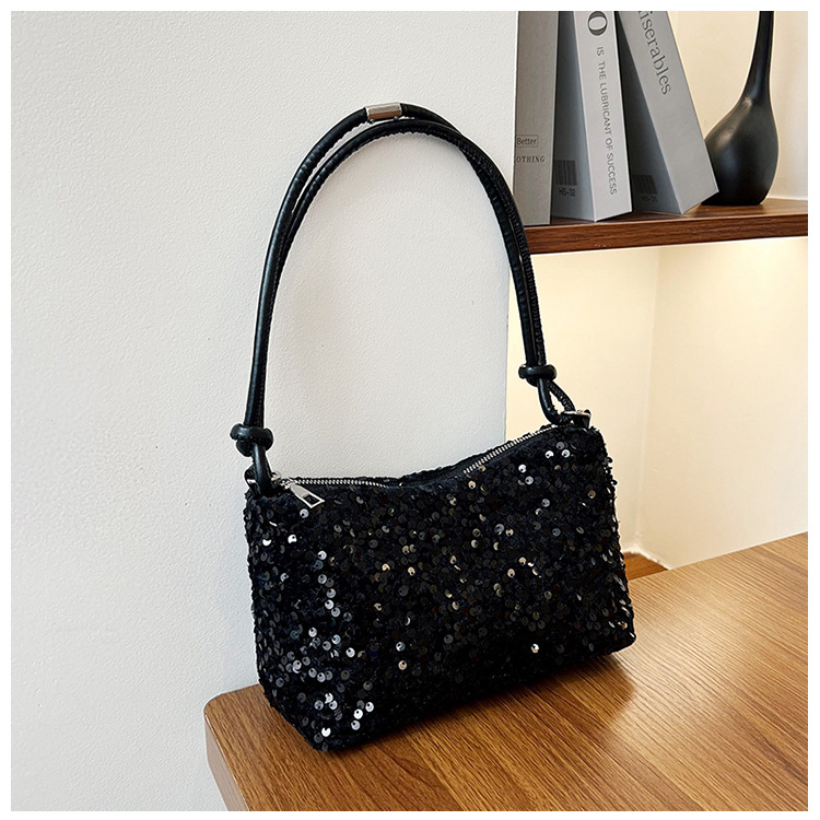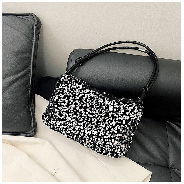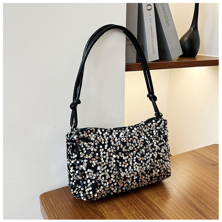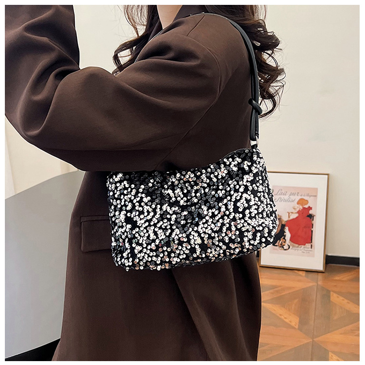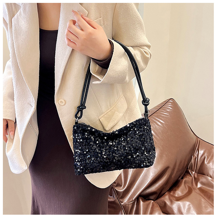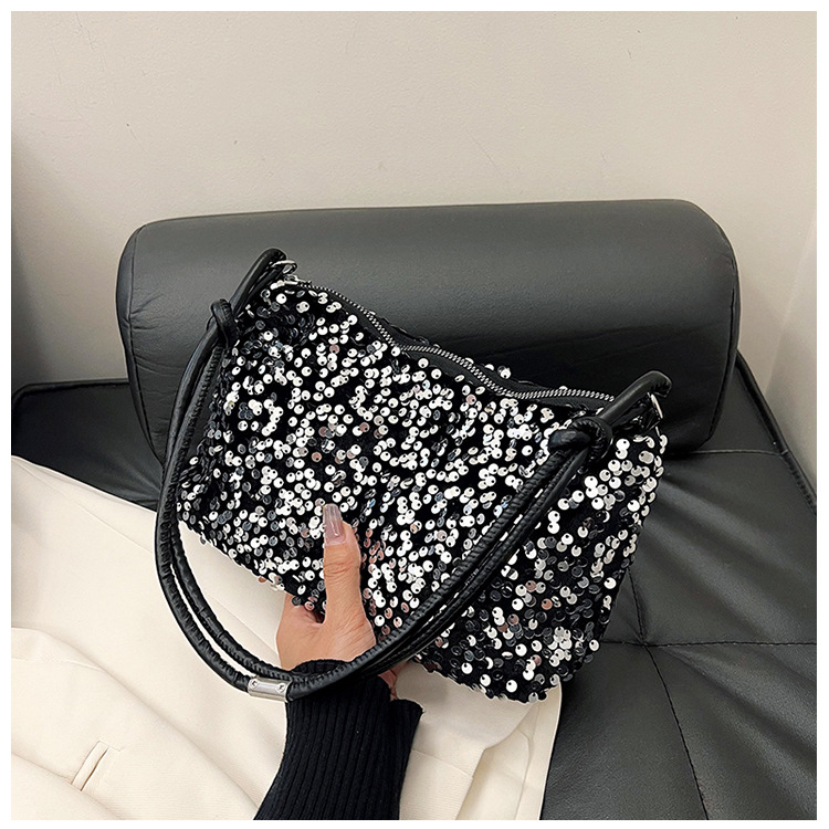 2023 여름 신상 퀄리티 좋은 캐주얼하고 세련된 스팽글 숄더백, 개성있는 인스 스타일 심플 크로스백, 대용량 바게트백스토어 가기