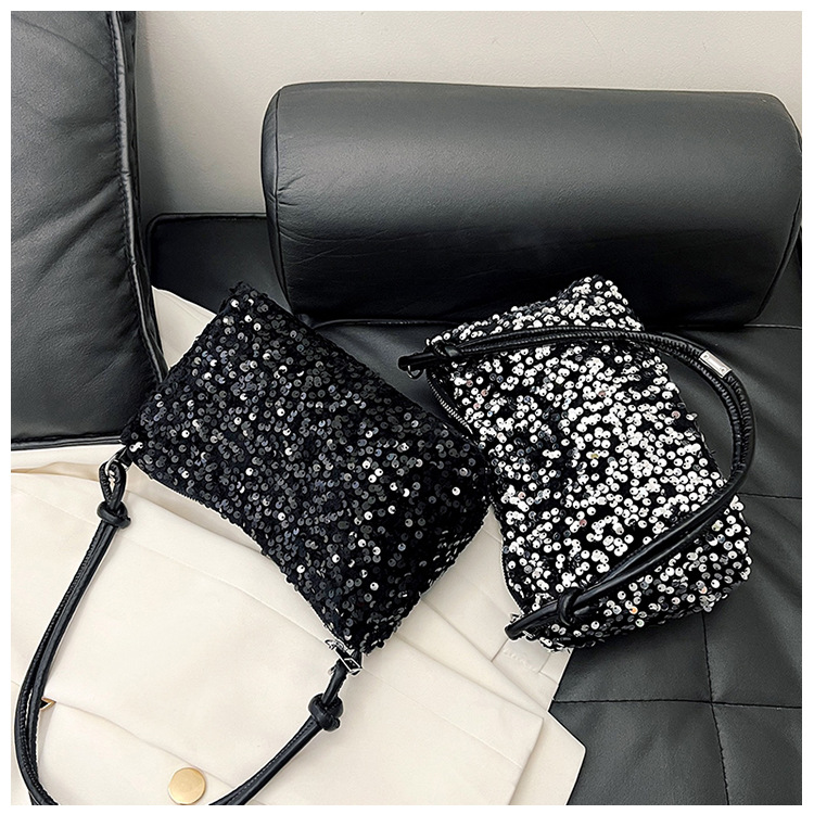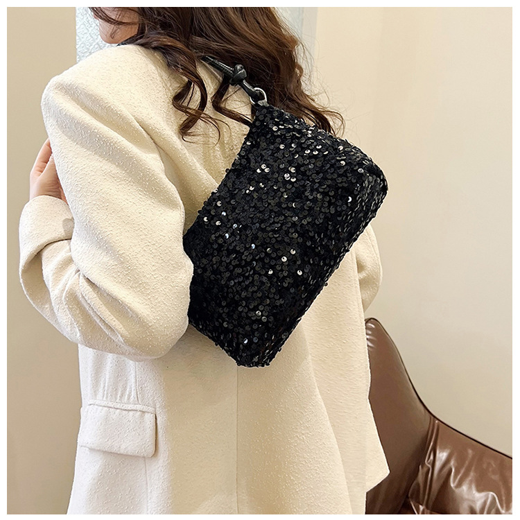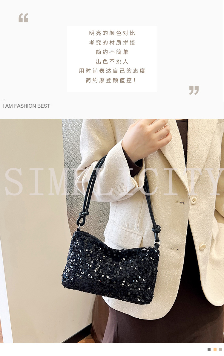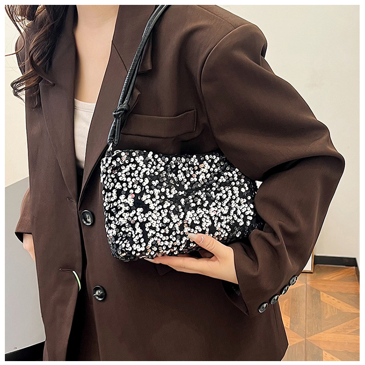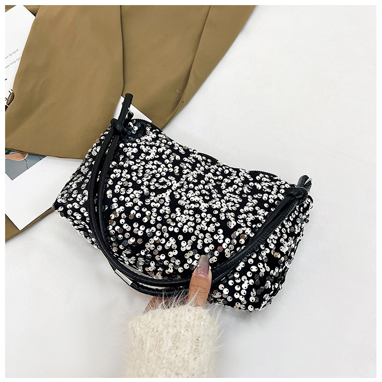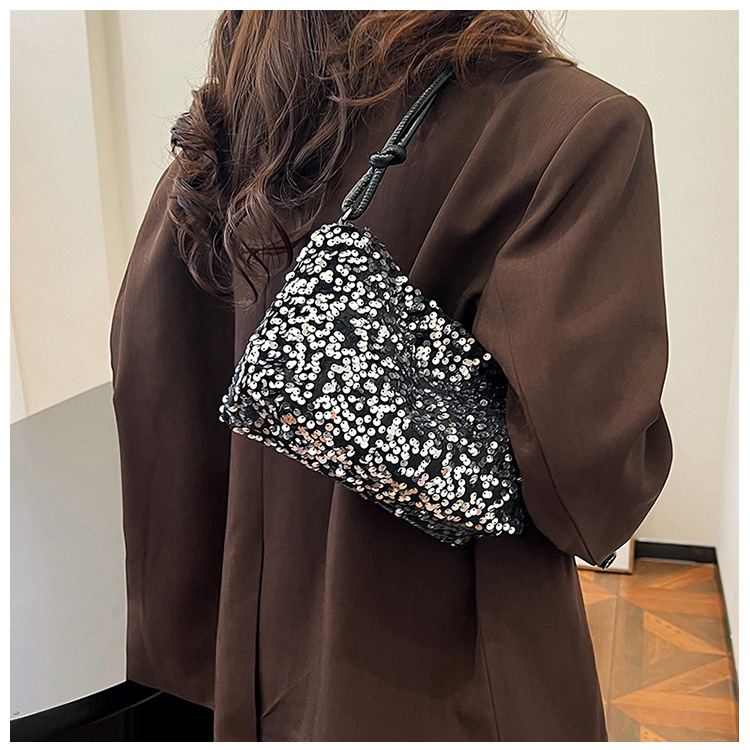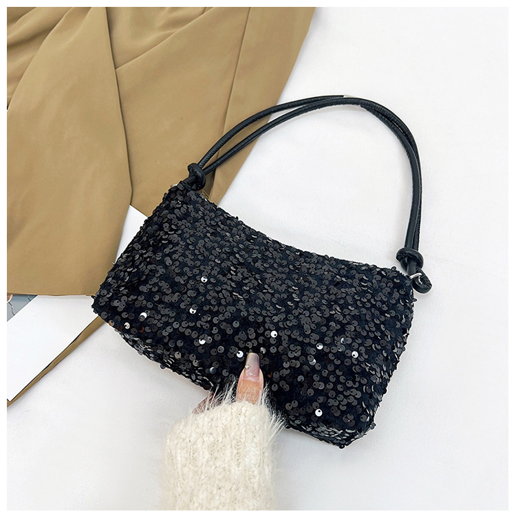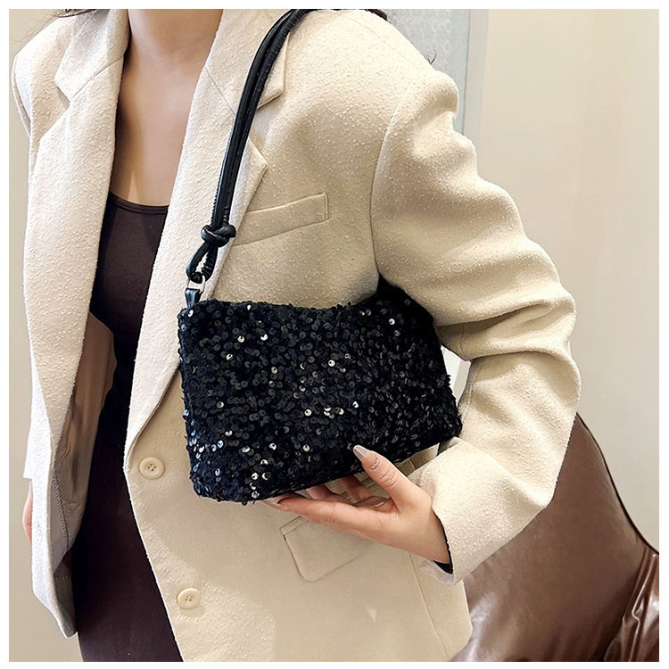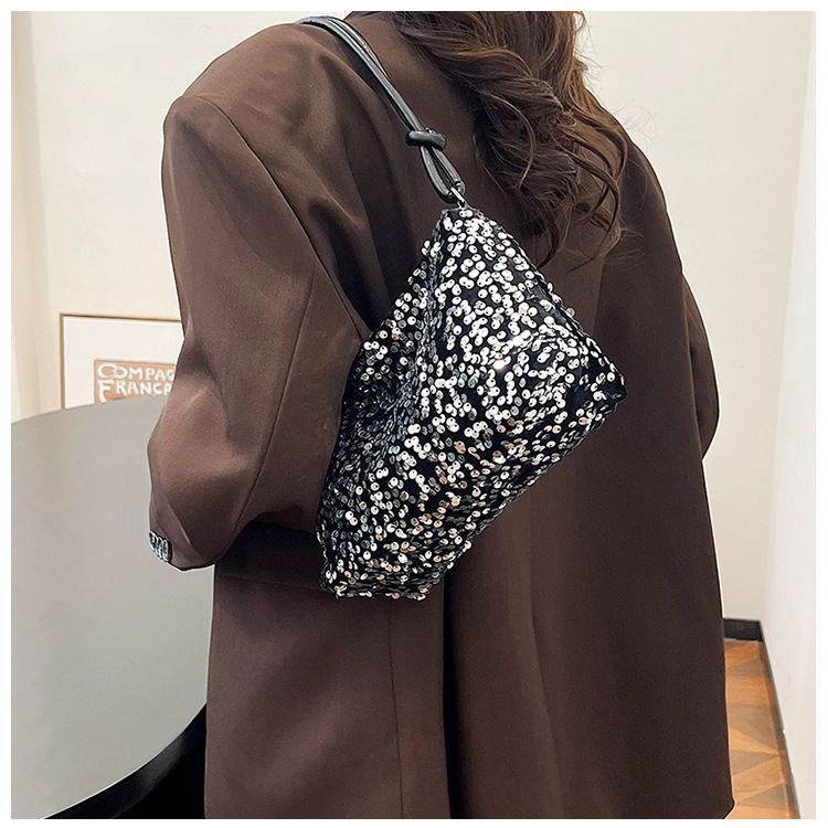 2023 여름 신상 퀄리티 좋은 캐주얼하고 세련된 스팽글 숄더백, 개성있는 인스 스타일 심플 크로스백, 대용량 바게트백스토어 가기