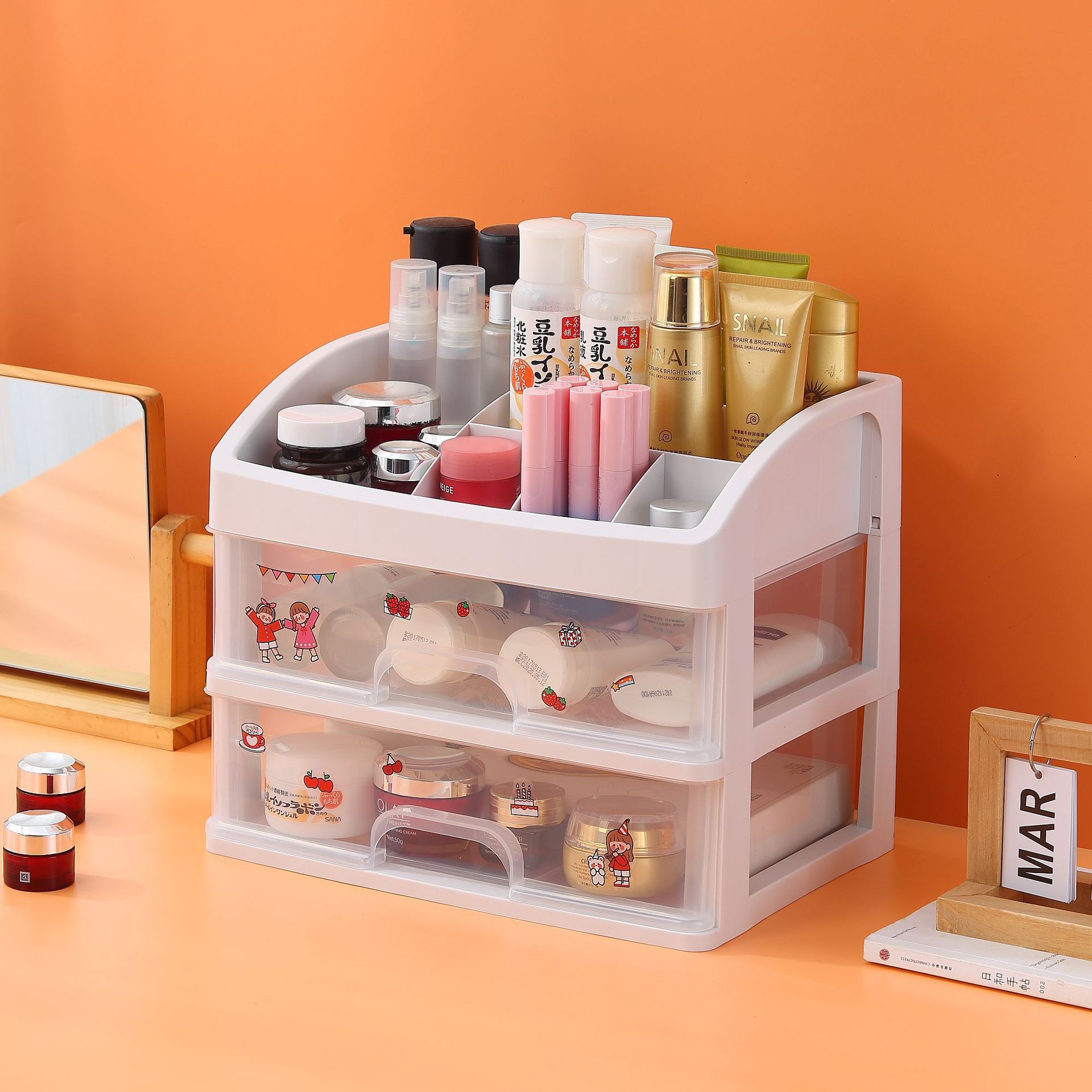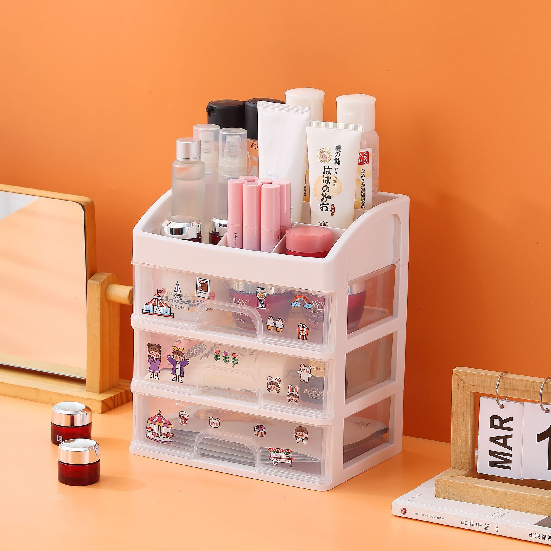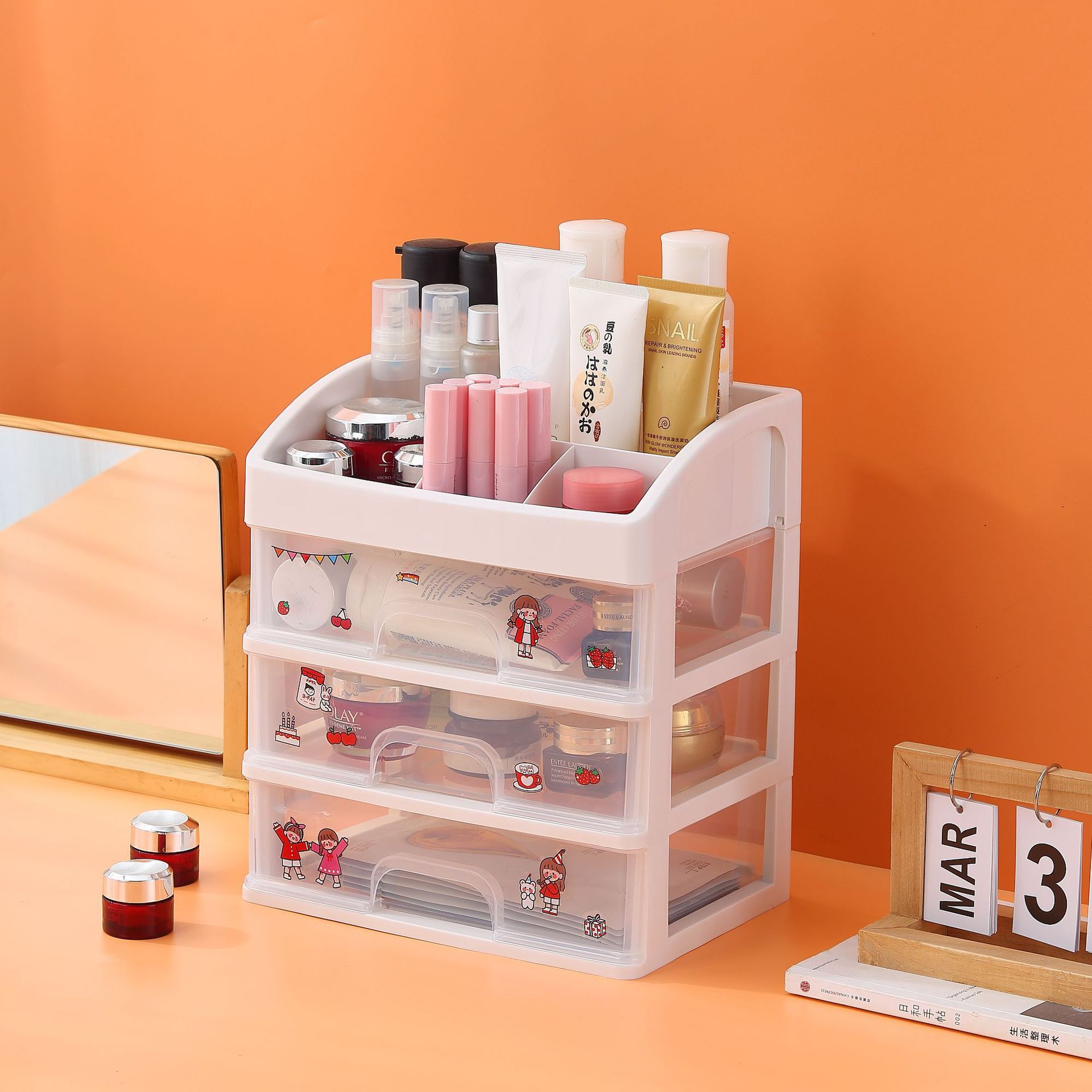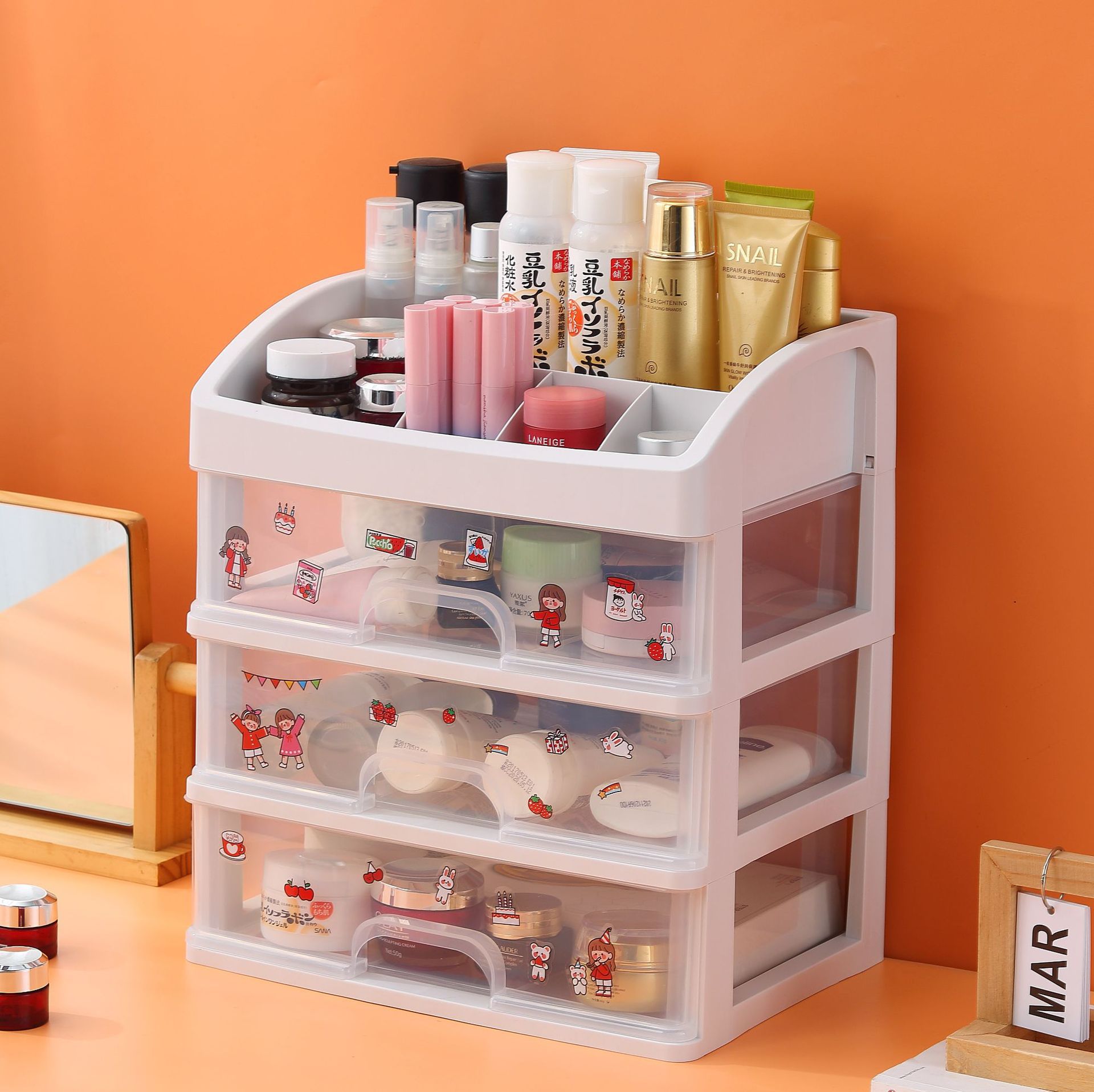 데스크탑 저장 상자 서랍 유형 사무실 책상 학생 문구 정렬 인공물 대용량 잡화 저장 랙