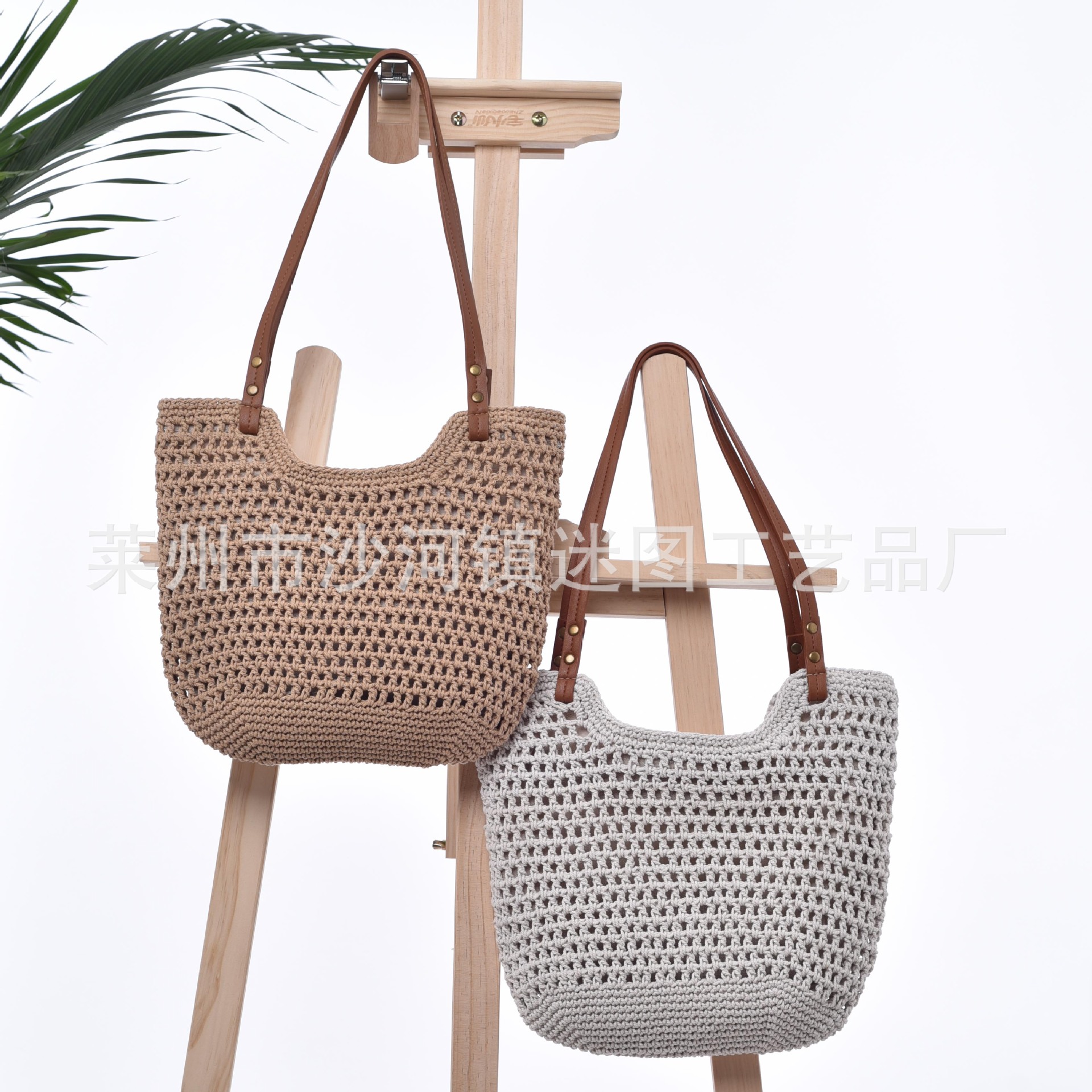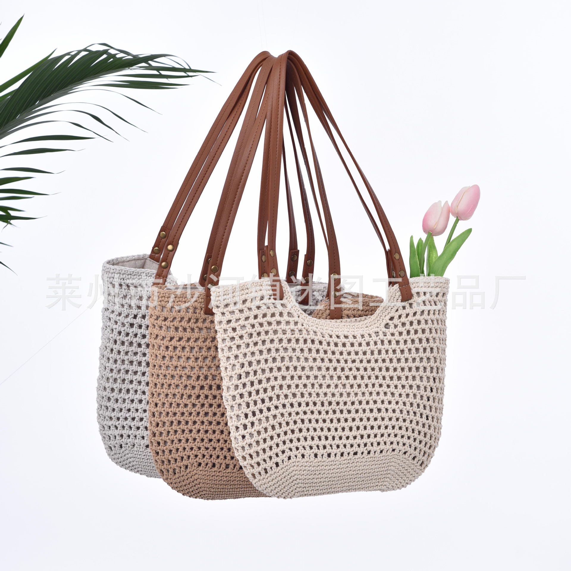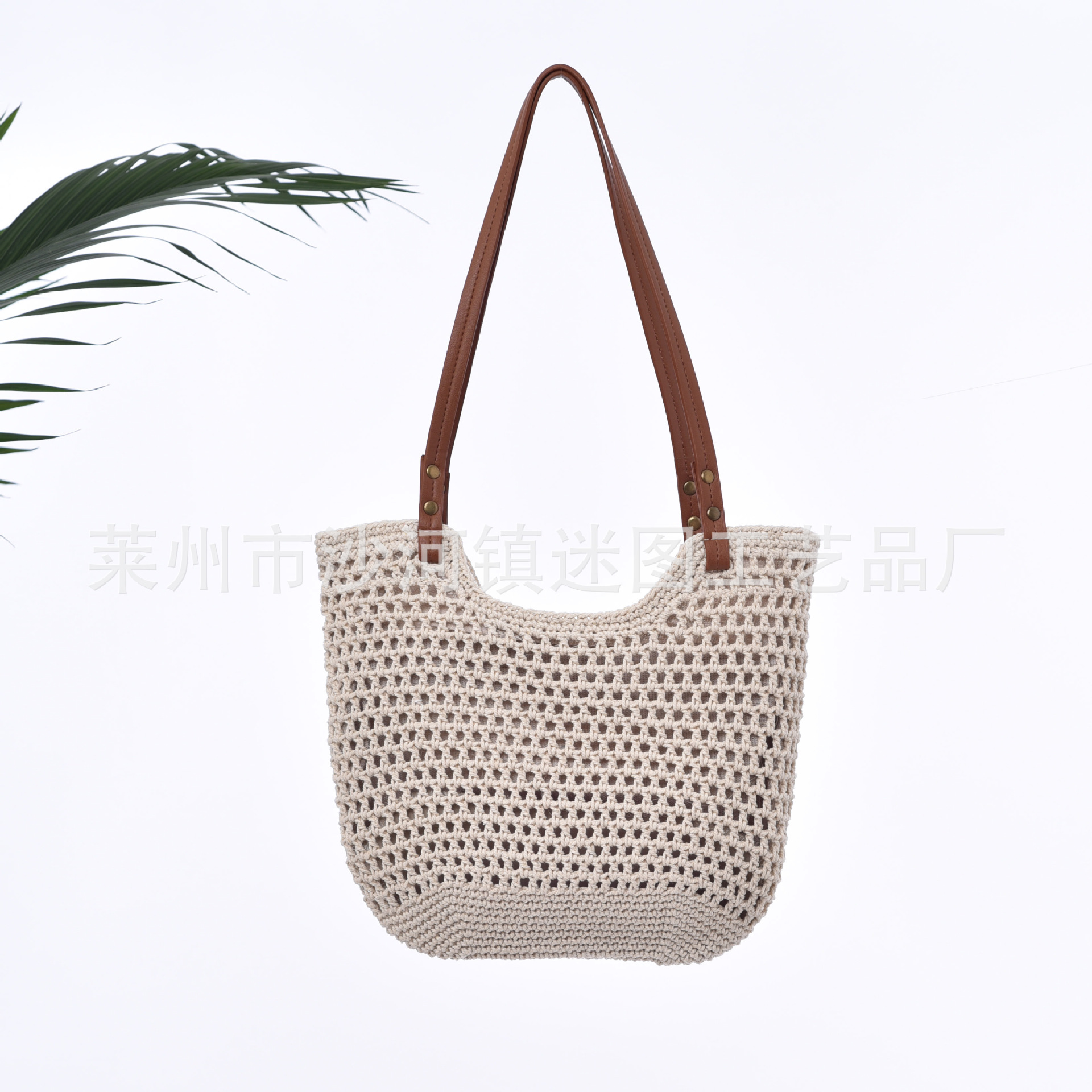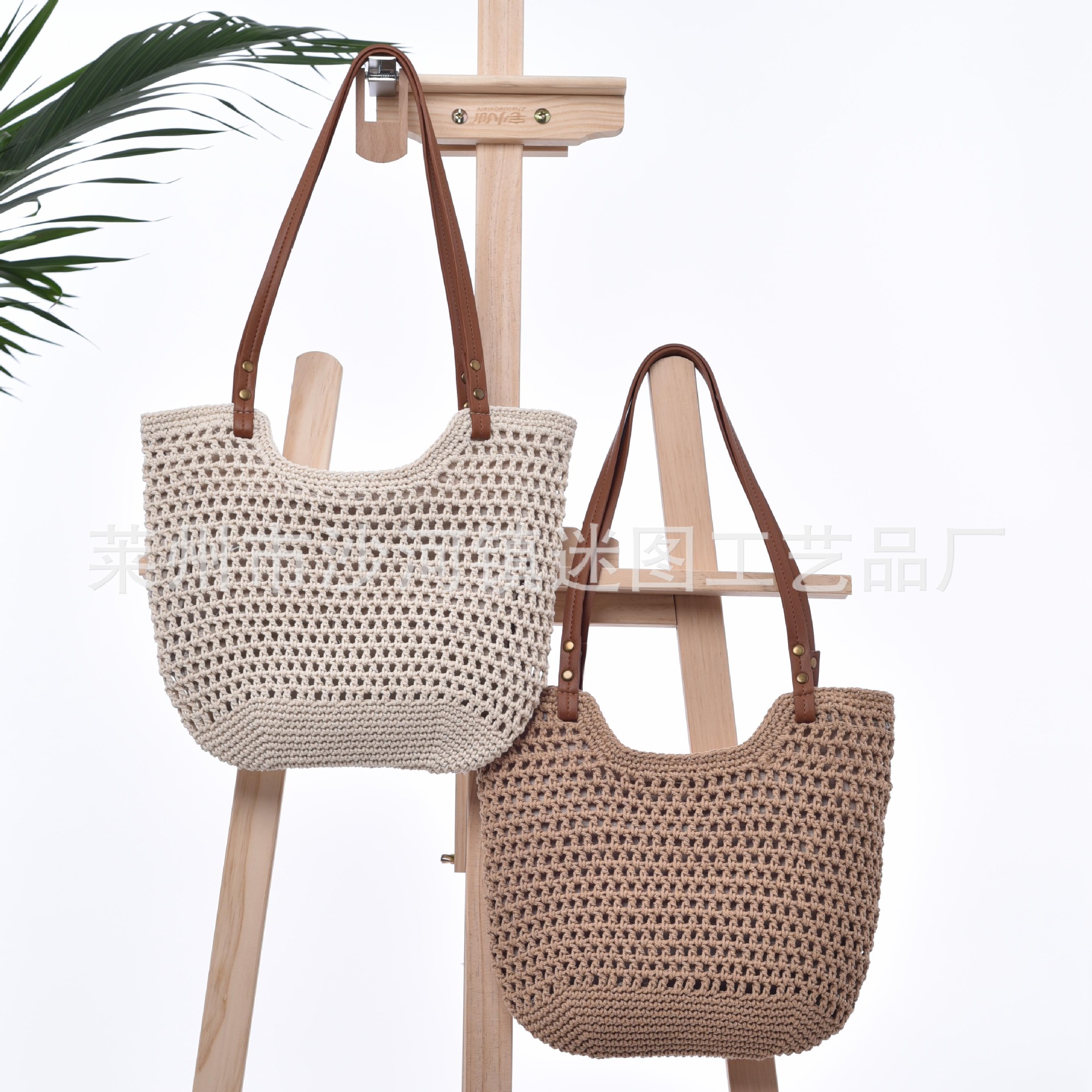 작은 손으로 짠 크로 셰 뜨개질 코튼 곡선 중공 그물 레드 여성 캐주얼 숄더백 공장 스팟 도매