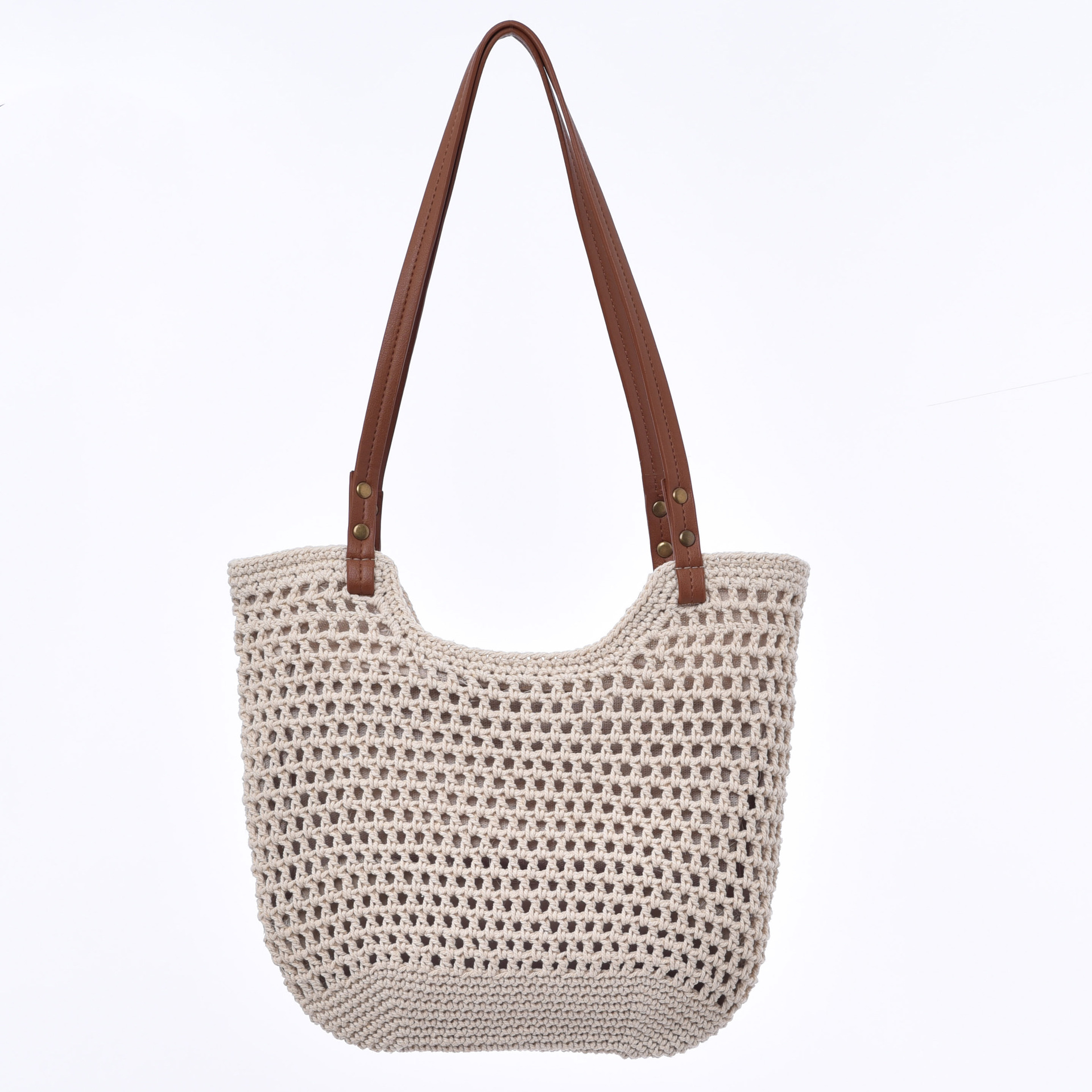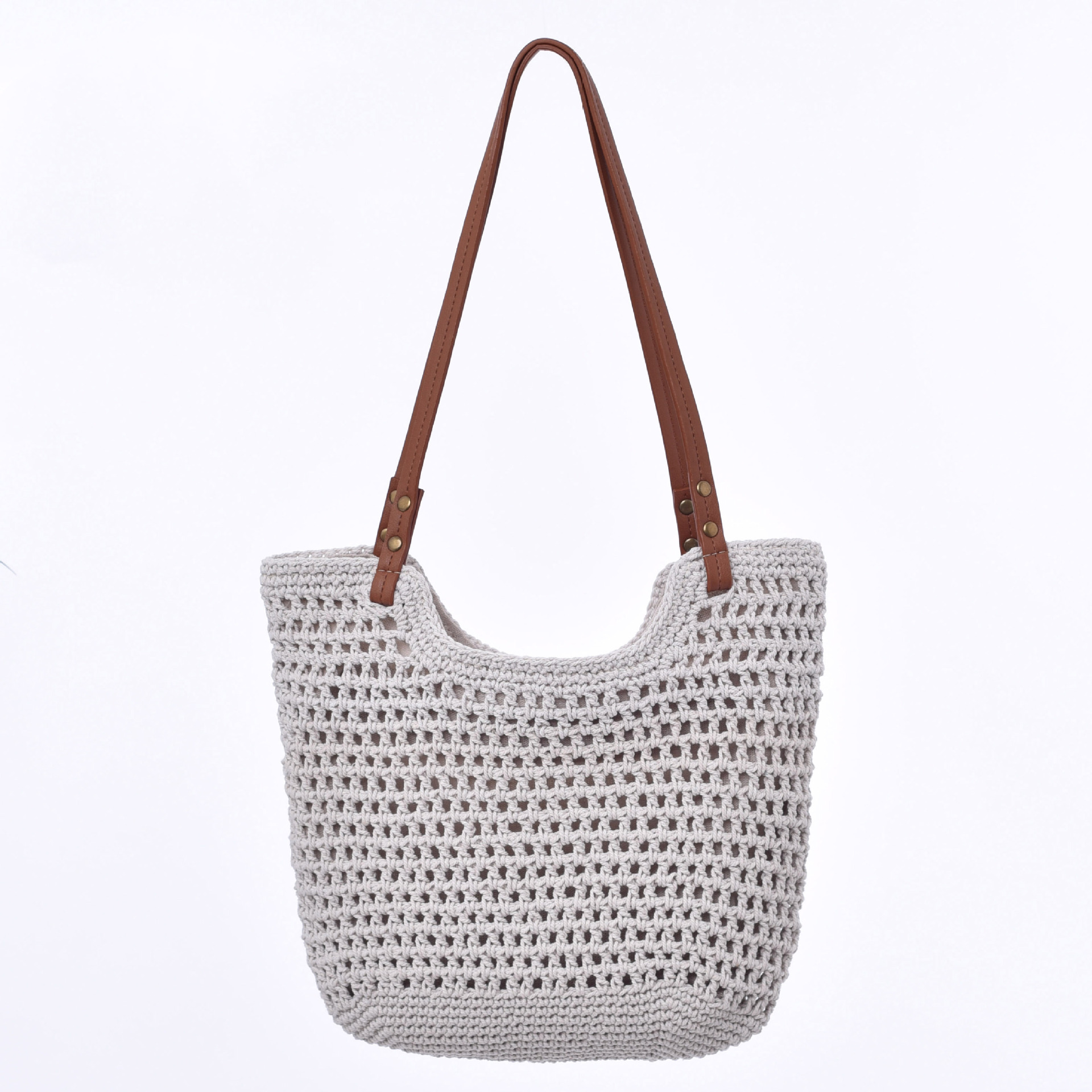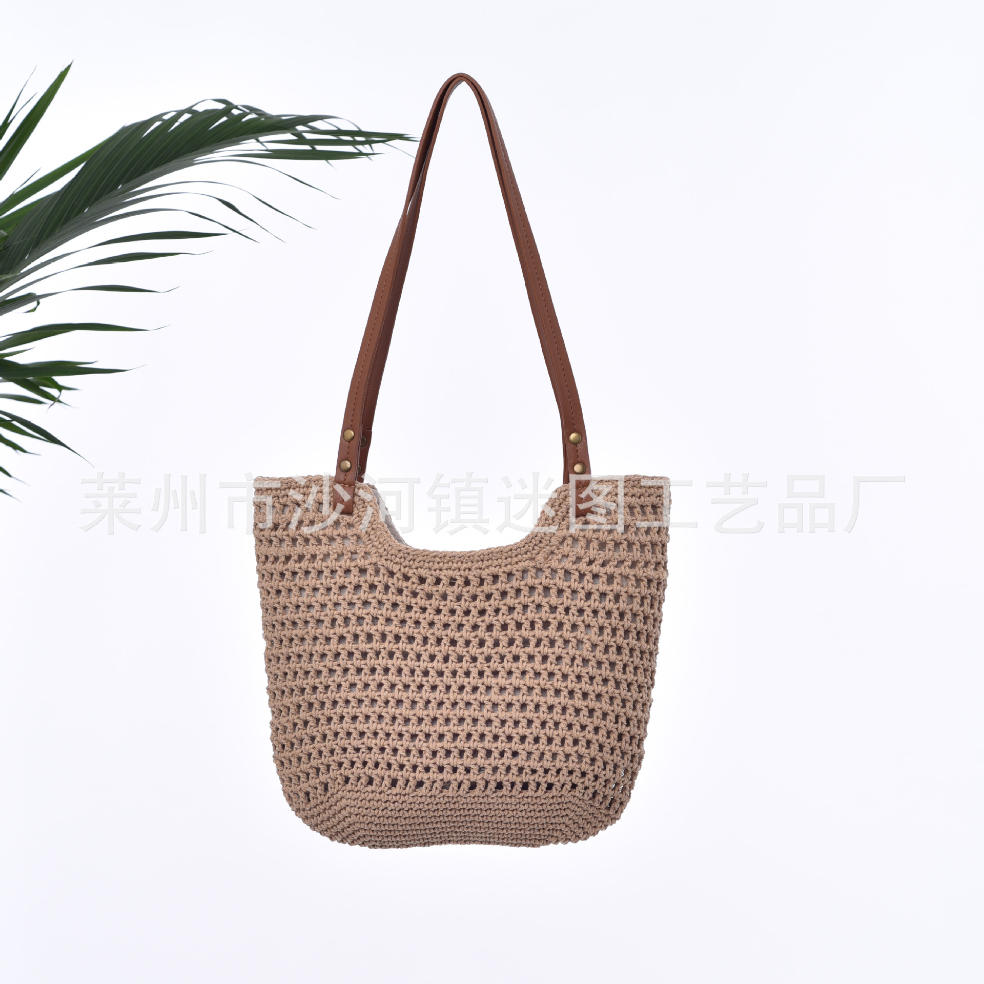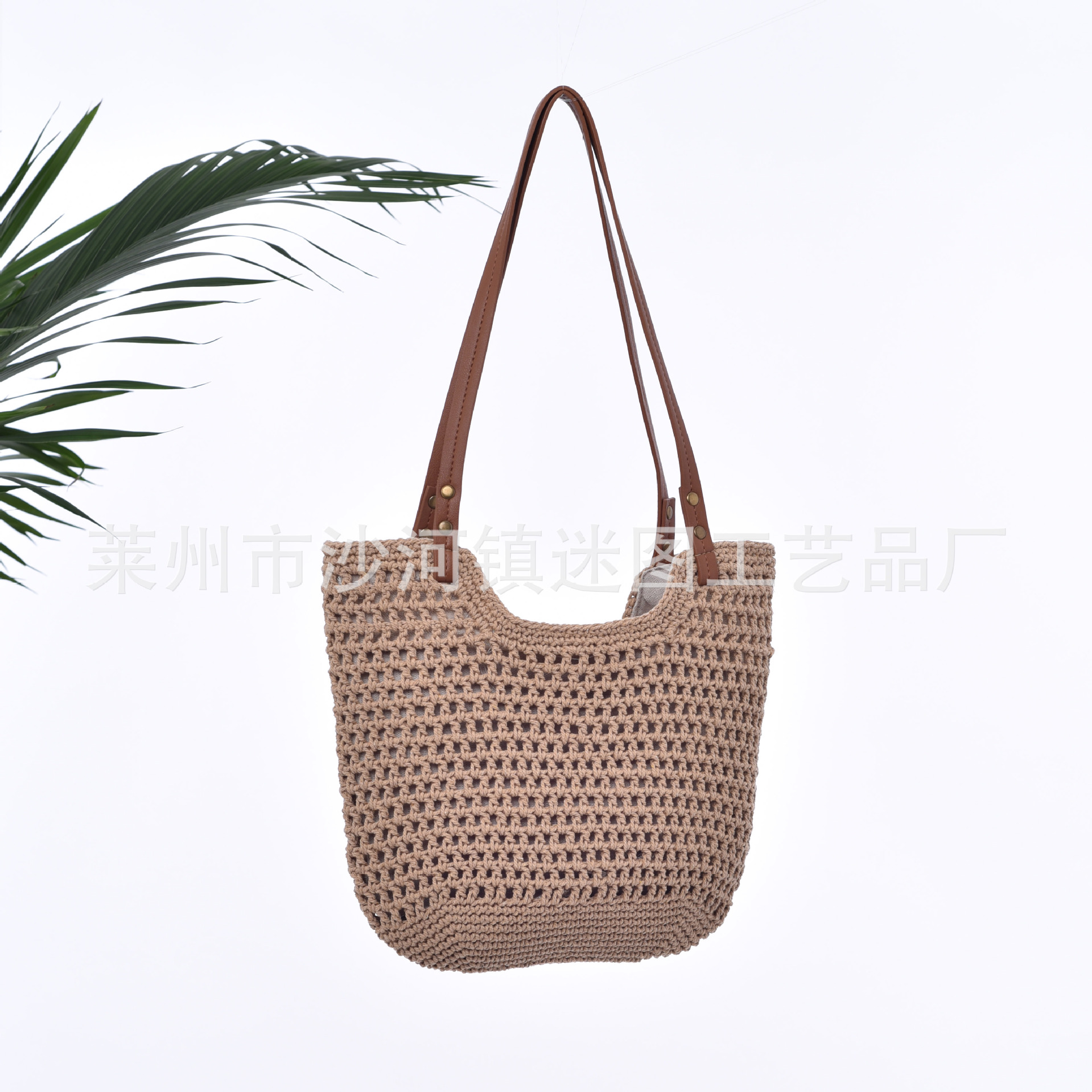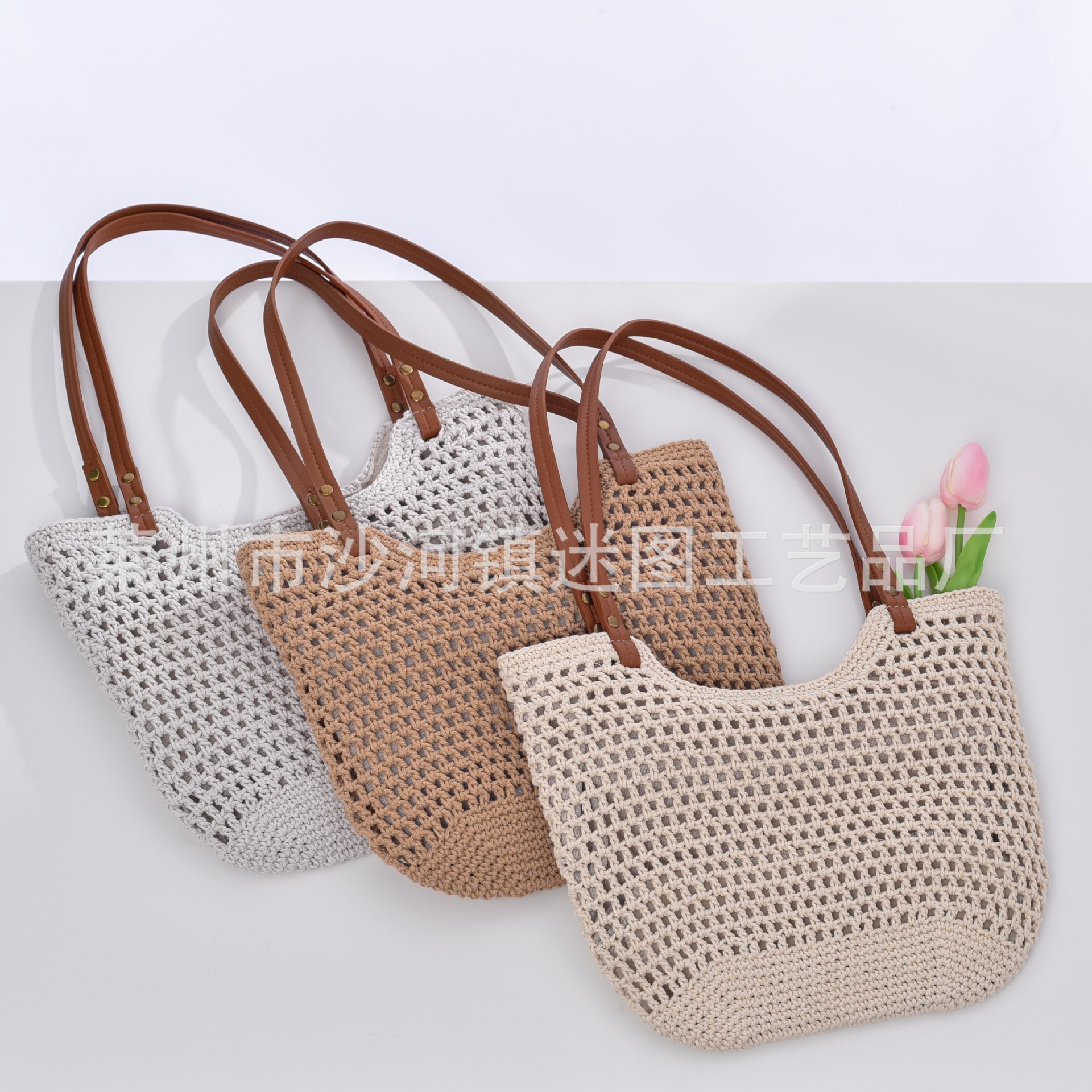 작은 손으로 짠 크로 셰 뜨개질 코튼 곡선 중공 그물 레드 여성 캐주얼 숄더백 공장 스팟 도매