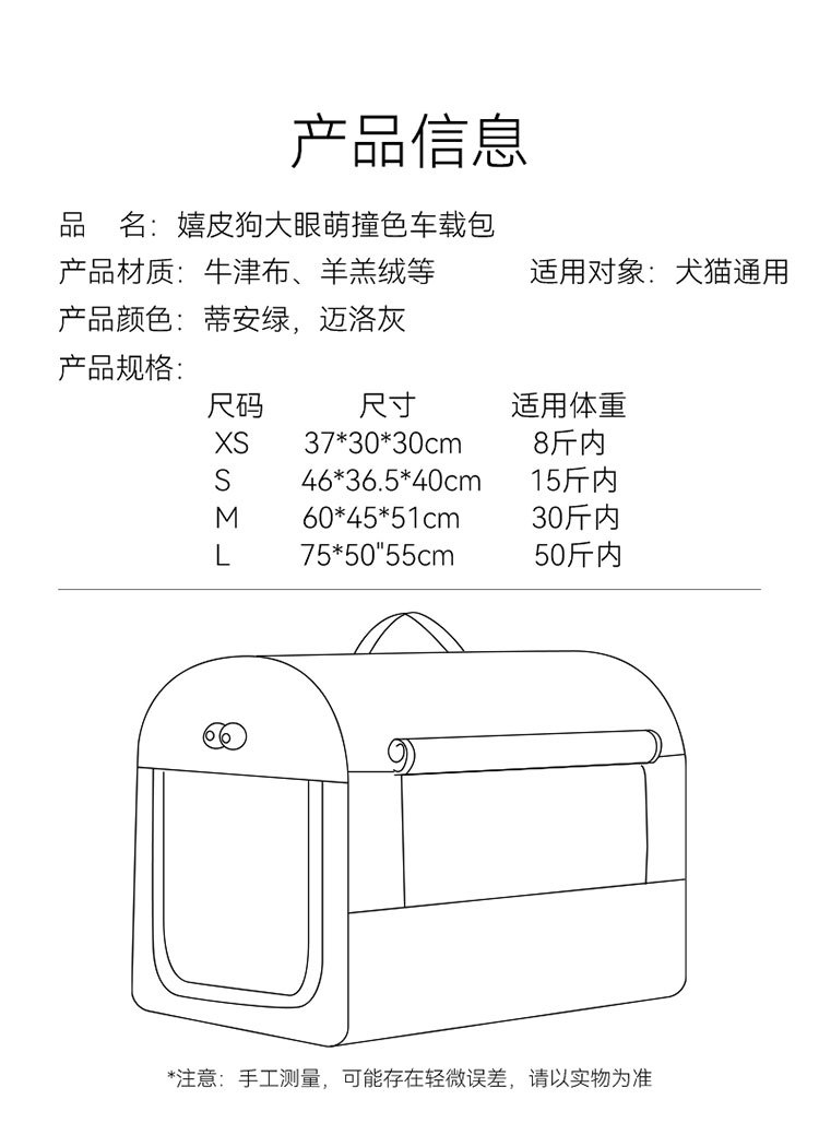 • XS:37*30*30cm (8kg 이내 권장 무게)
