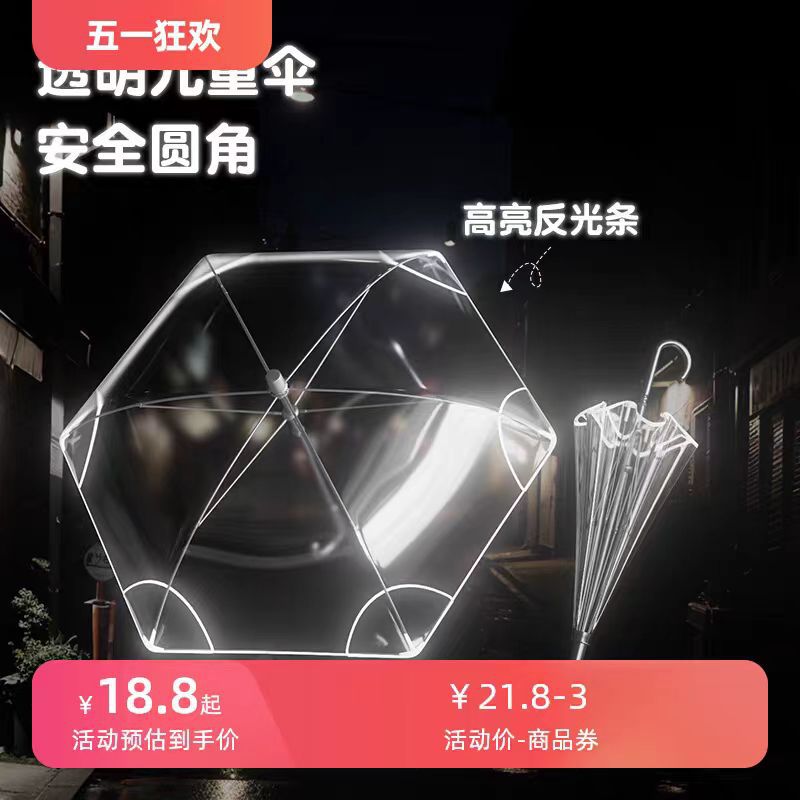 투명 어린이 우산 안전 둥근 모서리 찔림 방지 반사 스트립 초등학생 유치원 POE 그래피티 어린이용스토어 가기