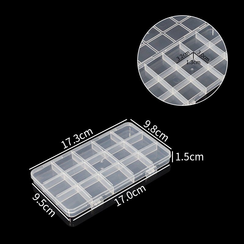 1.5 높은 고정 15 그리드 더블 버클 플라스틱 상자 홈 구슬 낚시 기어 하드웨어 도구 안티 스트링 그리드 포장 저장 상자스토어 가기
