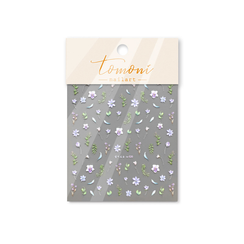 토모니 브랜드 타타 협력 구호 네일 아트 스티커 레트로 네일 스티커 보라색 꽃 TA320